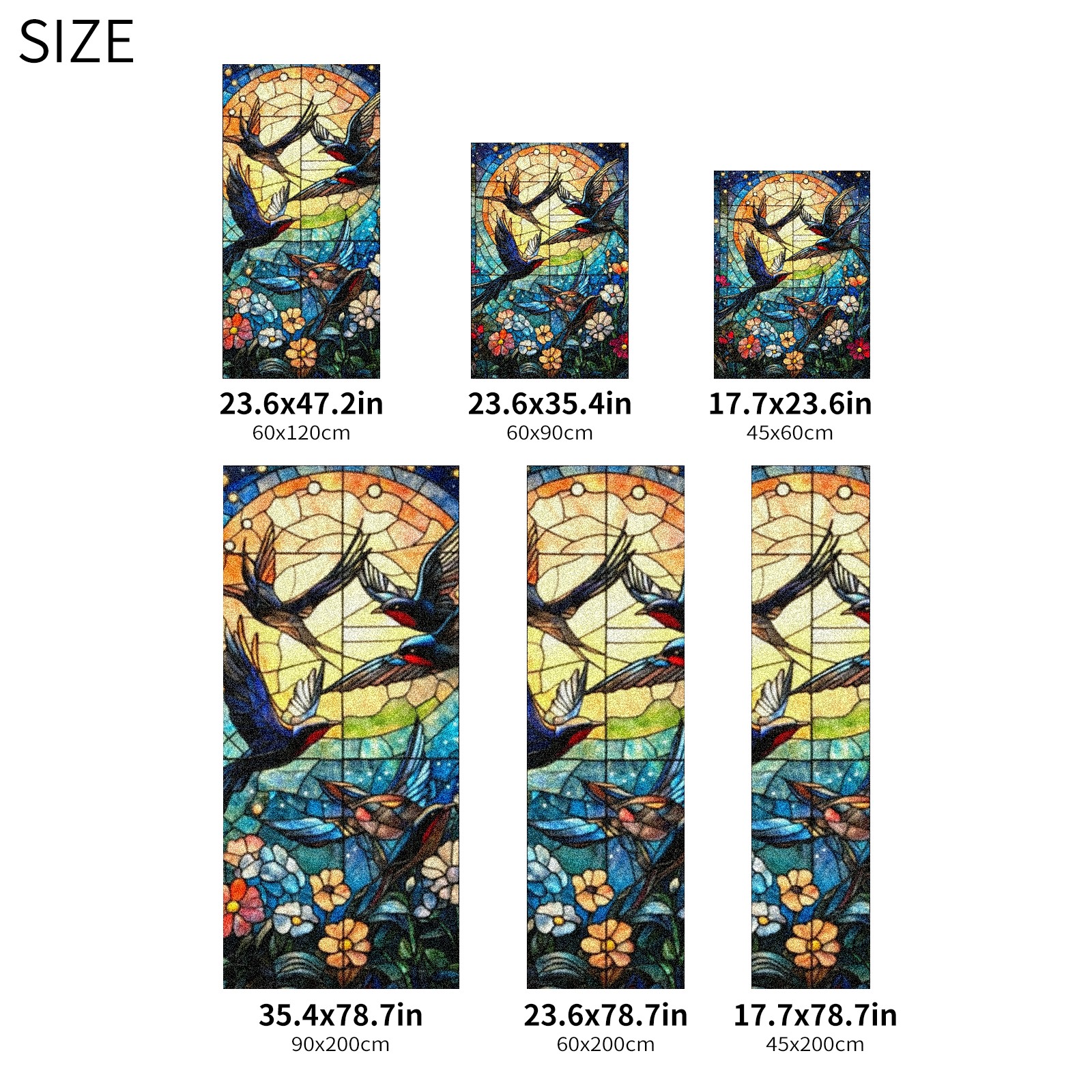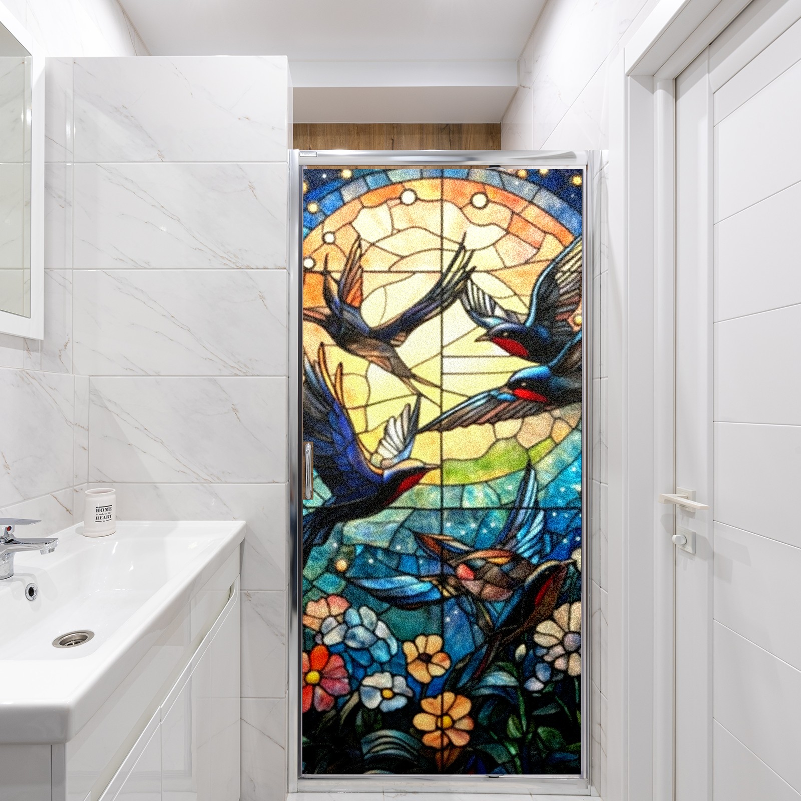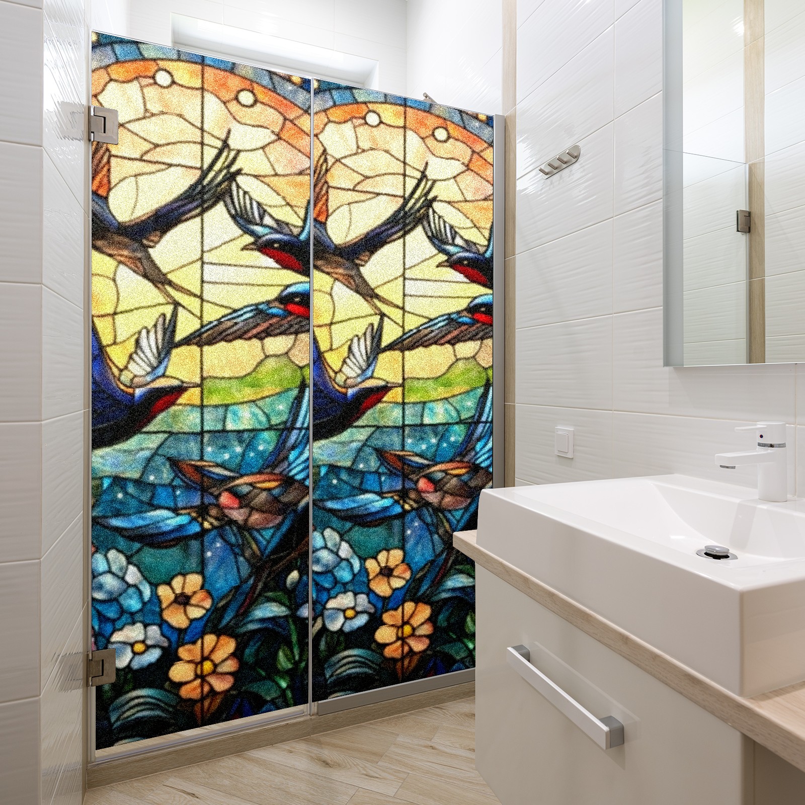Single sided frosted full screen printed glass sticker soft pink green stripe seamless embroidery pattern privacy decoration Swallows