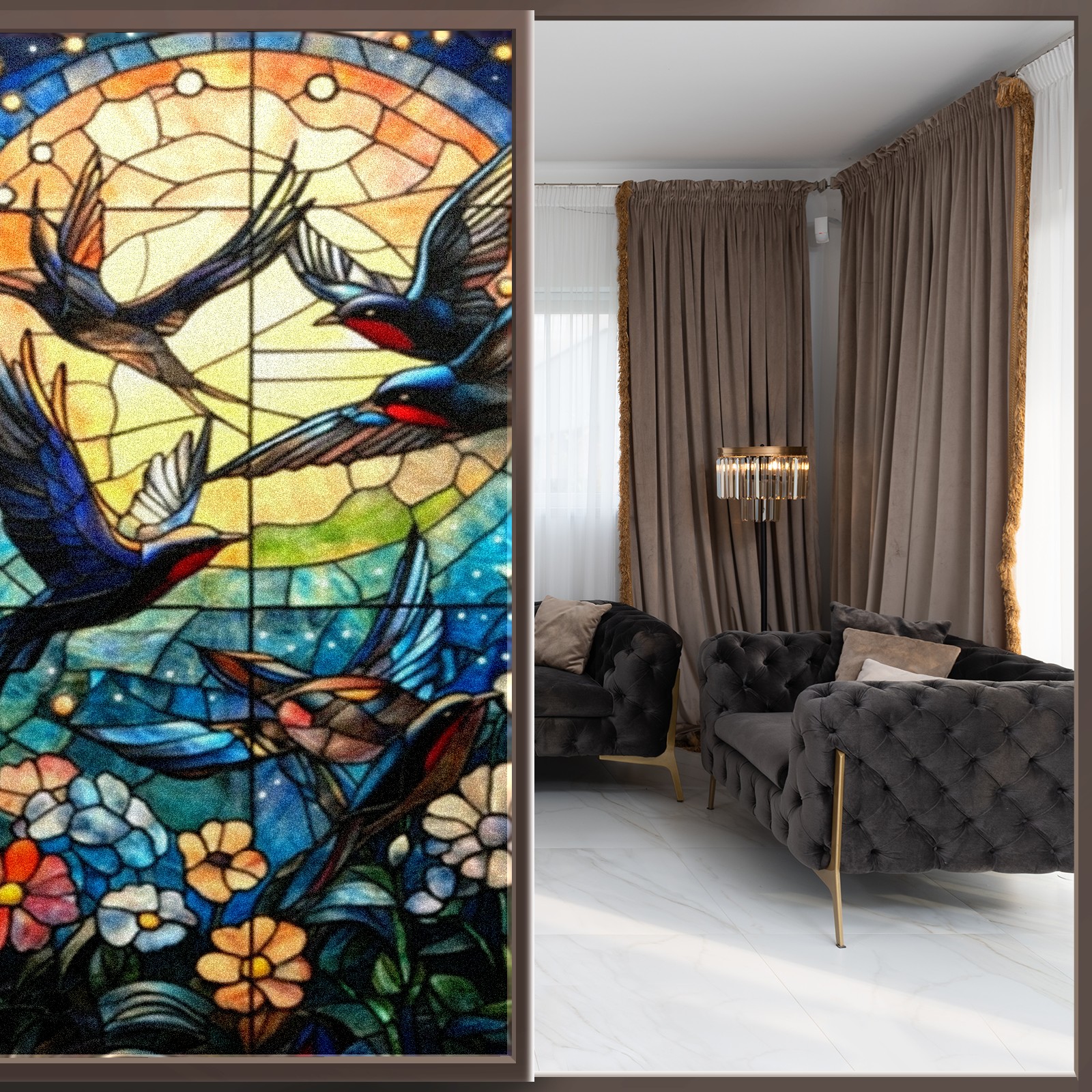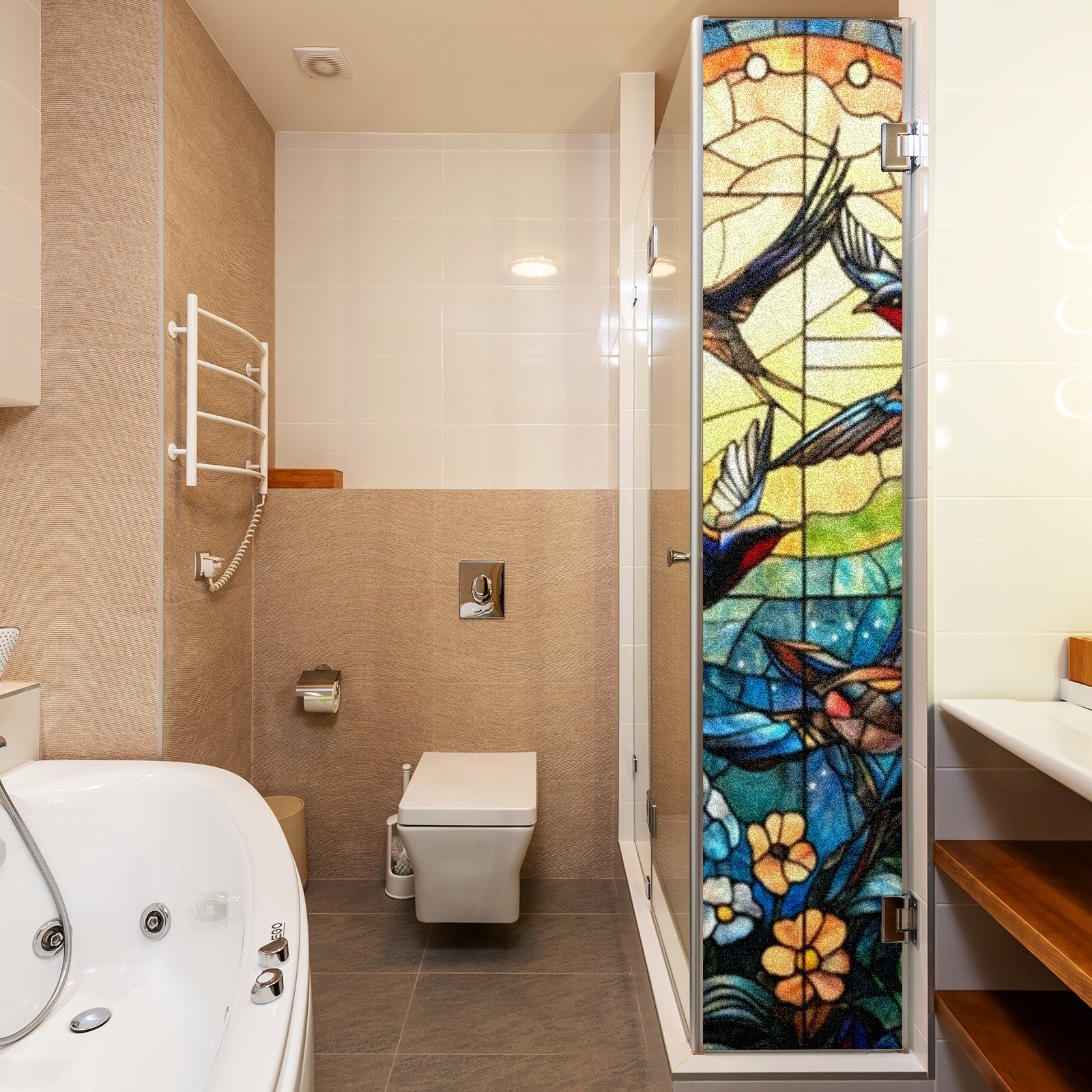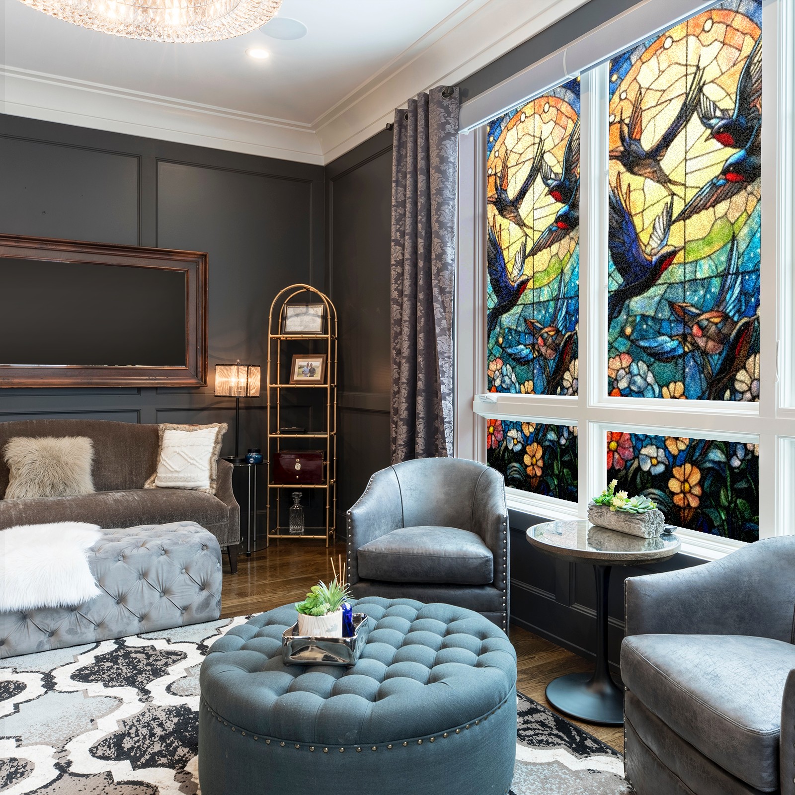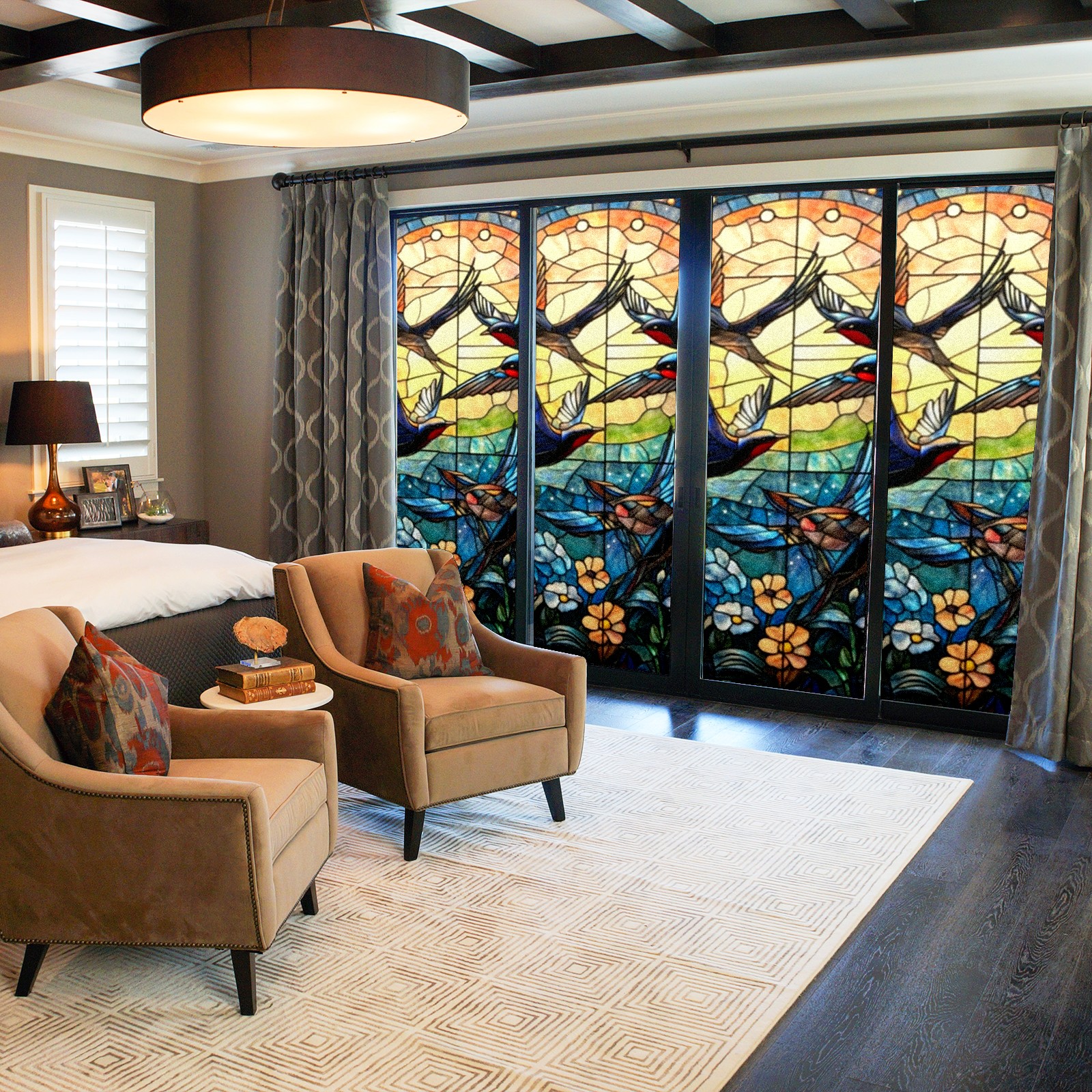 Single sided frosted full screen printed glass sticker soft pink green stripe seamless embroidery pattern privacy decoration Swallows