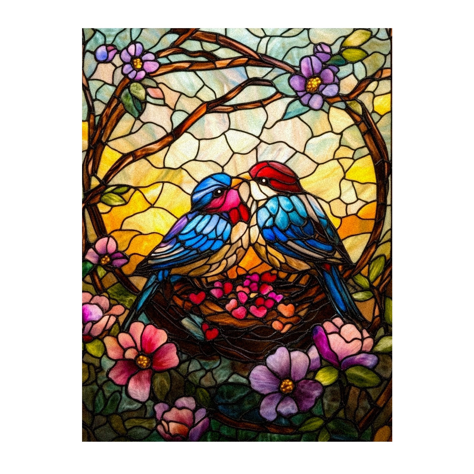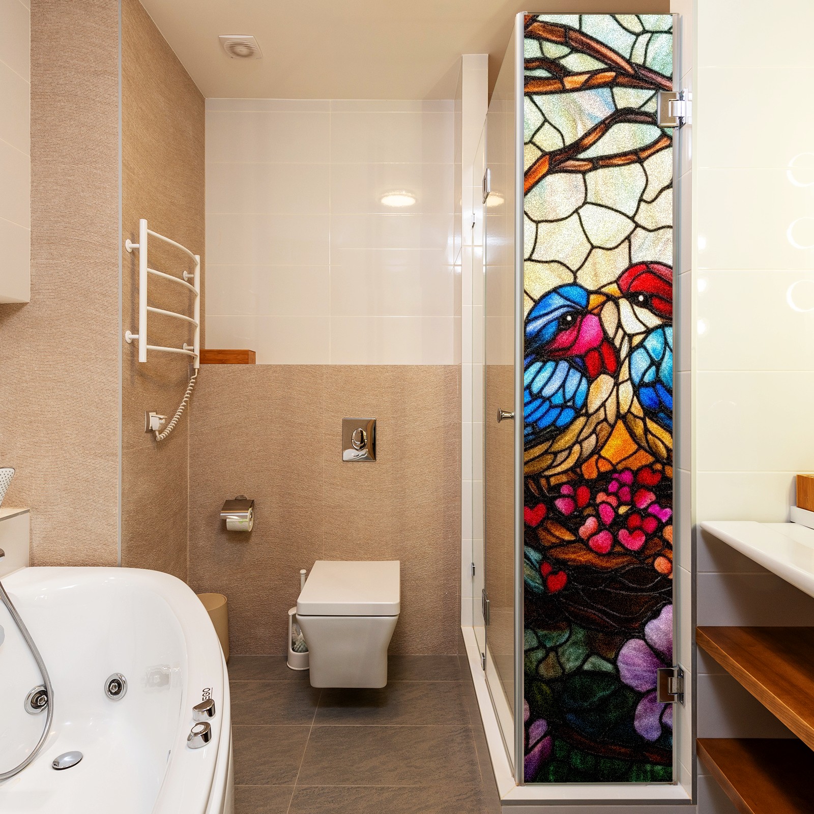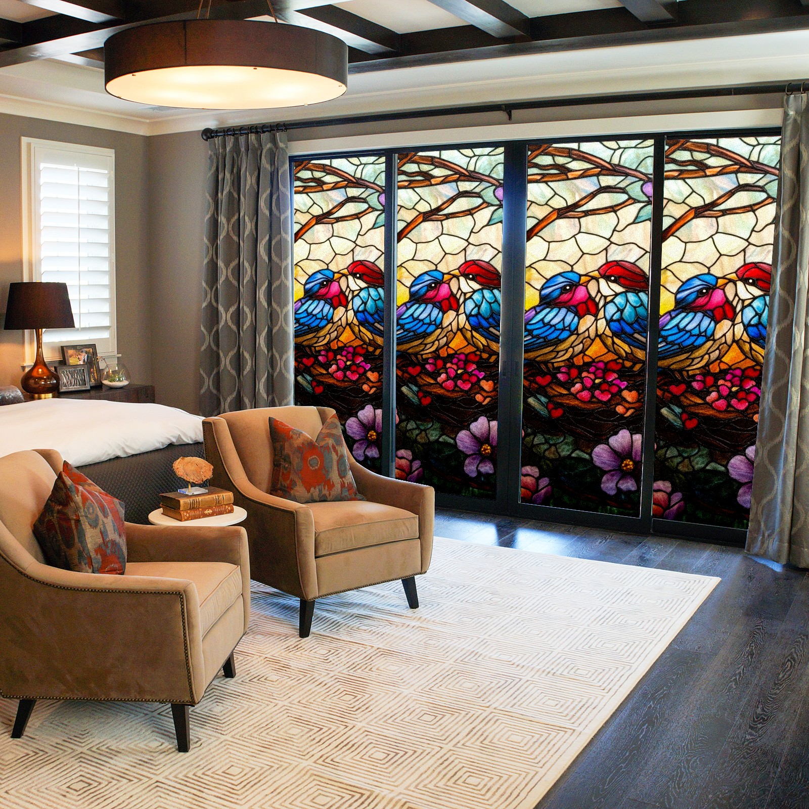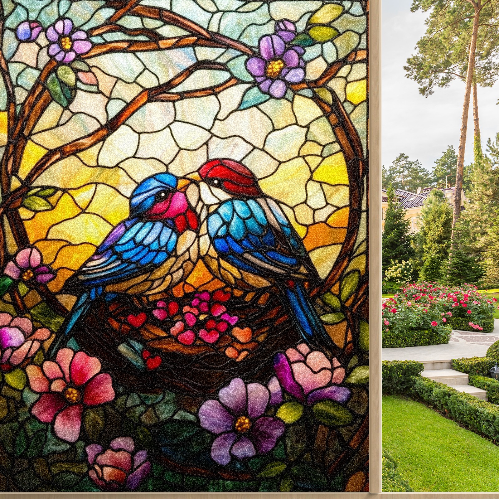 Single sided frosted full screen printed glass sticker soft pink green stripe seamless embroidery pattern privacy decoration Two Birds