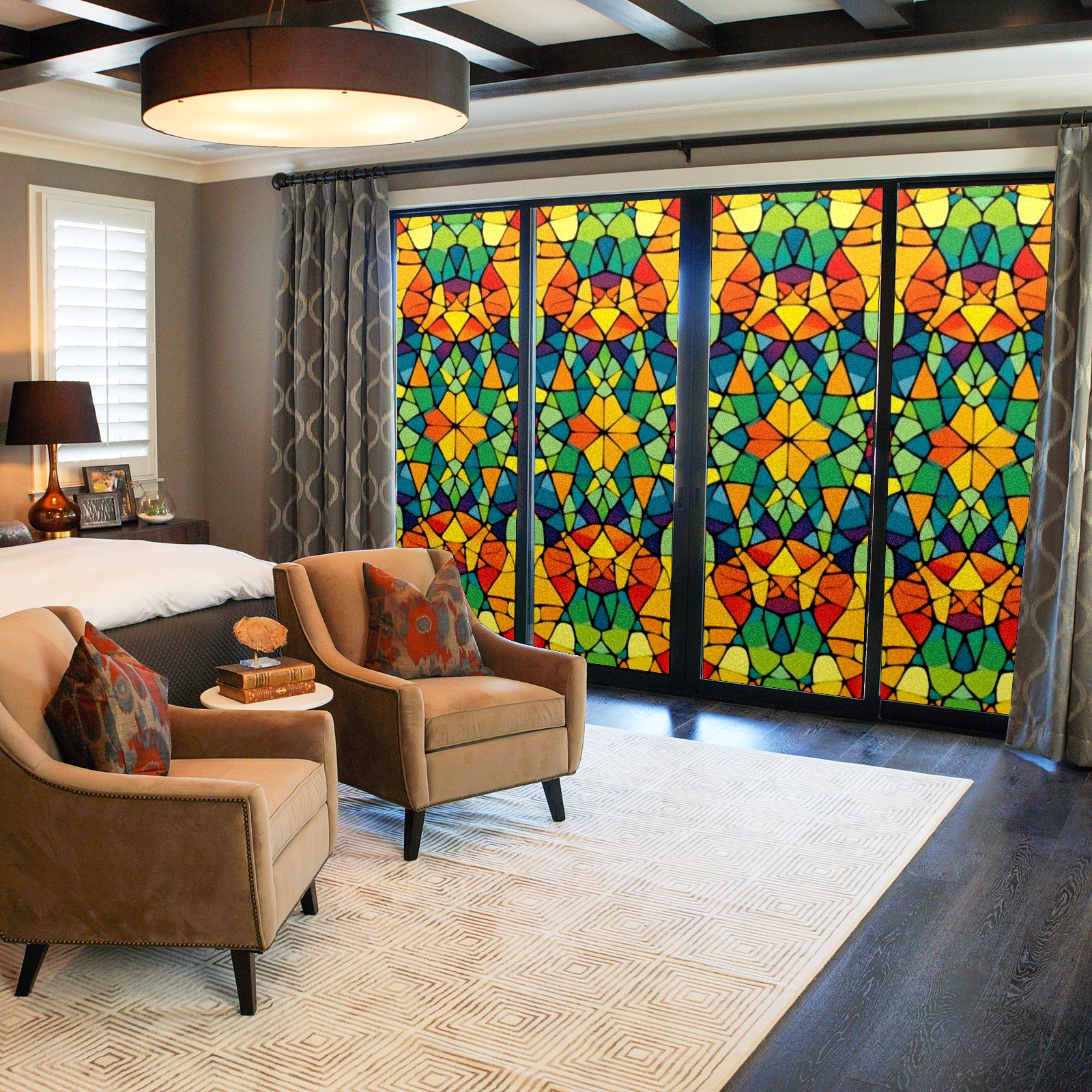 Single sided frosted full screen printed glass sticker soft pink green stripe seamless embroidery pattern privacy decoration Yellow Green
