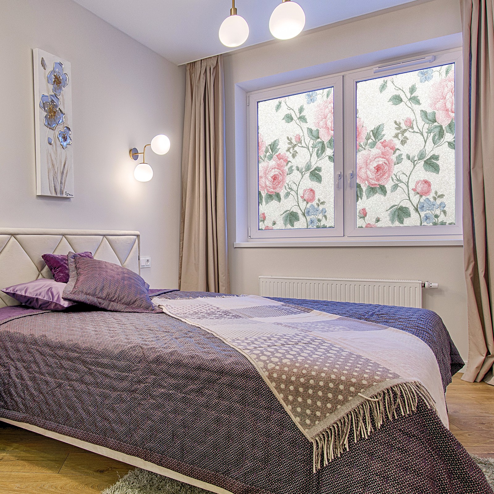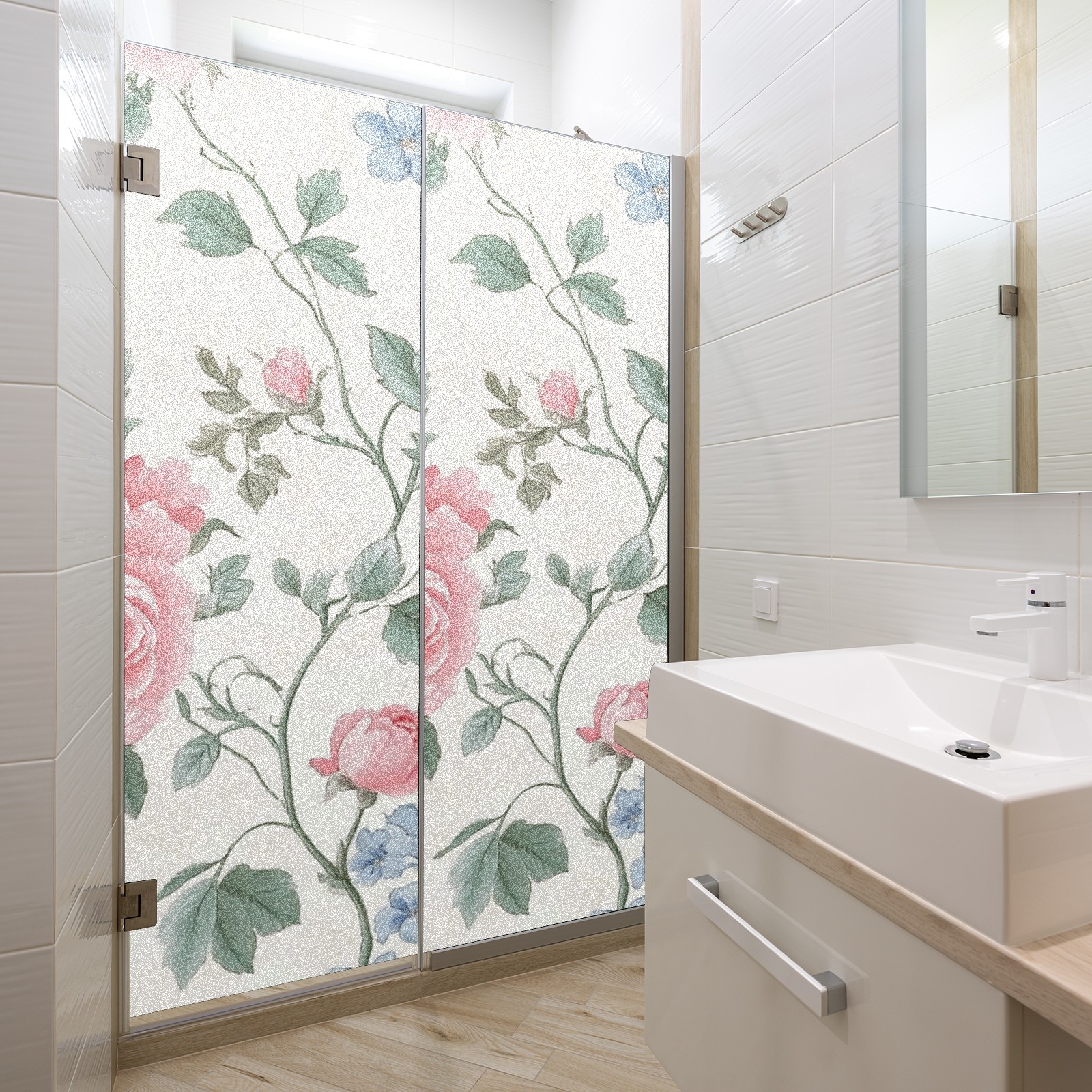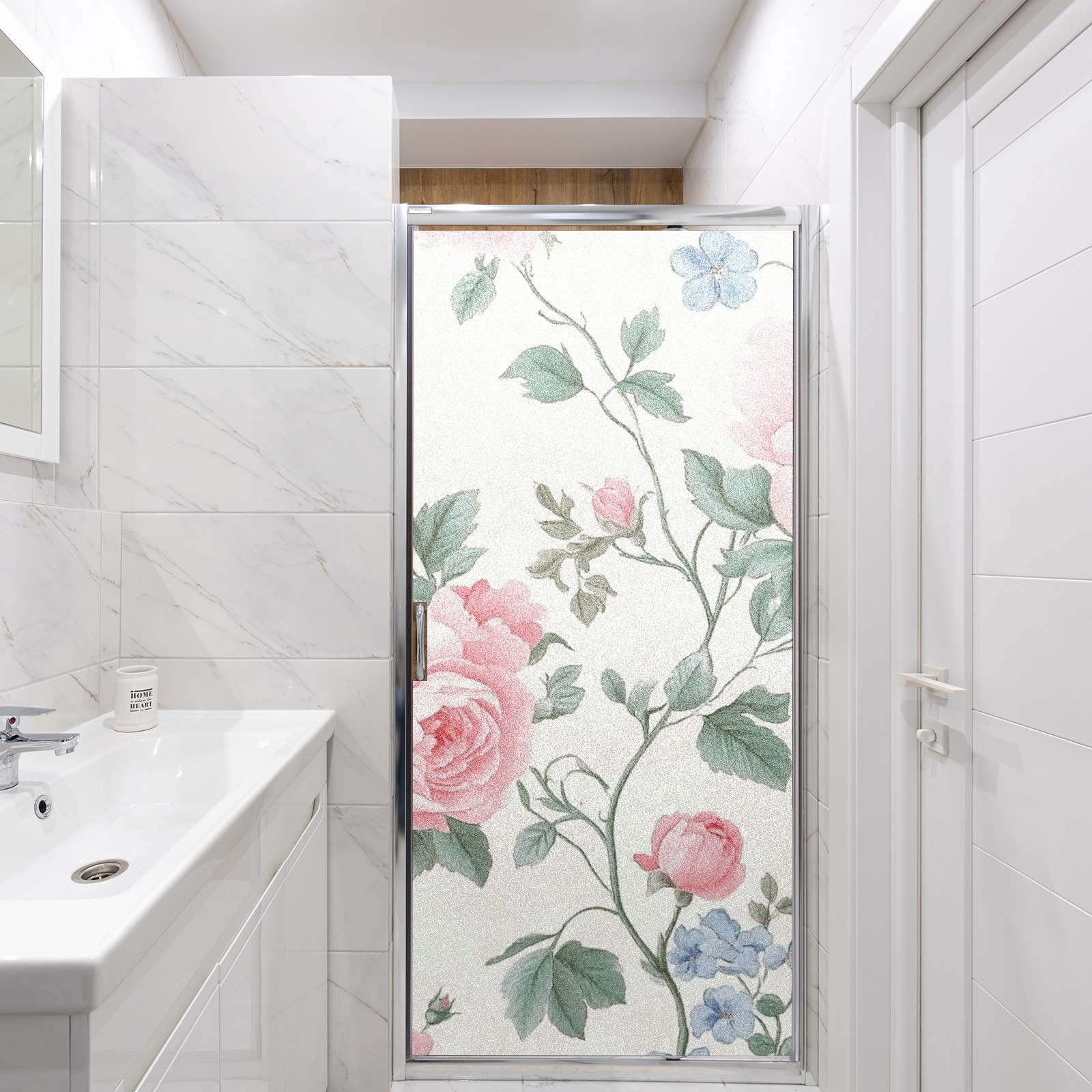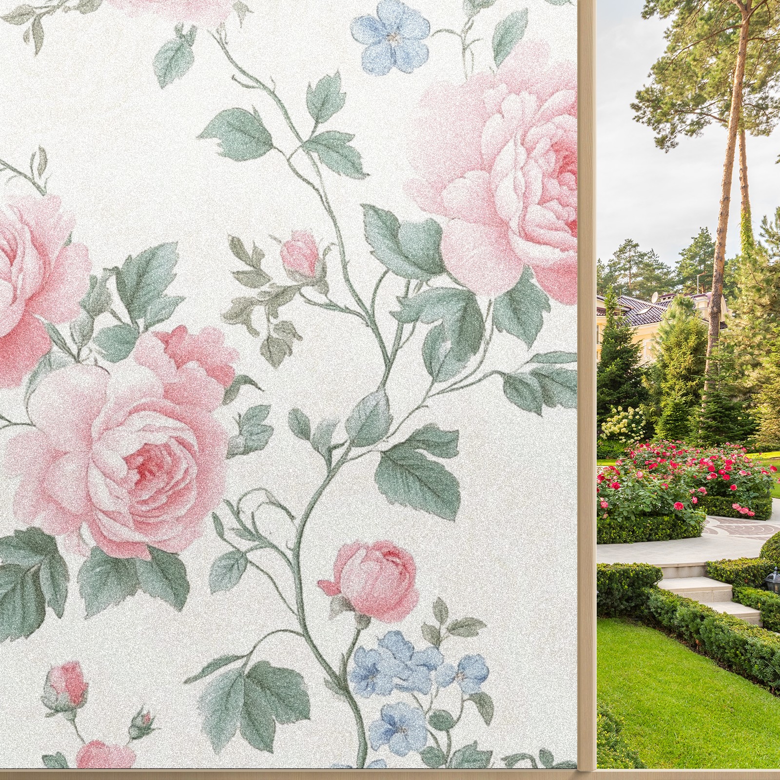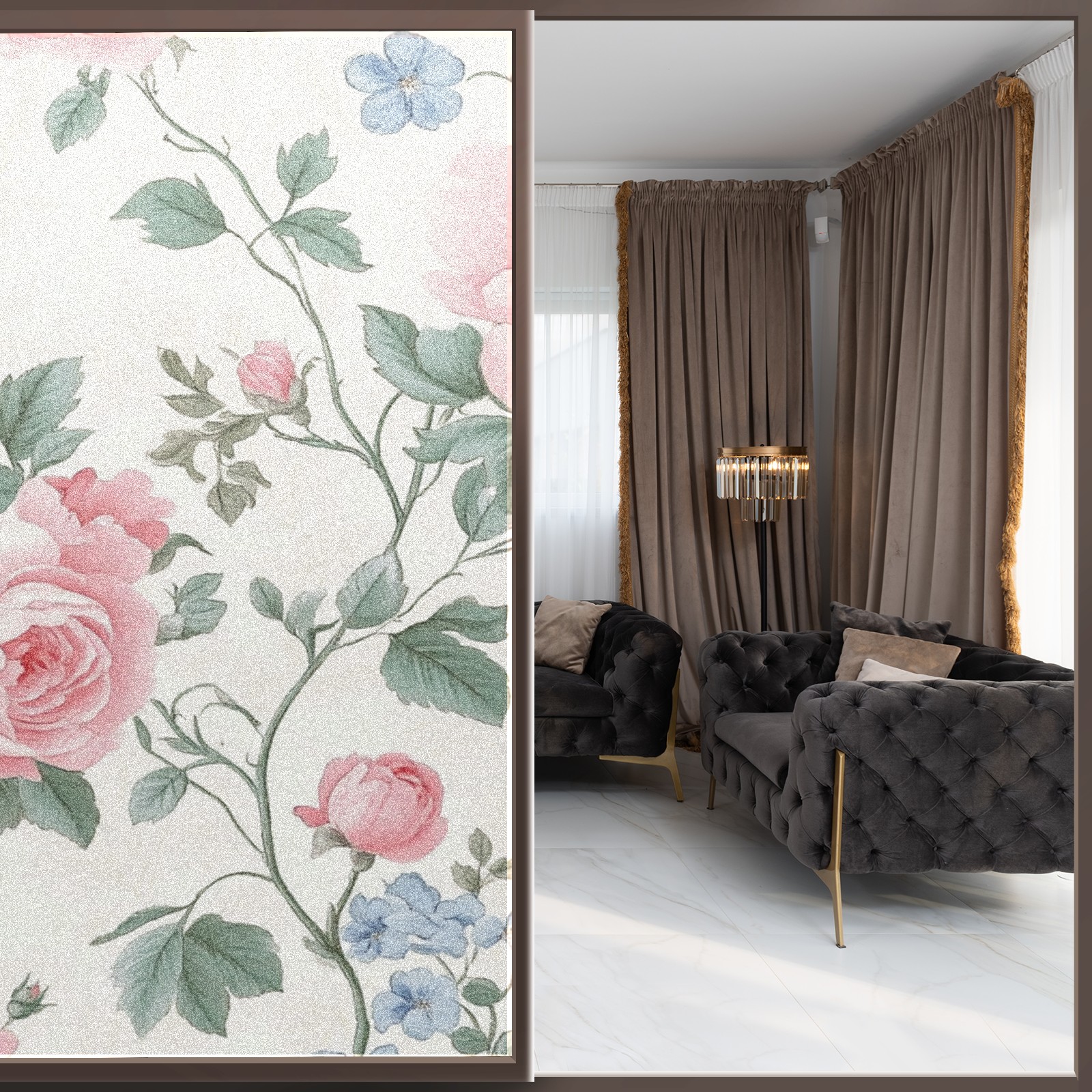 Single sided frosted full screen printed glass sticker soft pink green stripe seamless embroidery pattern privacy decoration Pink Floral Pattern