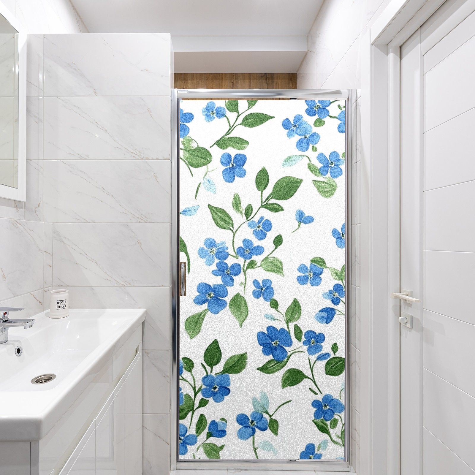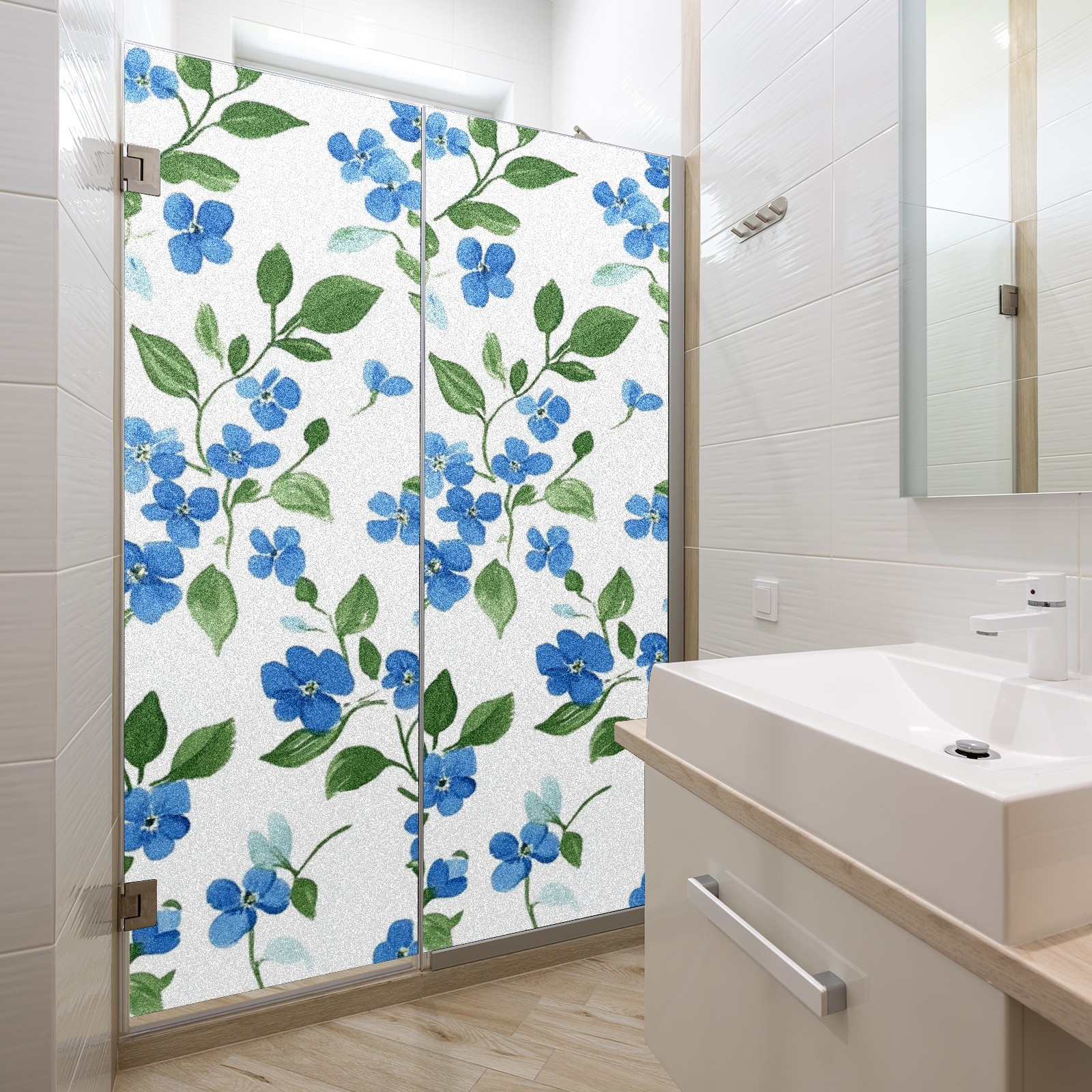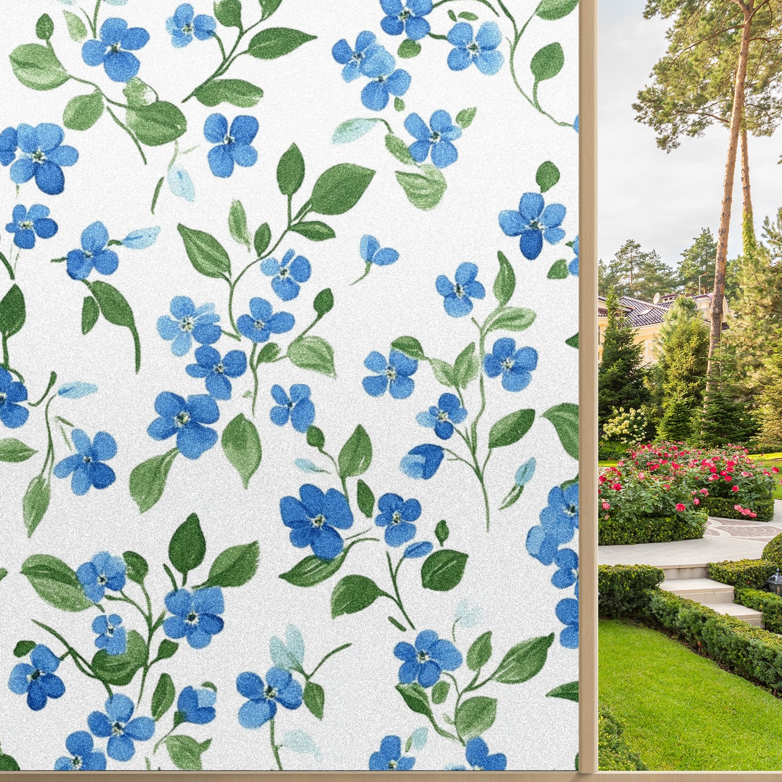 Single sided frosted full screen printed glass sticker soft pink green stripe seamless embroidery pattern privacy decoration Blue Forget-me-not Pattern