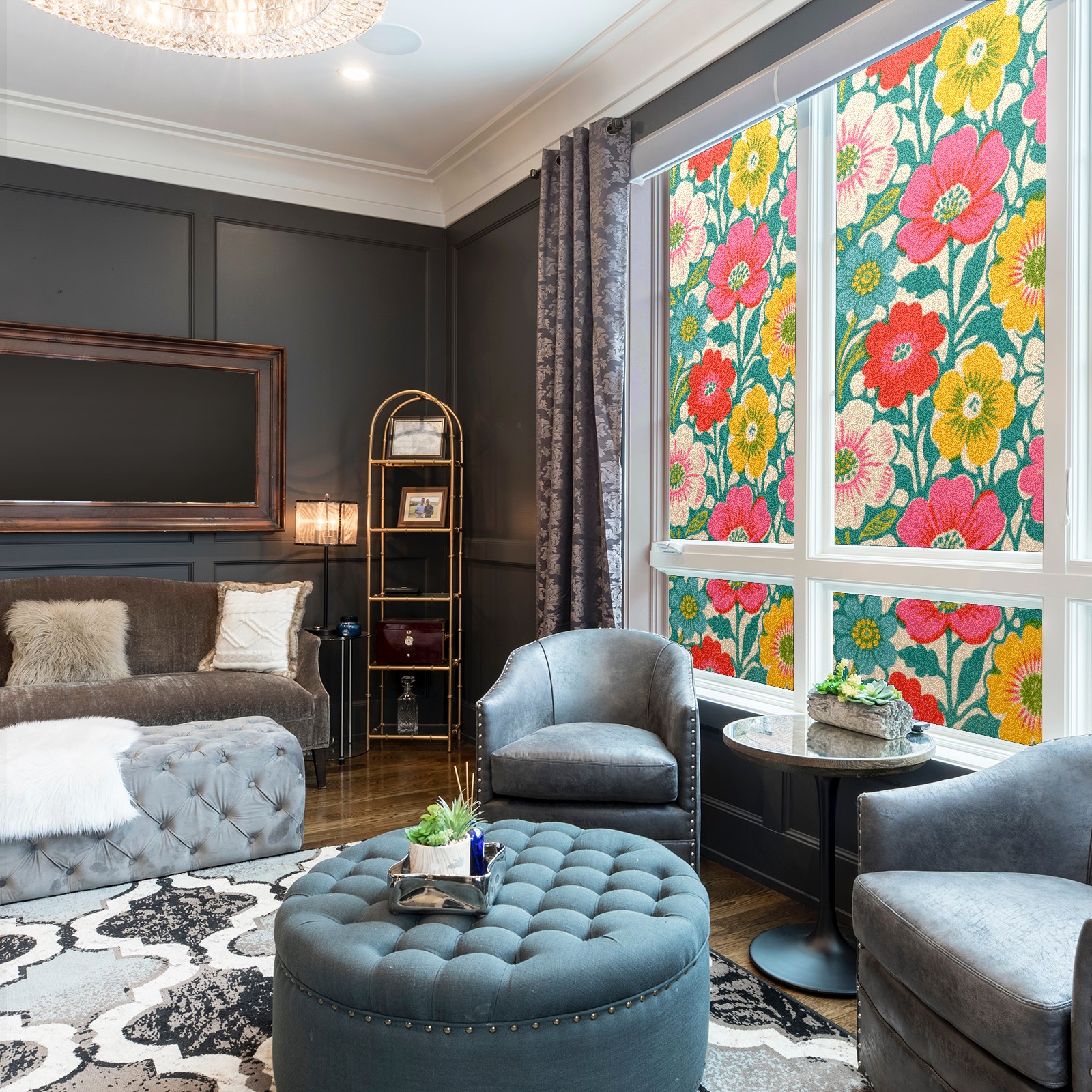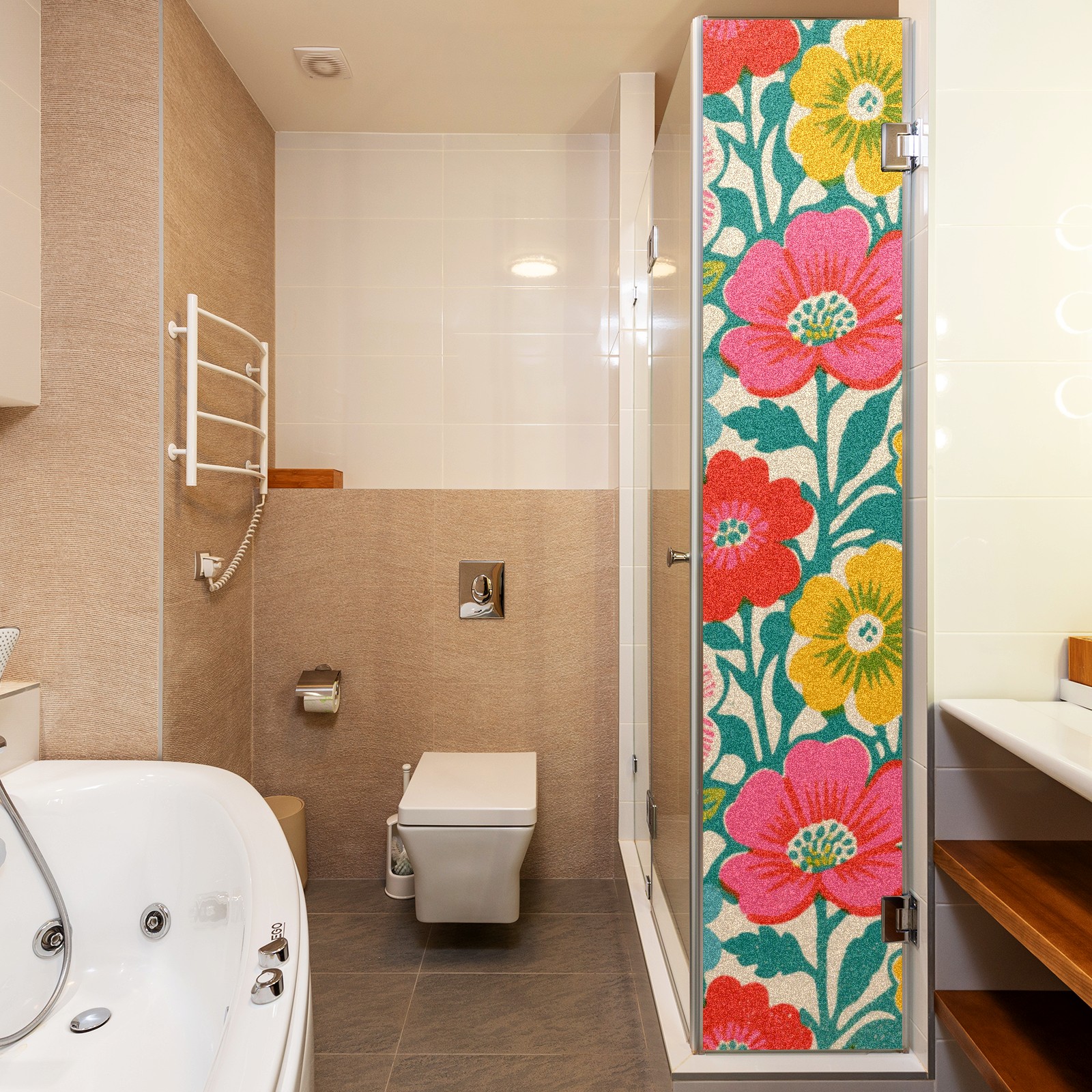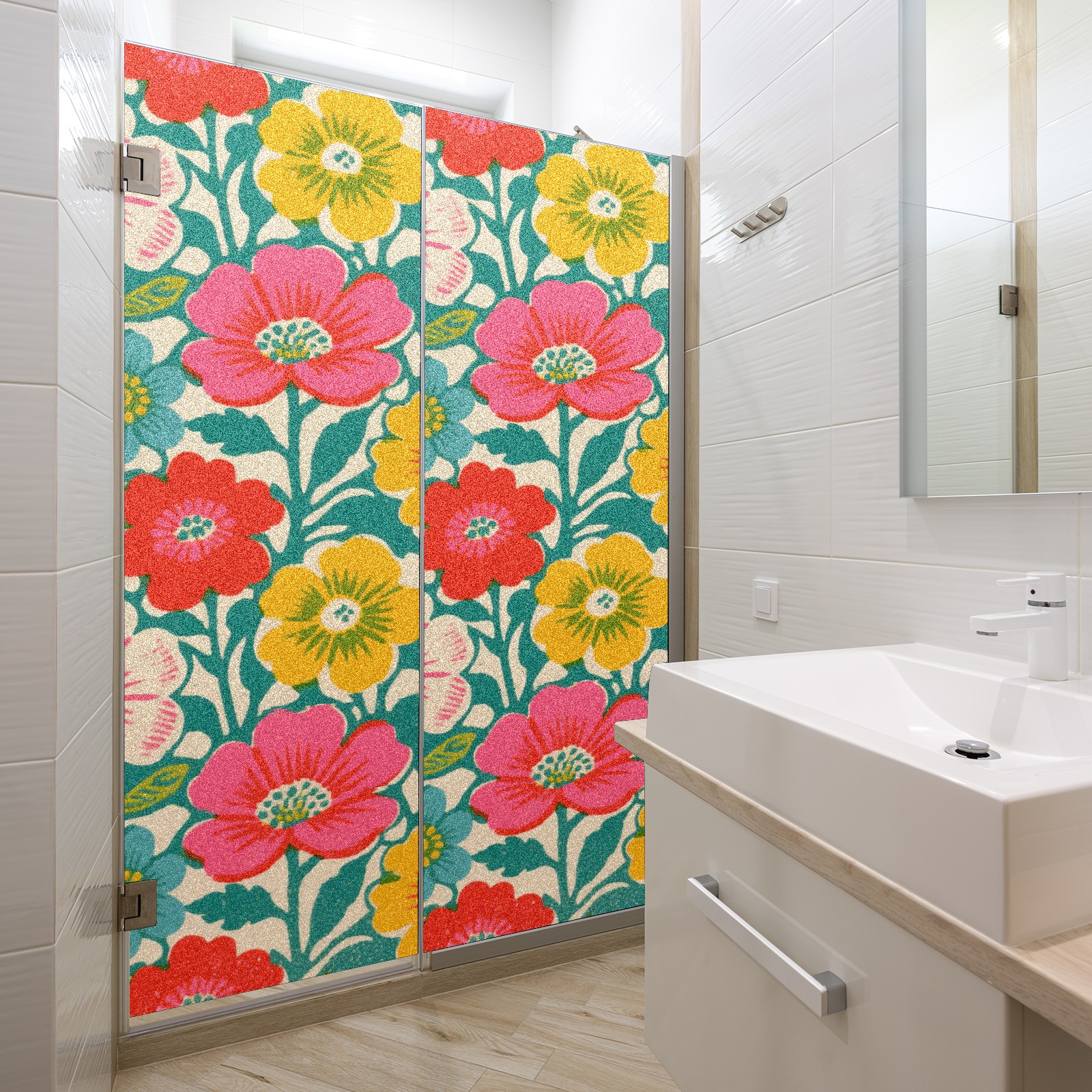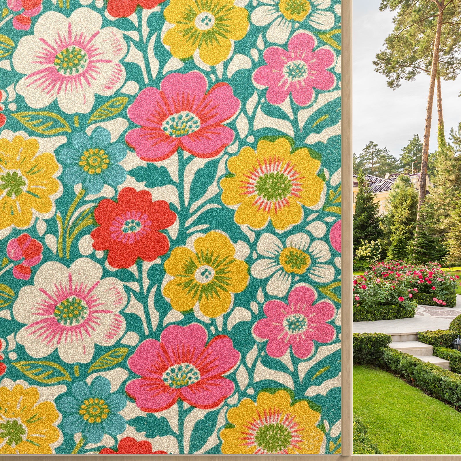Single sided frosted full screen printed glass sticker soft pink green stripe seamless embroidery pattern privacy decoration Ink Printing Flowers (13)