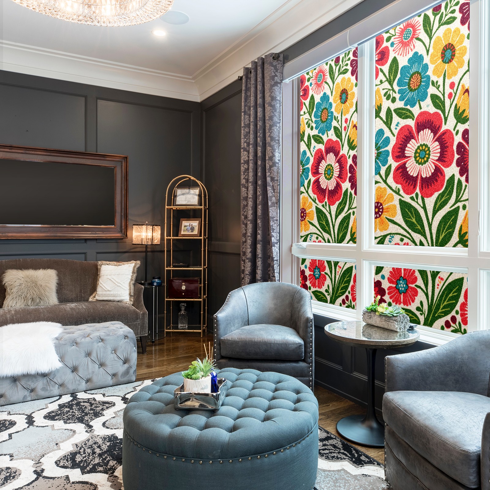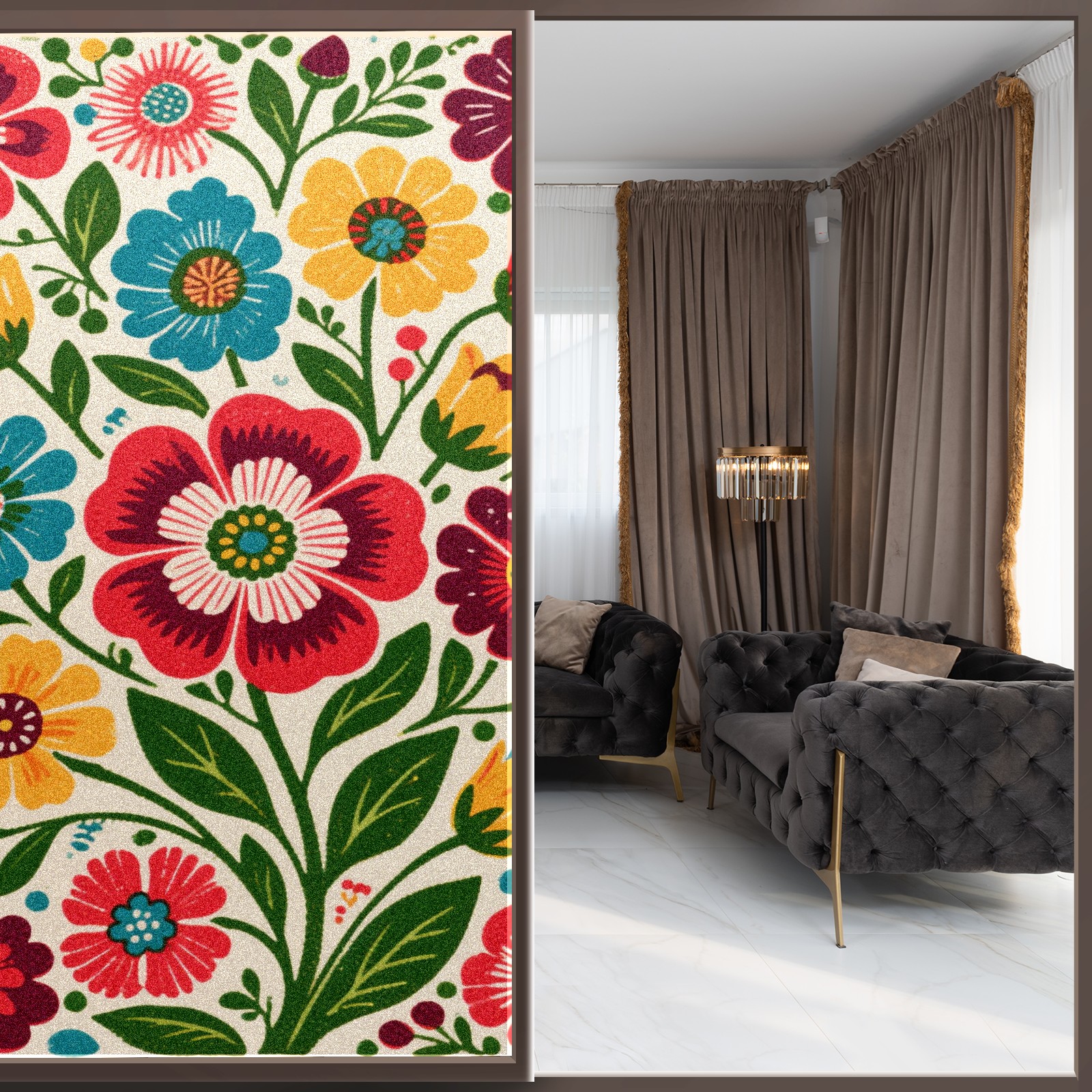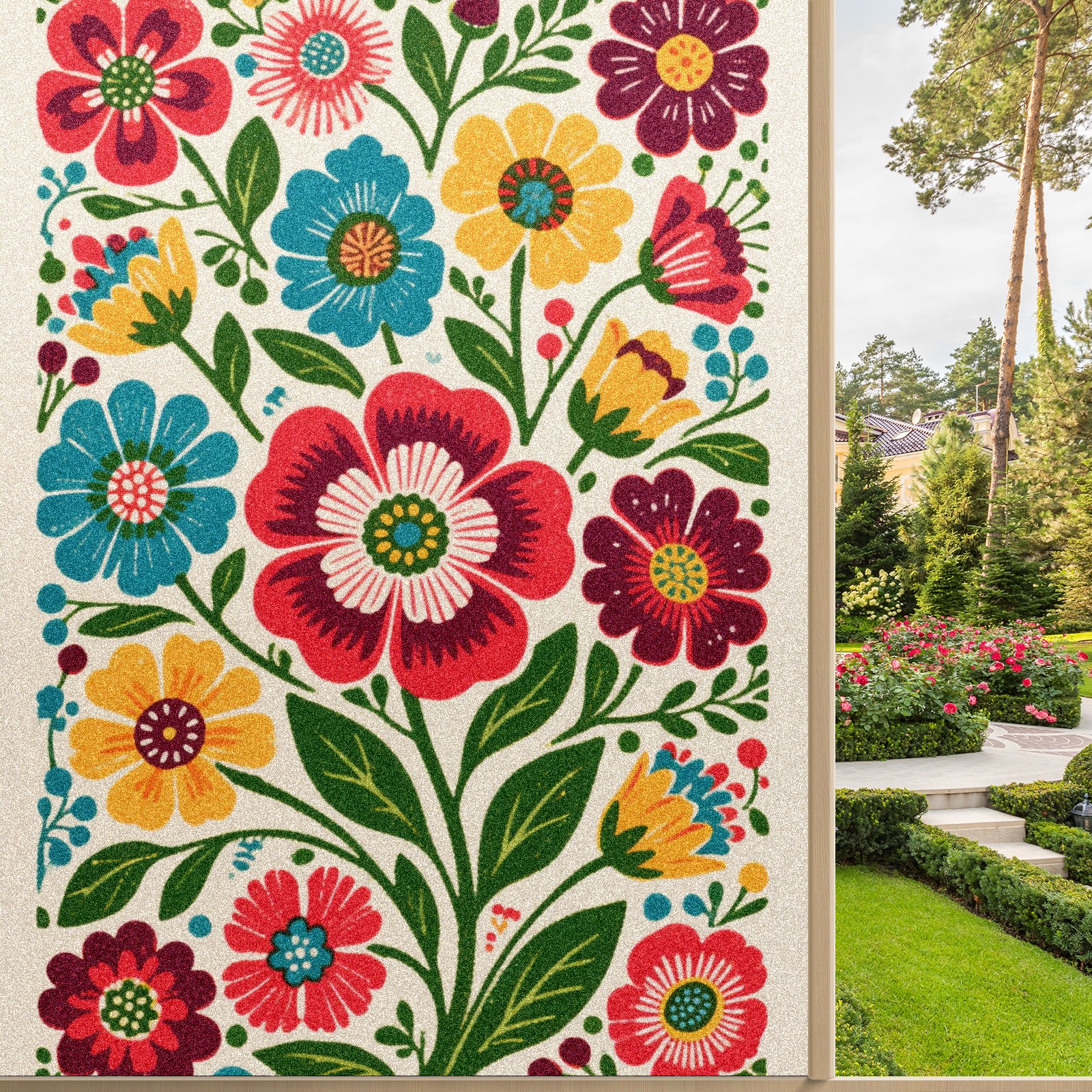 Single sided frosted full screen printed glass sticker soft pink green stripe seamless embroidery pattern privacy decoration Ink Printing Flowers (12)