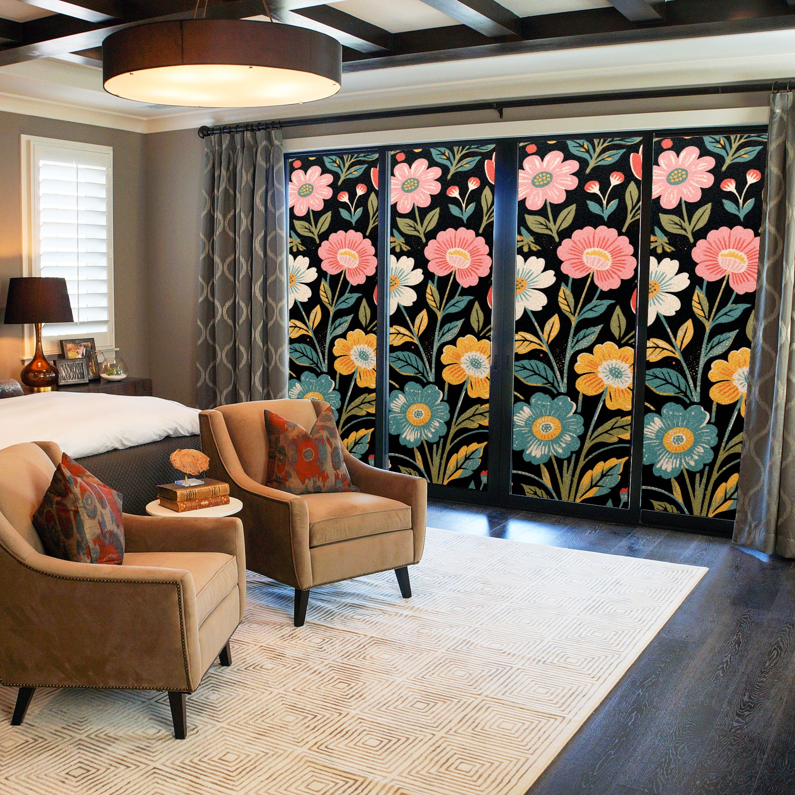 • <p>The main body is made of PET single-sided frosted material, with a smooth surface that adheres to the glass. The frosted surface forms a hazy blocking effect, effectively protecting privacy while retaining soft light.The pattern covers the entire surface of the sticker, adopting a seamless design with clear and three-dimensional texture, breaking the traditional sticker's sense of fragmentation.</p>