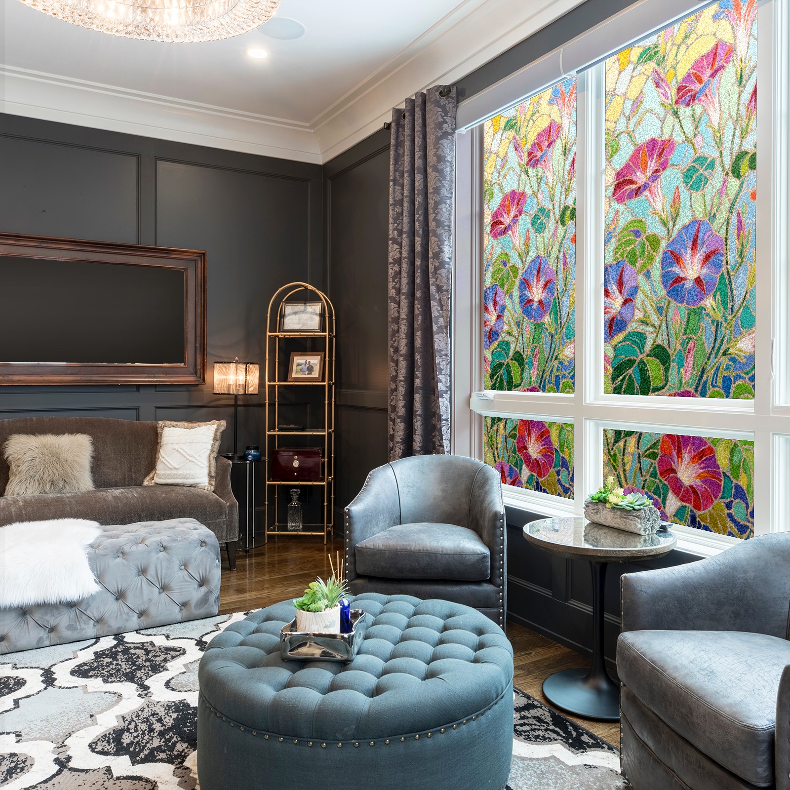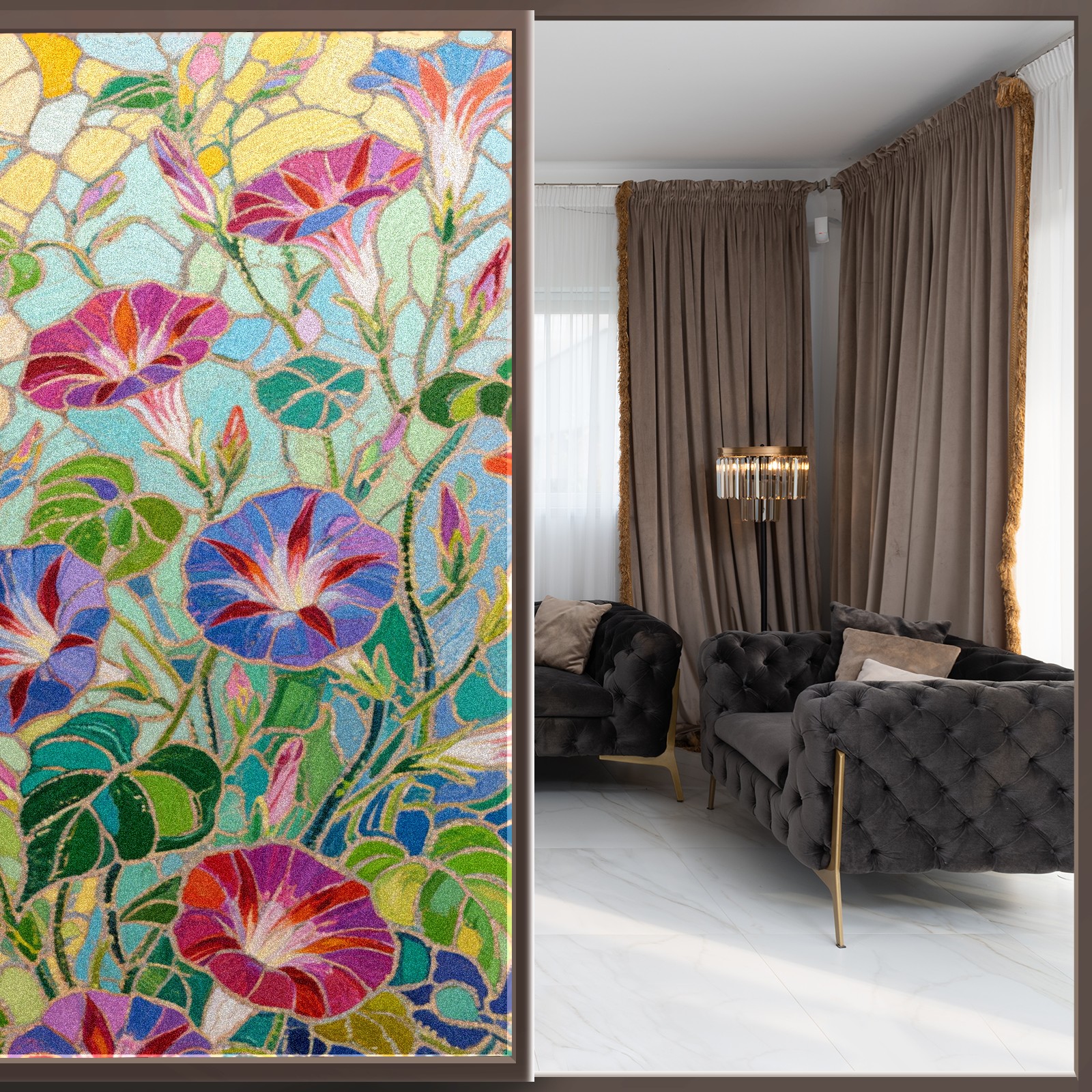 • <p>The main body is made of PET single-sided frosted material, with a smooth surface that adheres to the glass. The frosted surface forms a hazy blocking effect, effectively protecting privacy while retaining soft light.The pattern covers the entire surface of the sticker, adopting a seamless design with clear and three-dimensional texture, breaking the traditional sticker's sense of fragmentation.</p>