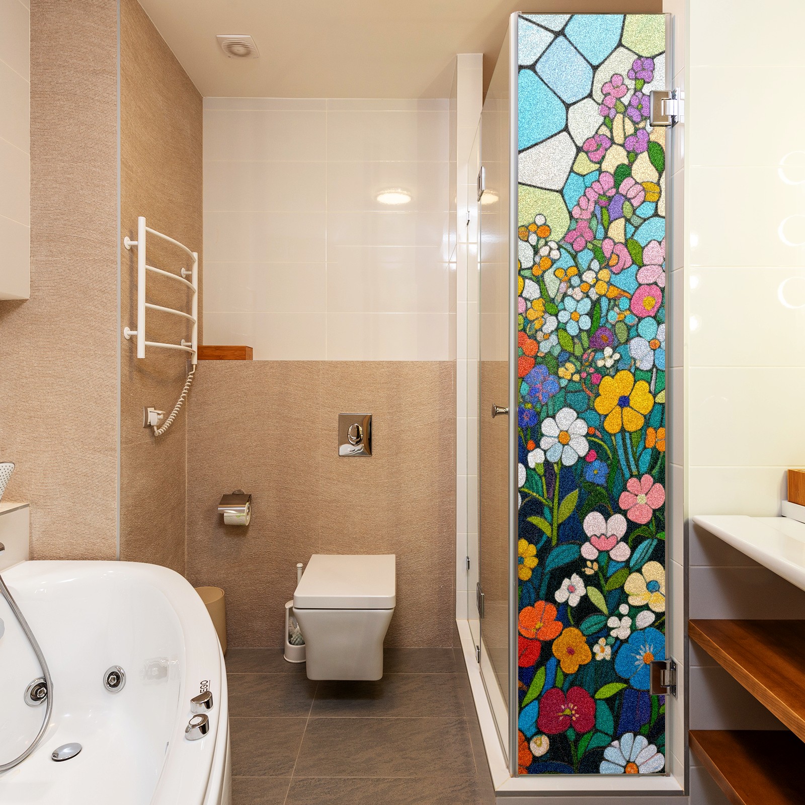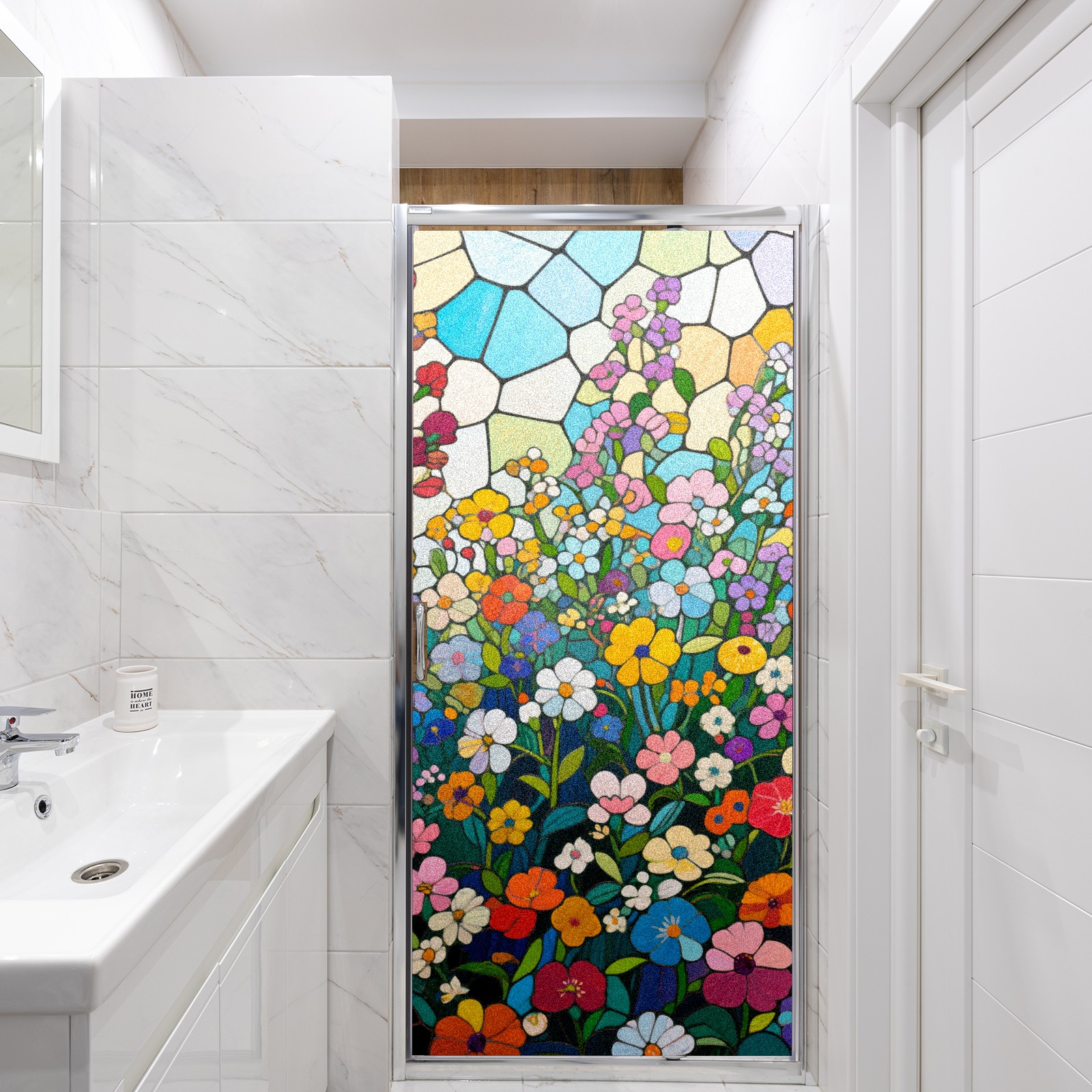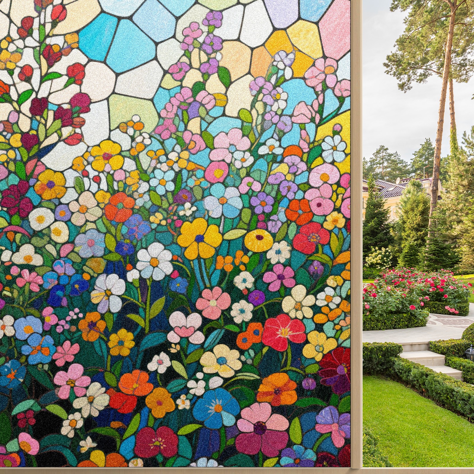Single sided frosted full screen printed glass sticker soft pink green stripe seamless embroidery pattern privacy decoration Impressionist Flowers (6)