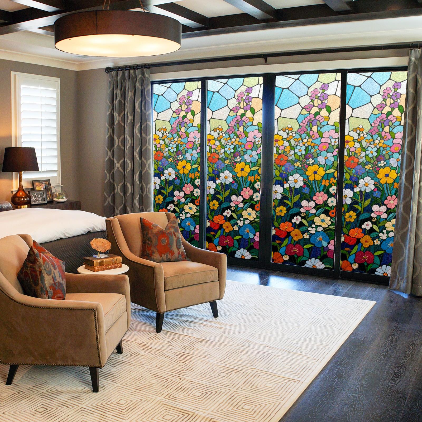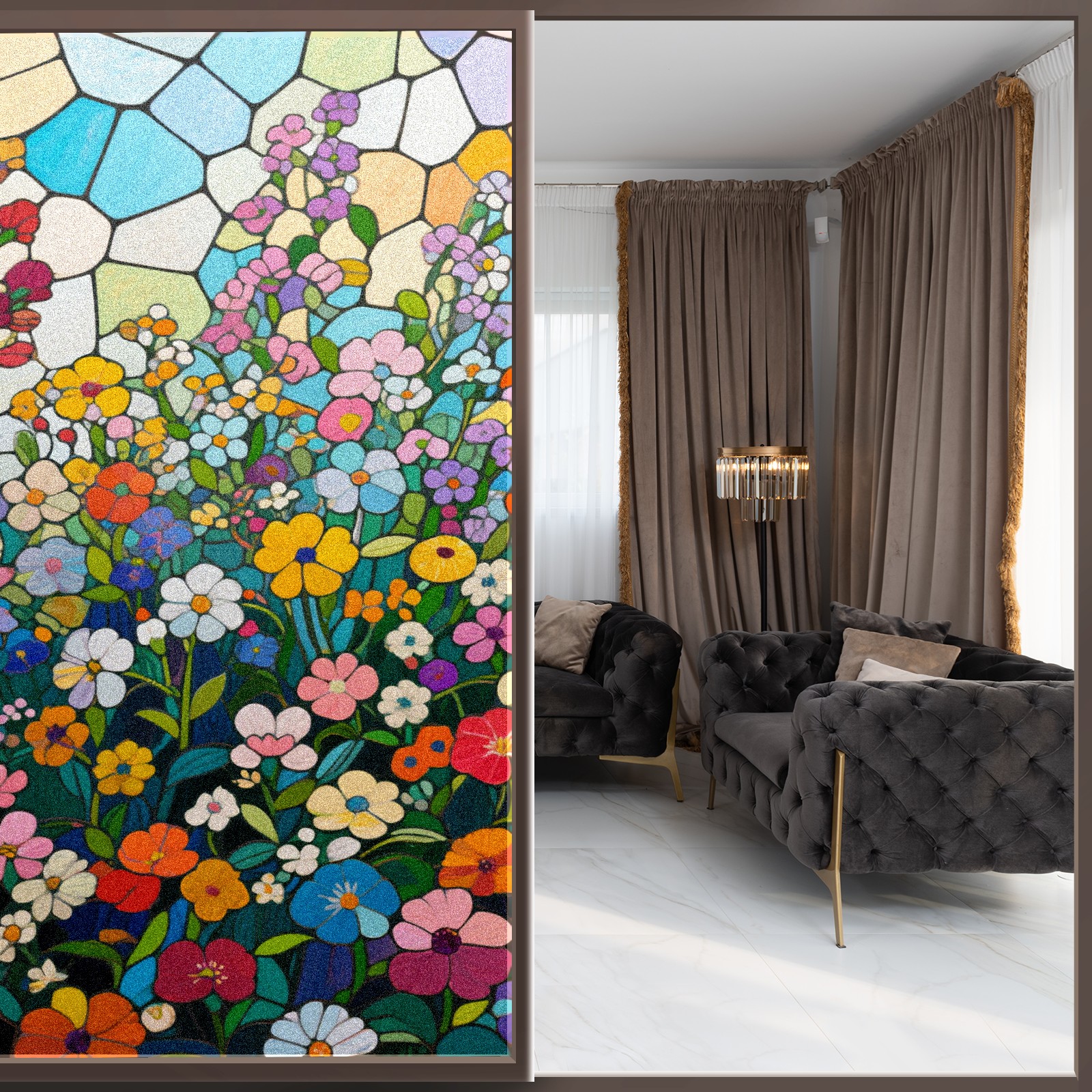 • <p>The main body is made of PET single-sided frosted material, with a smooth surface that adheres to the glass. The frosted surface forms a hazy blocking effect, effectively protecting privacy while retaining soft light.The pattern covers the entire surface of the sticker, adopting a seamless design with clear and three-dimensional texture, breaking the traditional sticker's sense of fragmentation.</p>