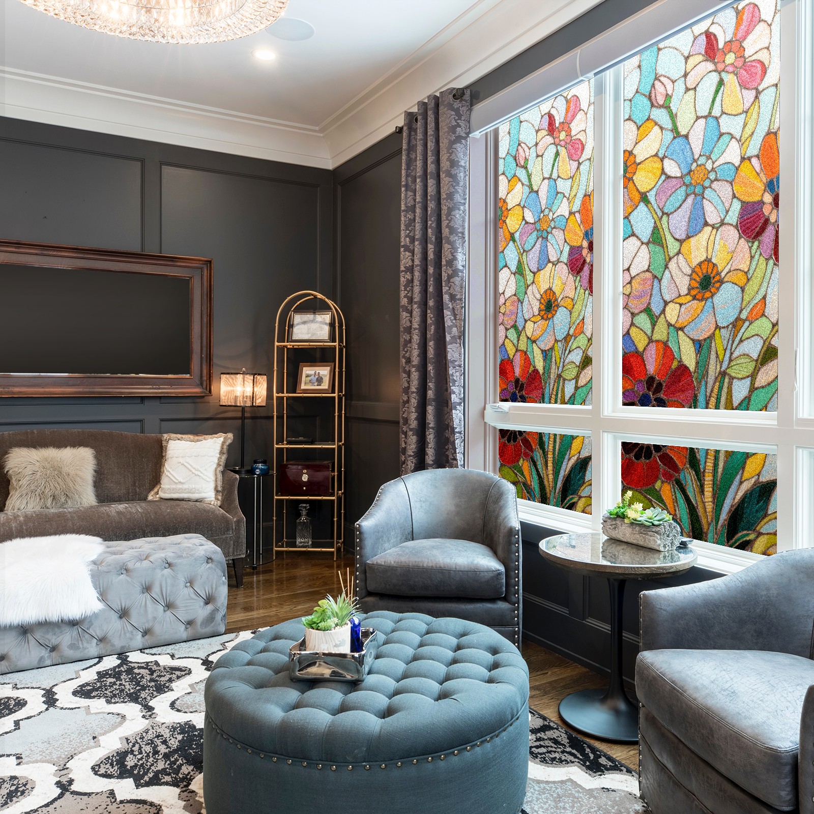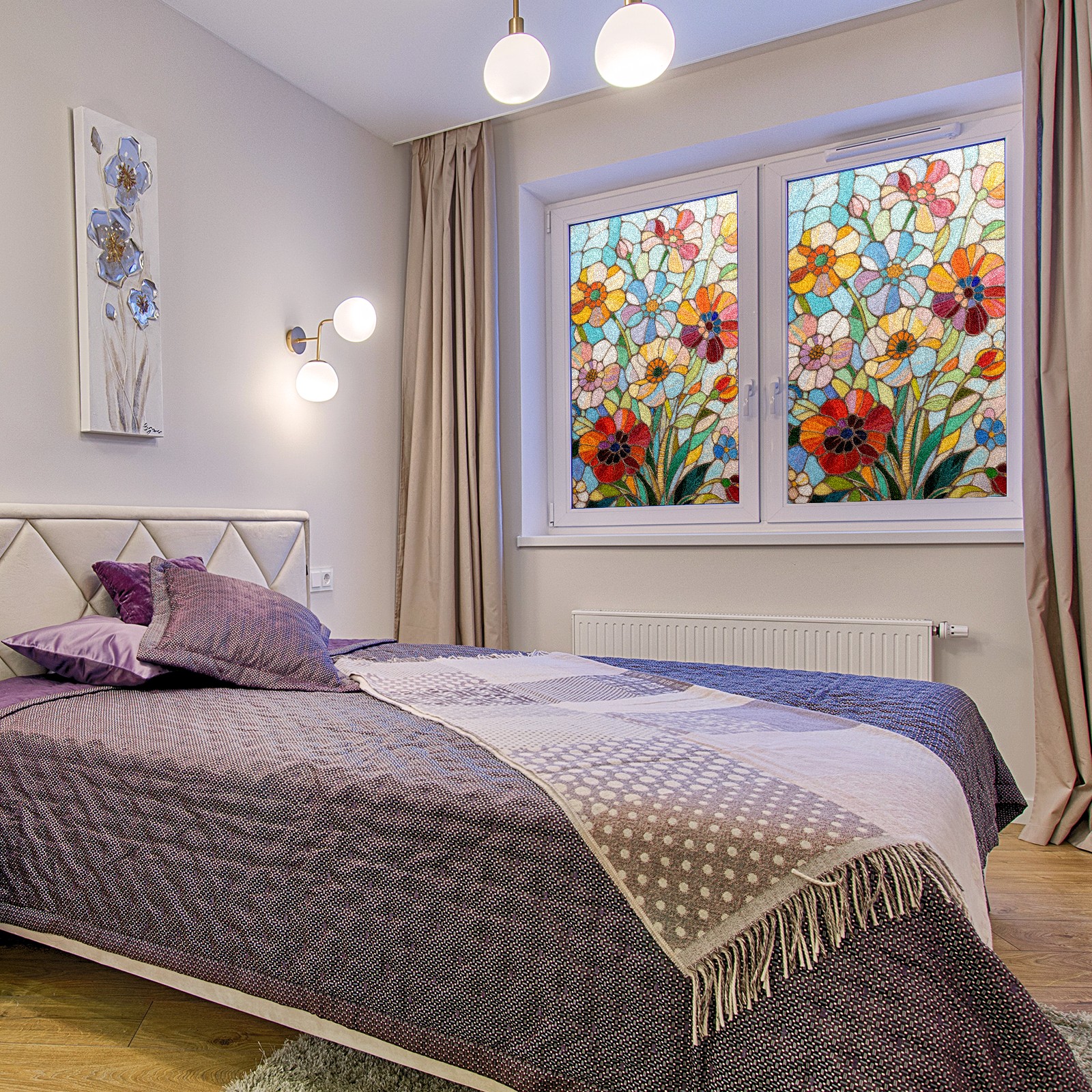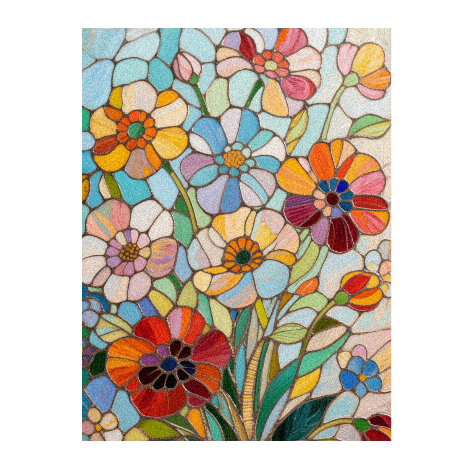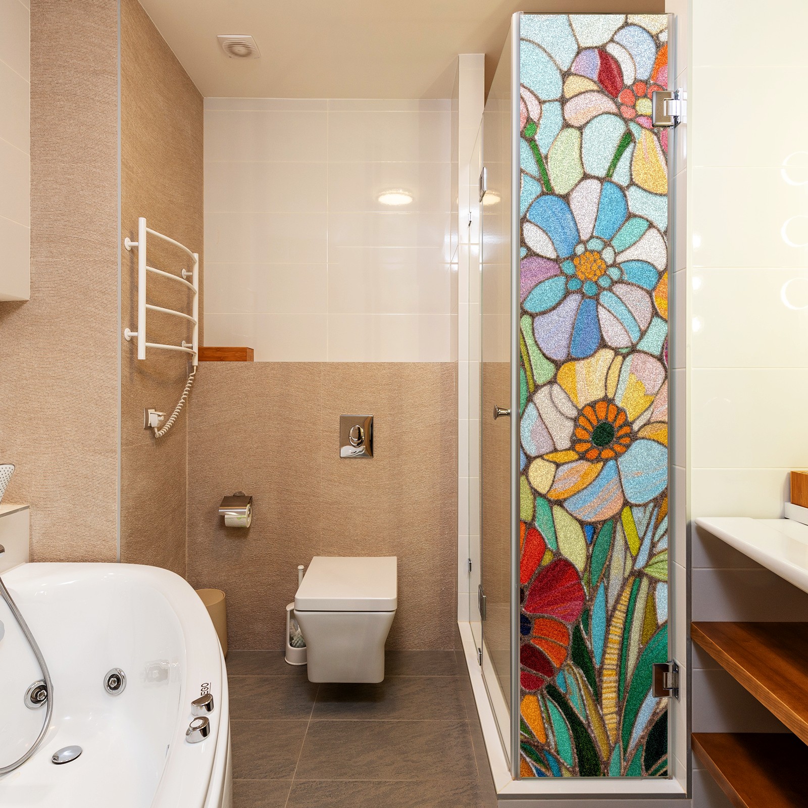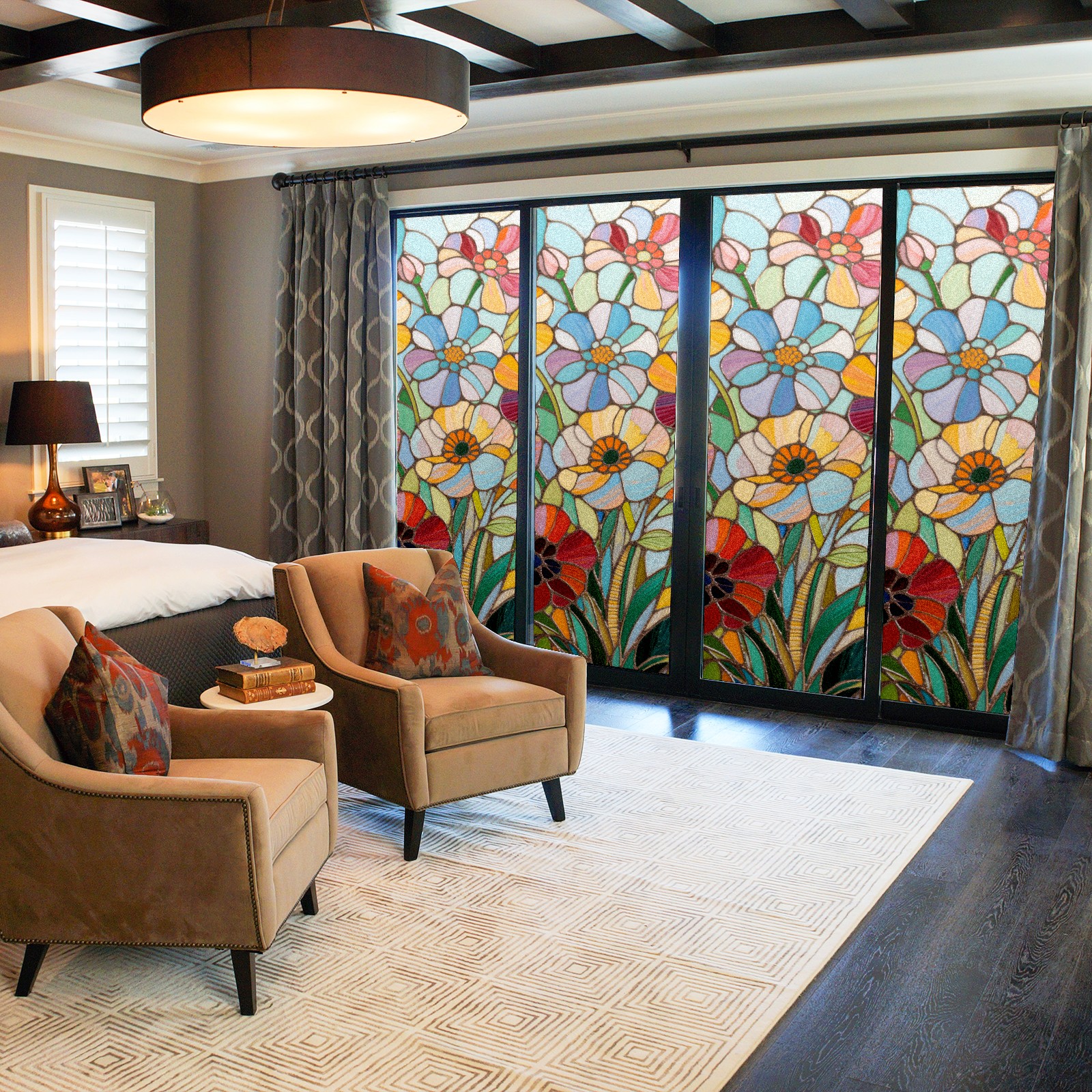 Single sided frosted full screen printed glass sticker soft pink green stripe seamless embroidery pattern privacy decoration Impressionist Flowers (3)
