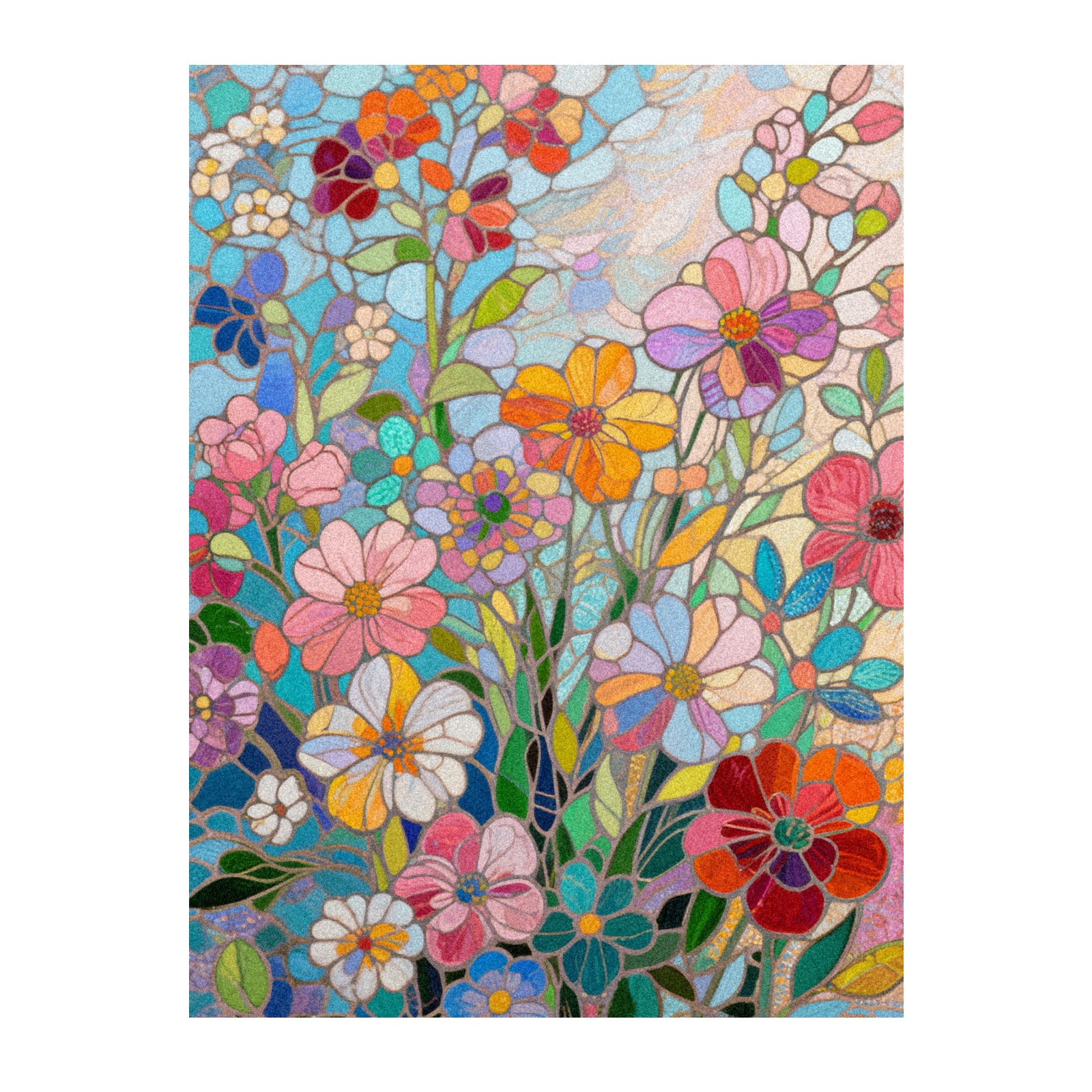 Single sided frosted full screen printed glass sticker soft pink green stripe seamless embroidery pattern privacy decoration Impressionist Flowers (1)
