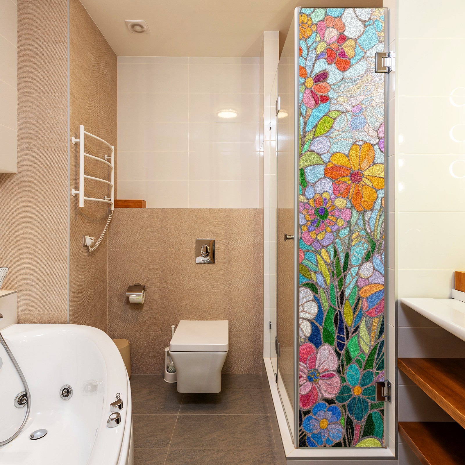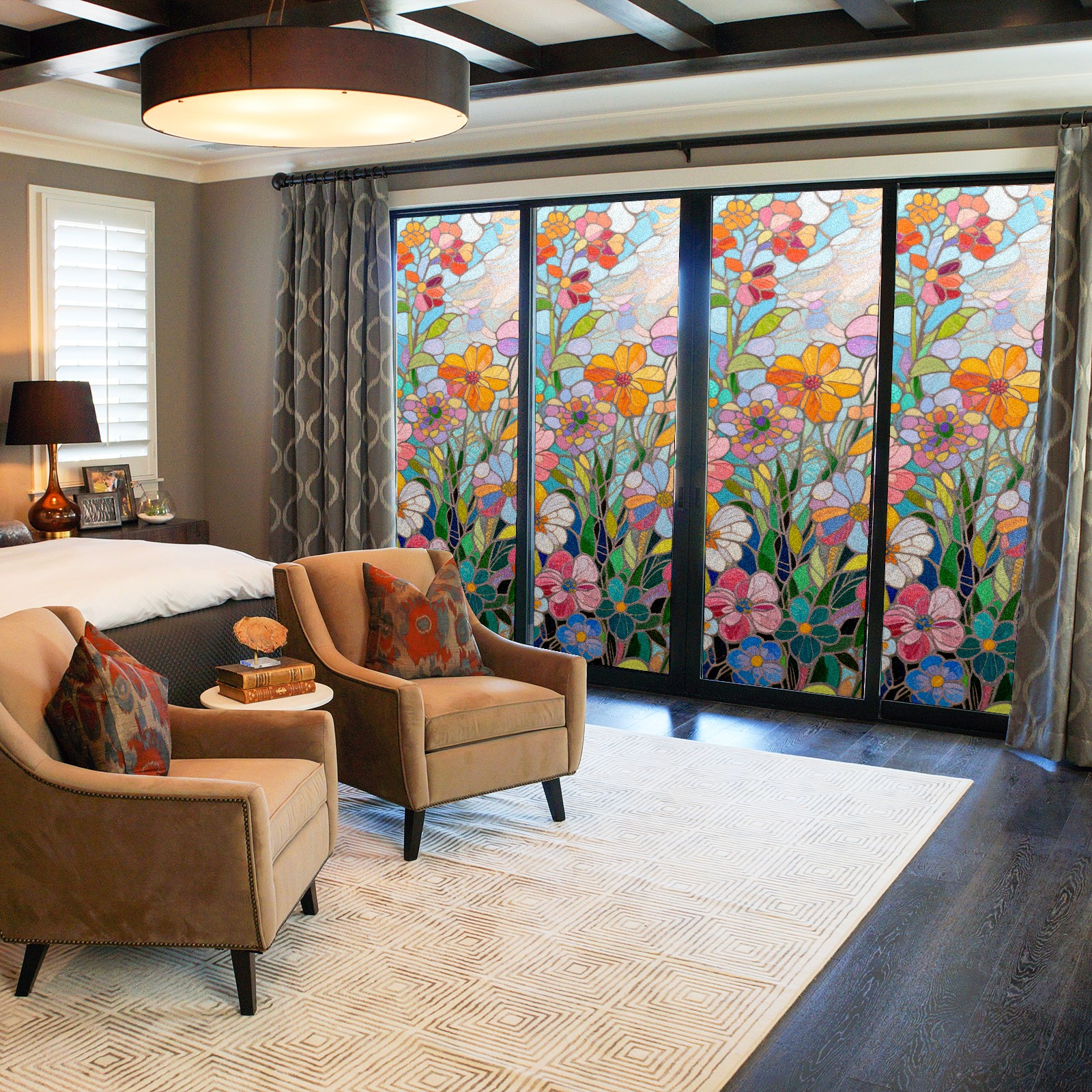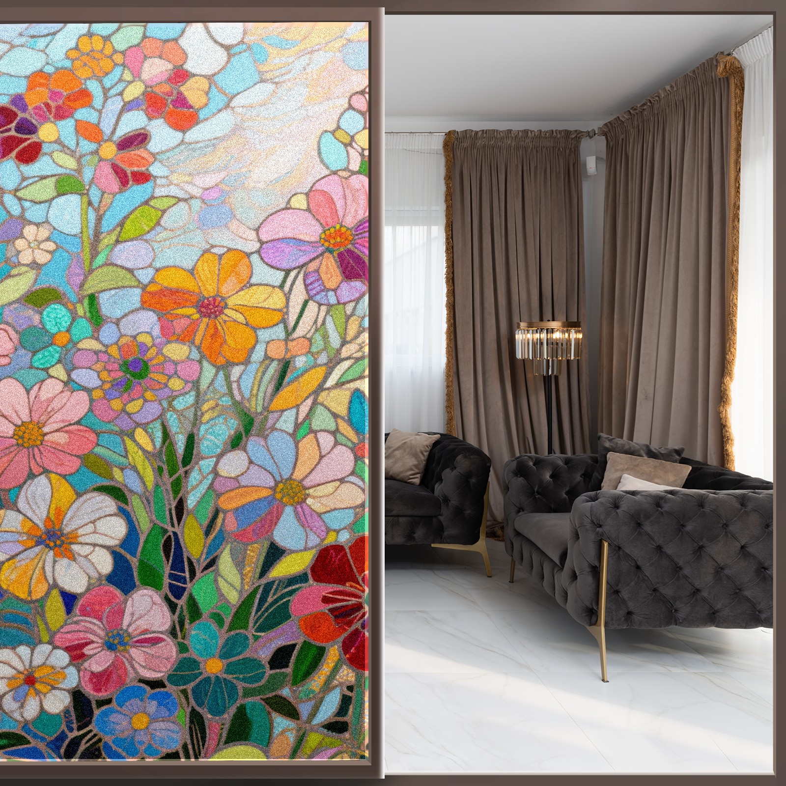 • <p>The main body is made of PET single-sided frosted material, with a smooth surface that adheres to the glass. The frosted surface forms a hazy blocking effect, effectively protecting privacy while retaining soft light.The pattern covers the entire surface of the sticker, adopting a seamless design with clear and three-dimensional texture, breaking the traditional sticker's sense of fragmentation.</p>