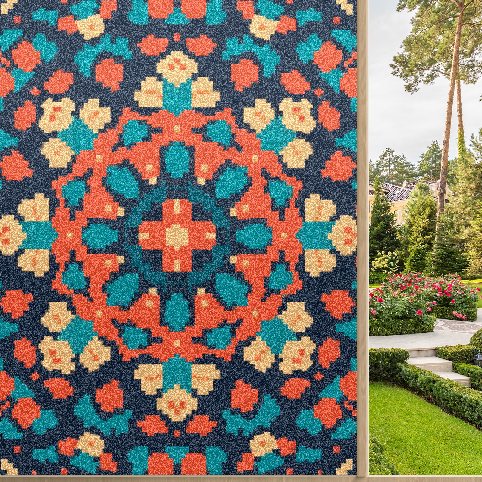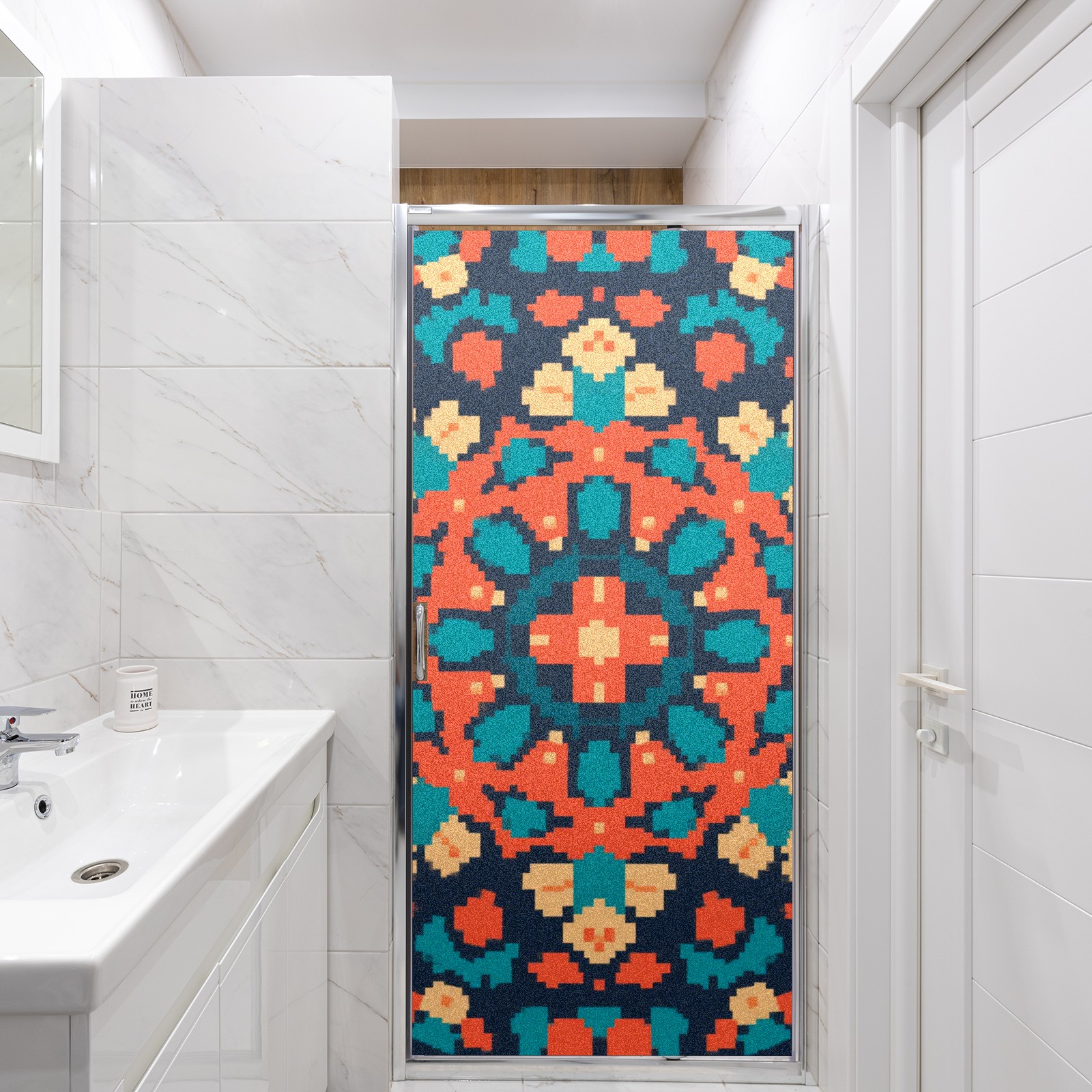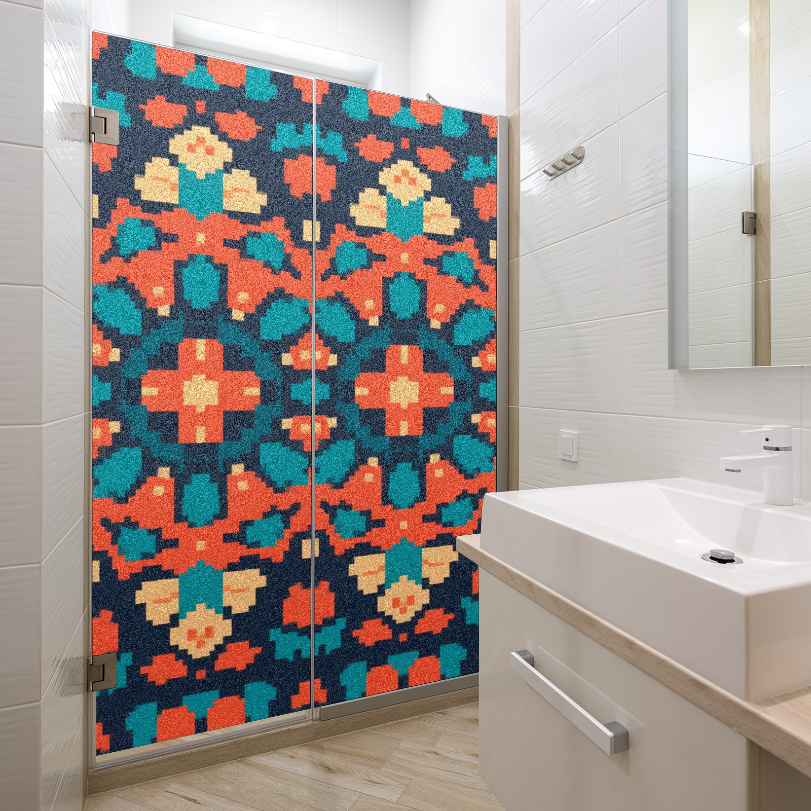 Single sided frosted full screen printed glass sticker soft pink green stripe seamless embroidery pattern privacy decoration Pixel Style Orange Pattern