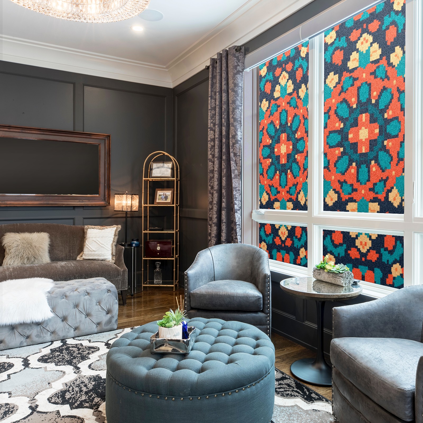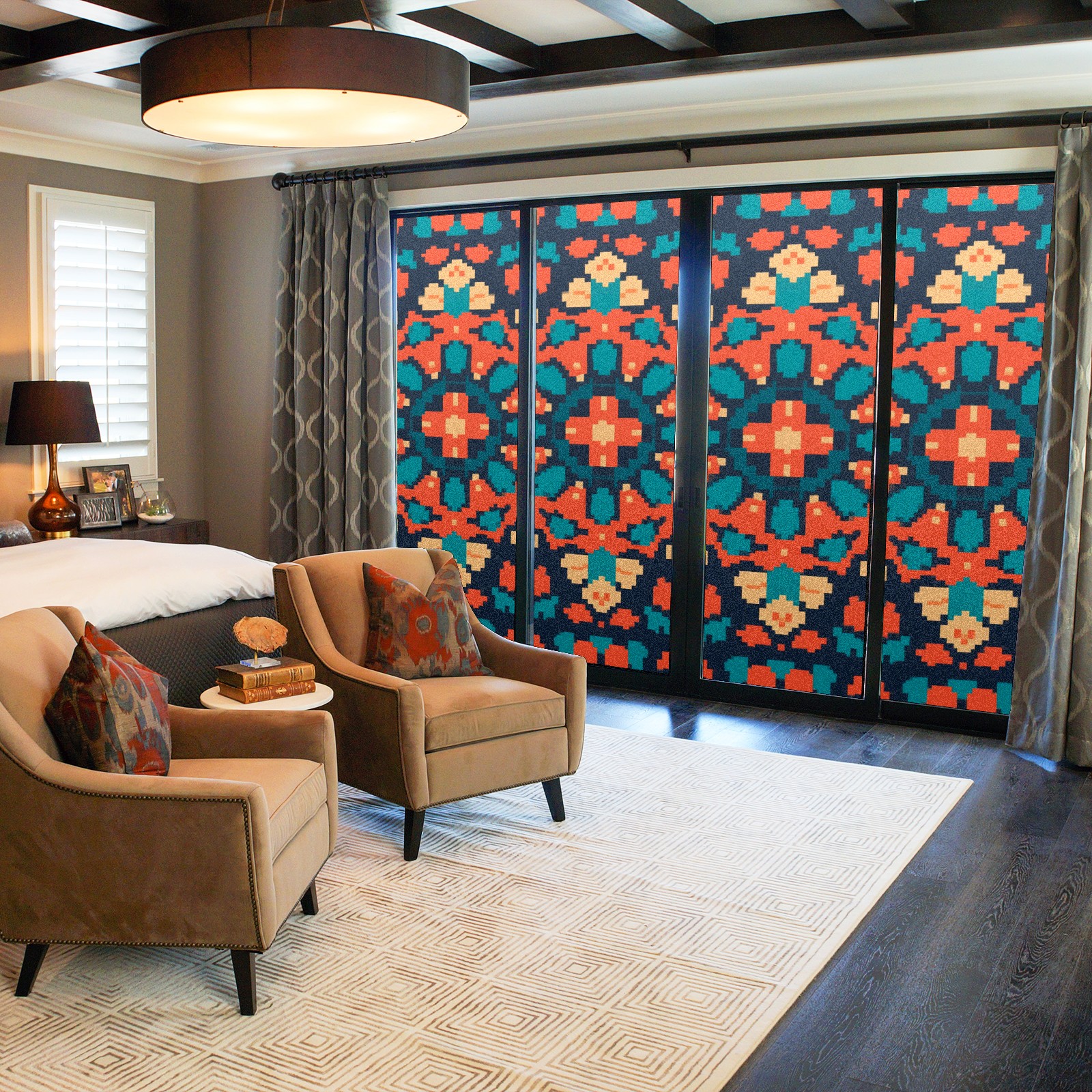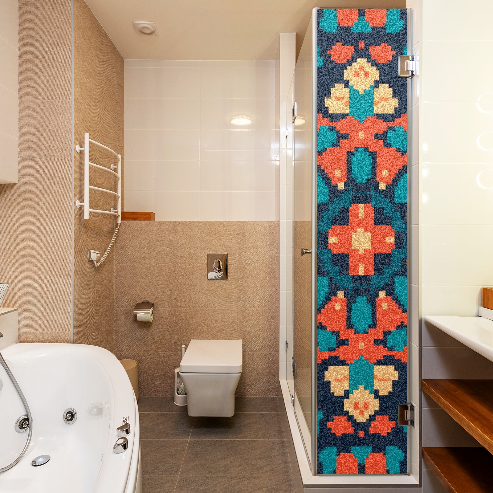 Single sided frosted full screen printed glass sticker soft pink green stripe seamless embroidery pattern privacy decoration Pixel Style Orange Pattern