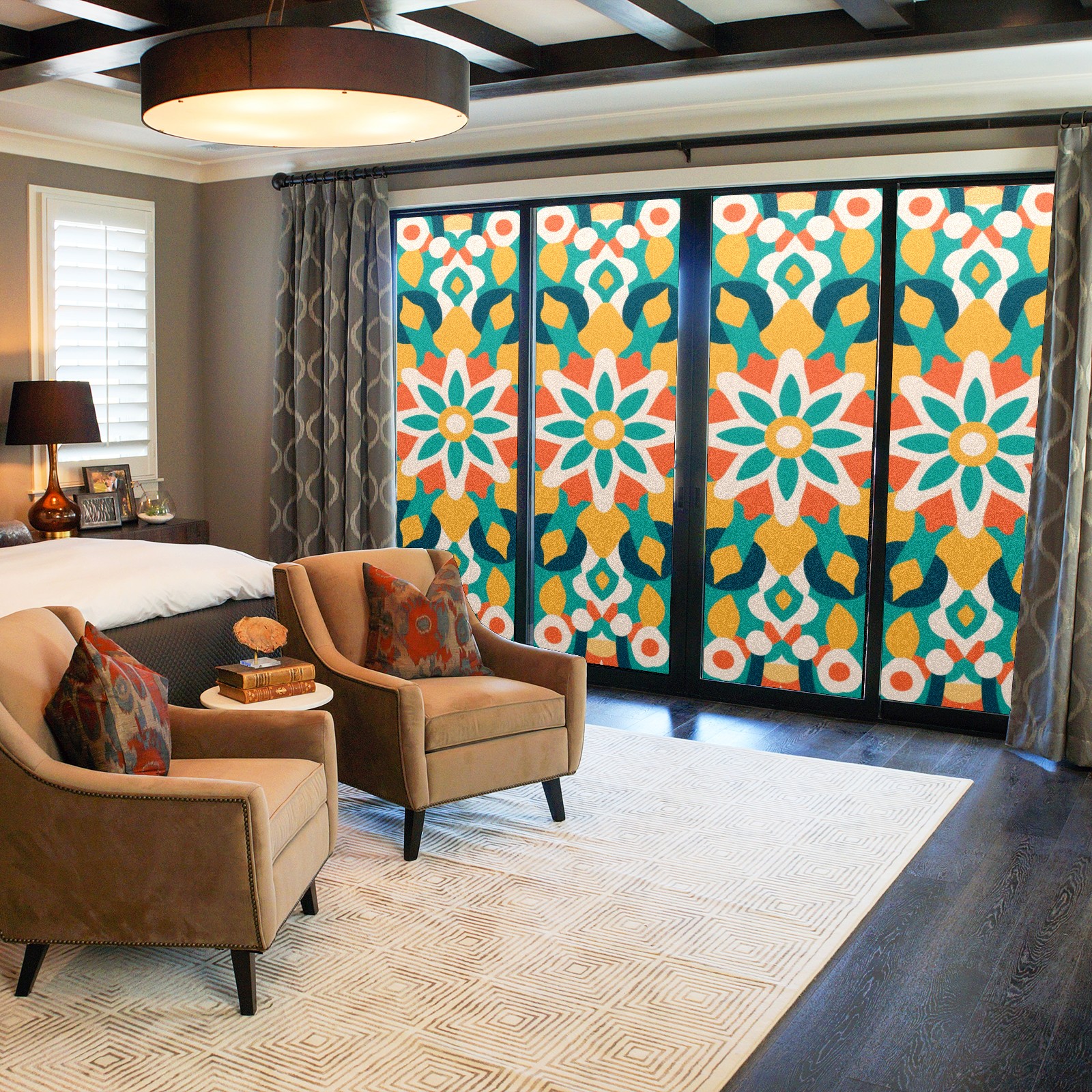 • <p>The main body is made of PET single-sided frosted material, with a smooth surface that adheres to the glass. The frosted surface forms a hazy blocking effect, effectively protecting privacy while retaining soft light.The pattern covers the entire surface of the sticker, adopting a seamless design with clear and three-dimensional texture, breaking the traditional sticker's sense of fragmentation.</p>