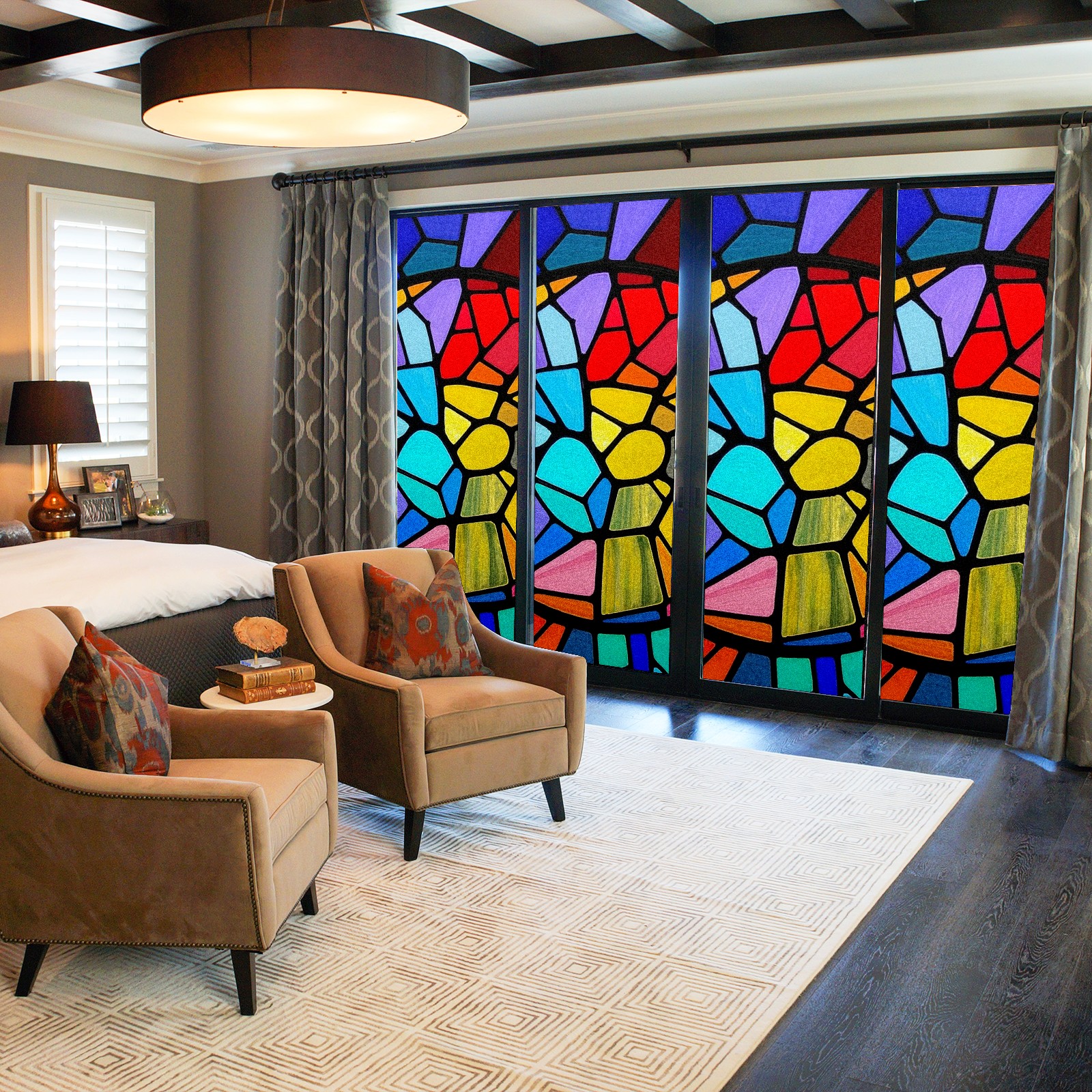 Single sided frosted full screen printed glass sticker soft pink green stripe seamless embroidery pattern privacy decoration Rotundity Stained Glass