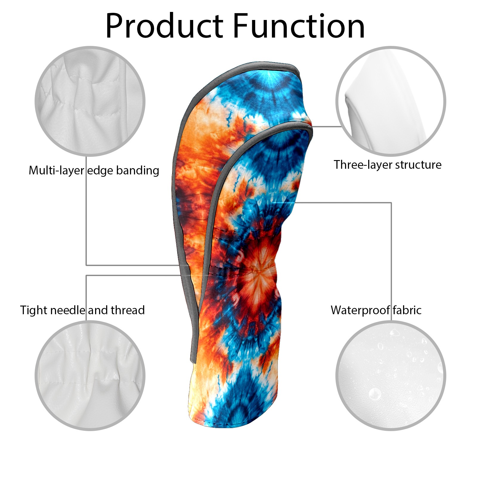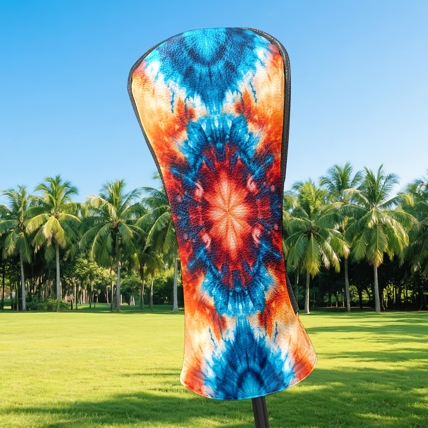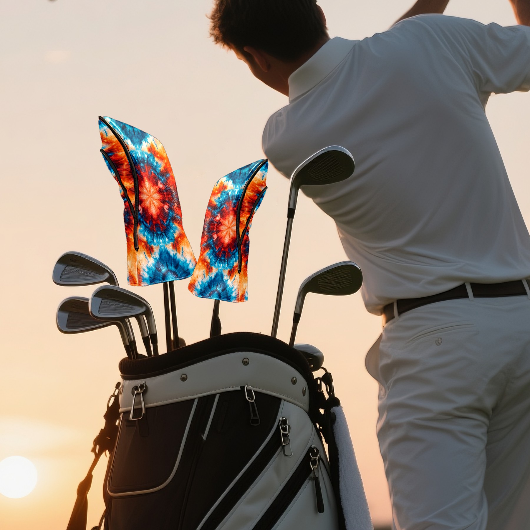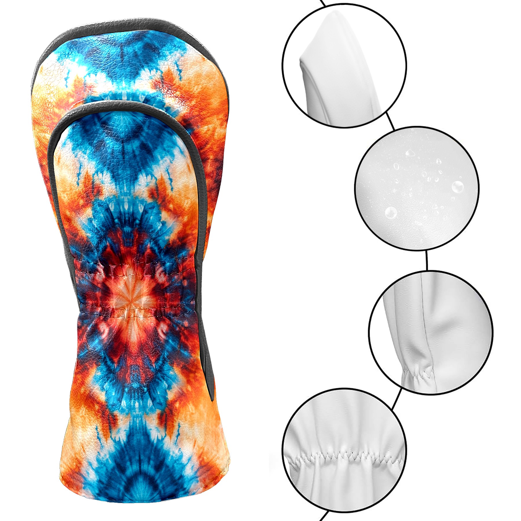 Golf Club Head Cover Premium Leather Driver Headcover, Golf Head Covers for Woods and Driver Waterproof Golf Headcovers with Anti-Scratch Lining for Men Women (Tie Dye Blue Orange)
