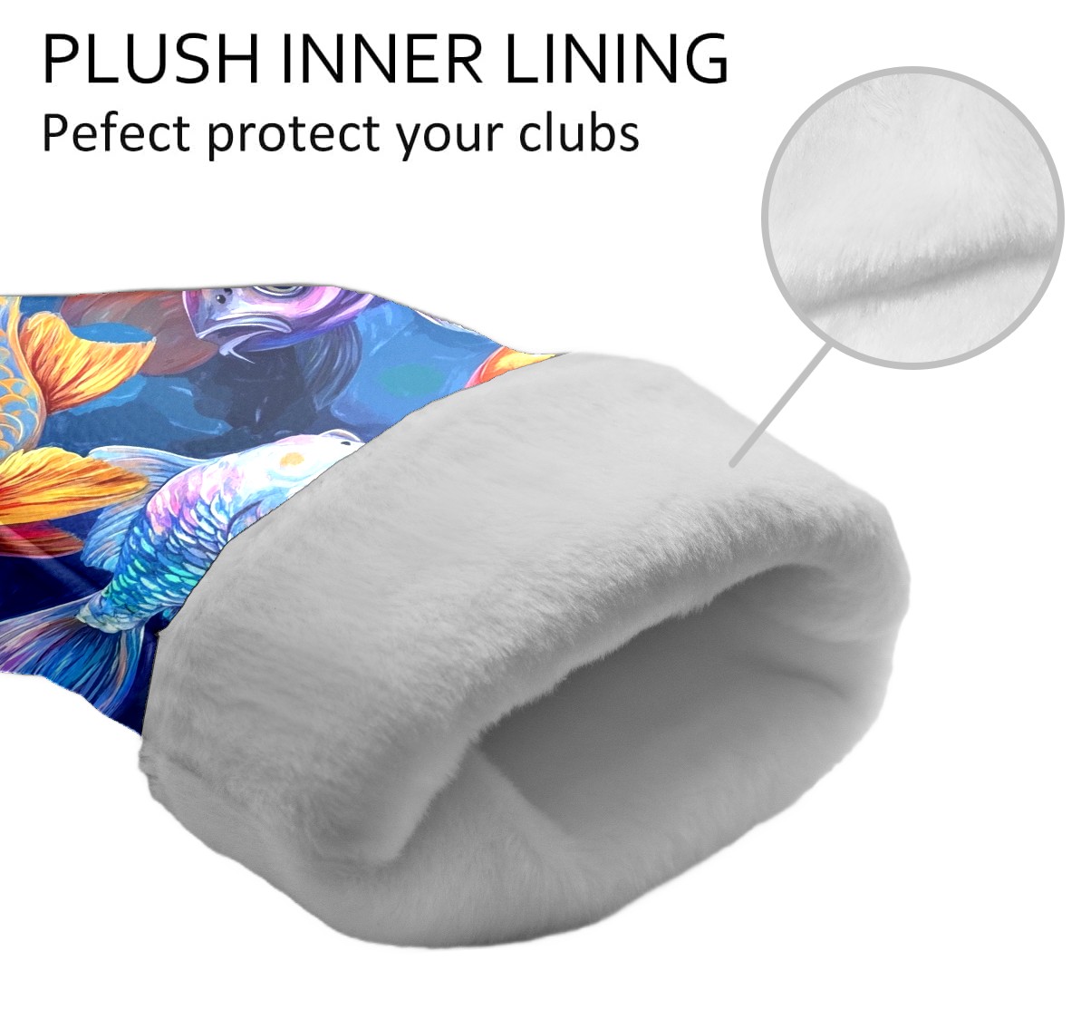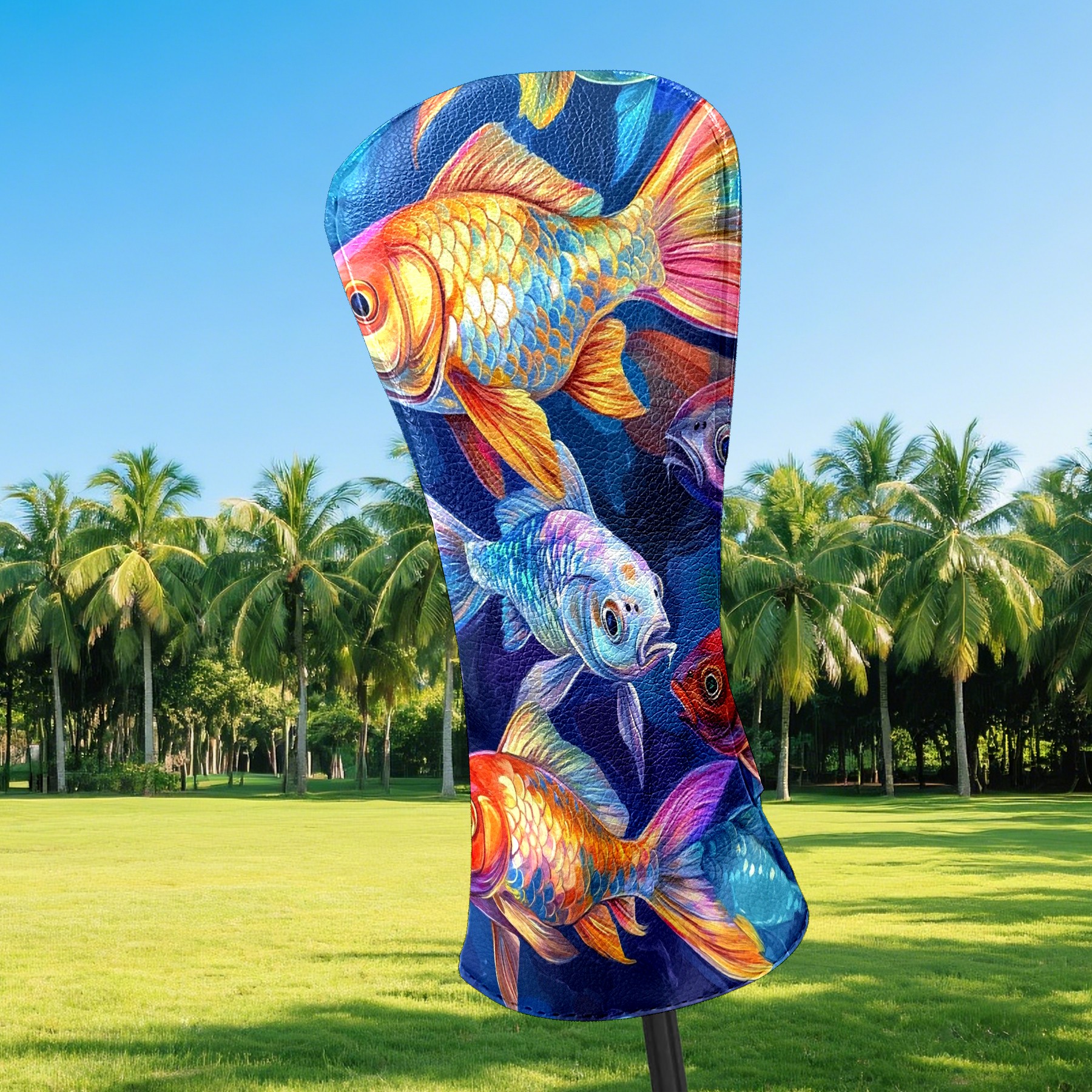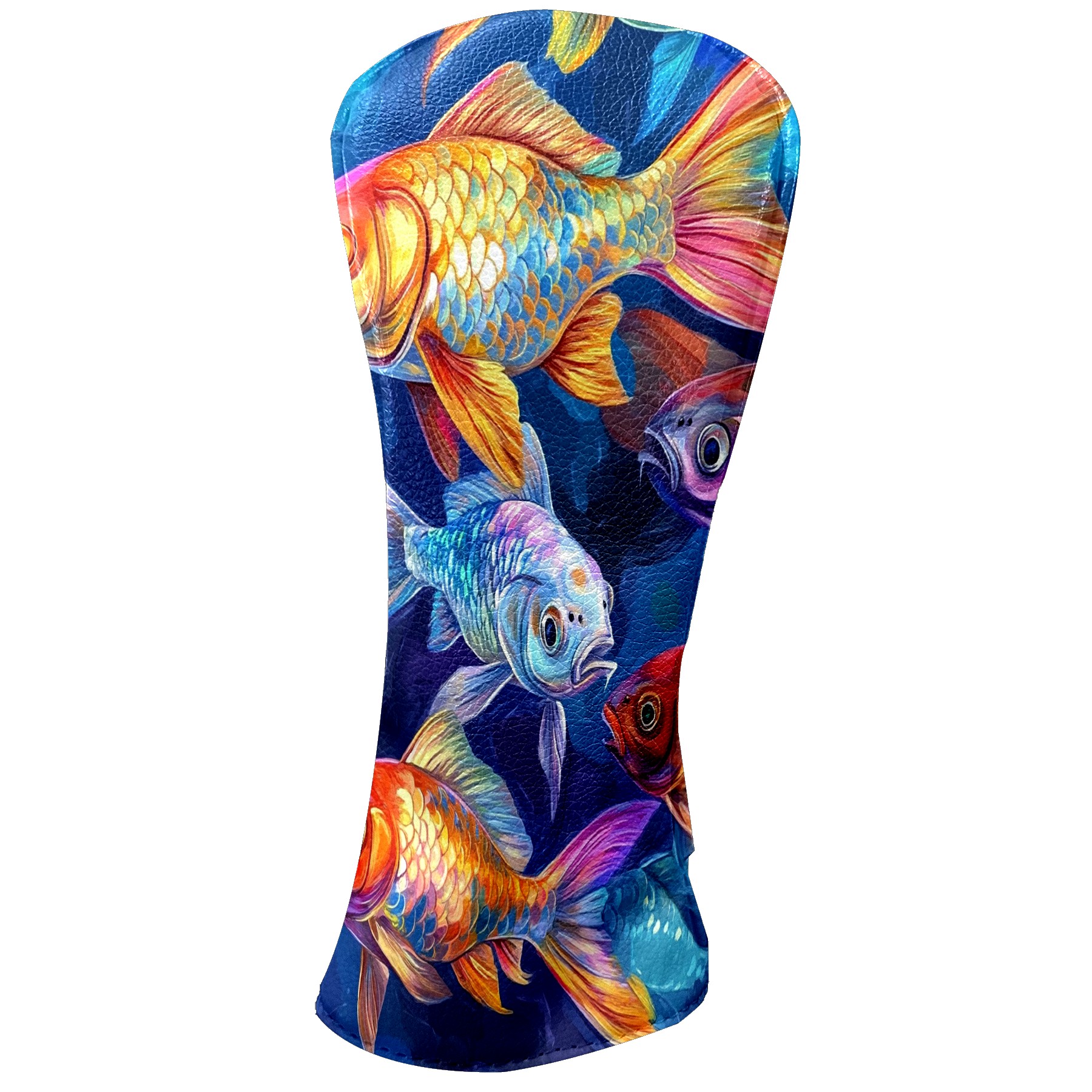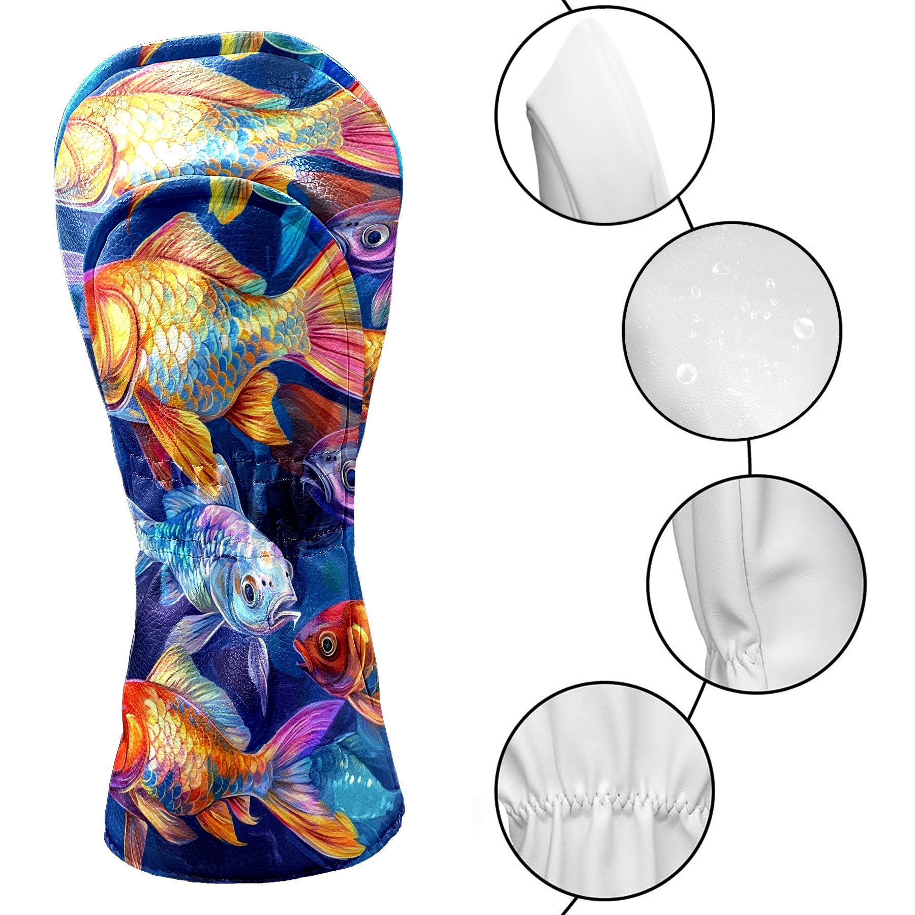 Golf Club Head Cover Premium Leather Driver Headcover, Golf Head Covers for Woods and Driver Waterproof Golf Headcovers with Anti-Scratch Lining for Men Women (Carp Fishes)