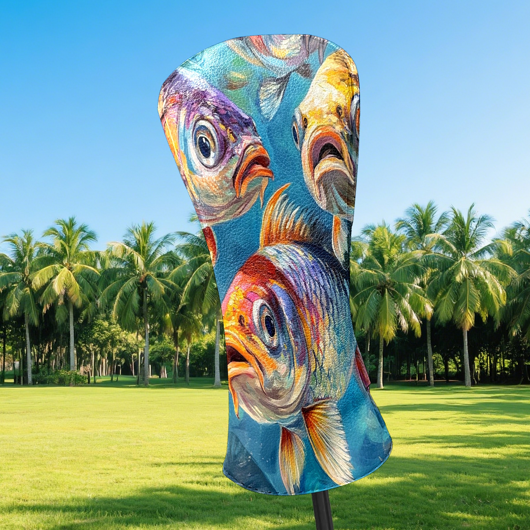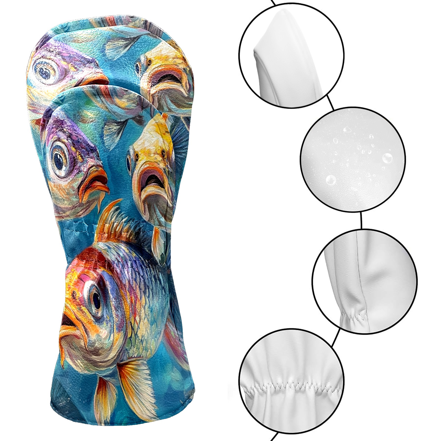 Golf Club Head Cover Premium Leather Driver Headcover, Golf Head Covers for Woods and Driver Waterproof Golf Headcovers with Anti-Scratch Lining for Men Women (Fishes)