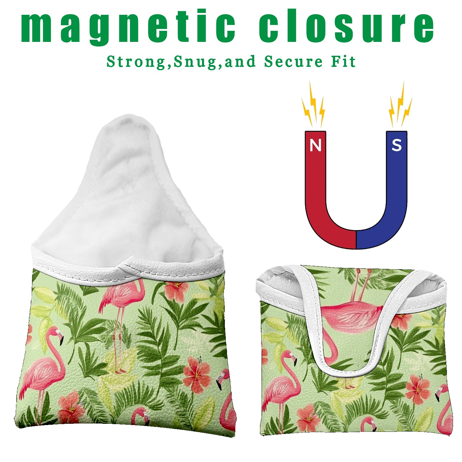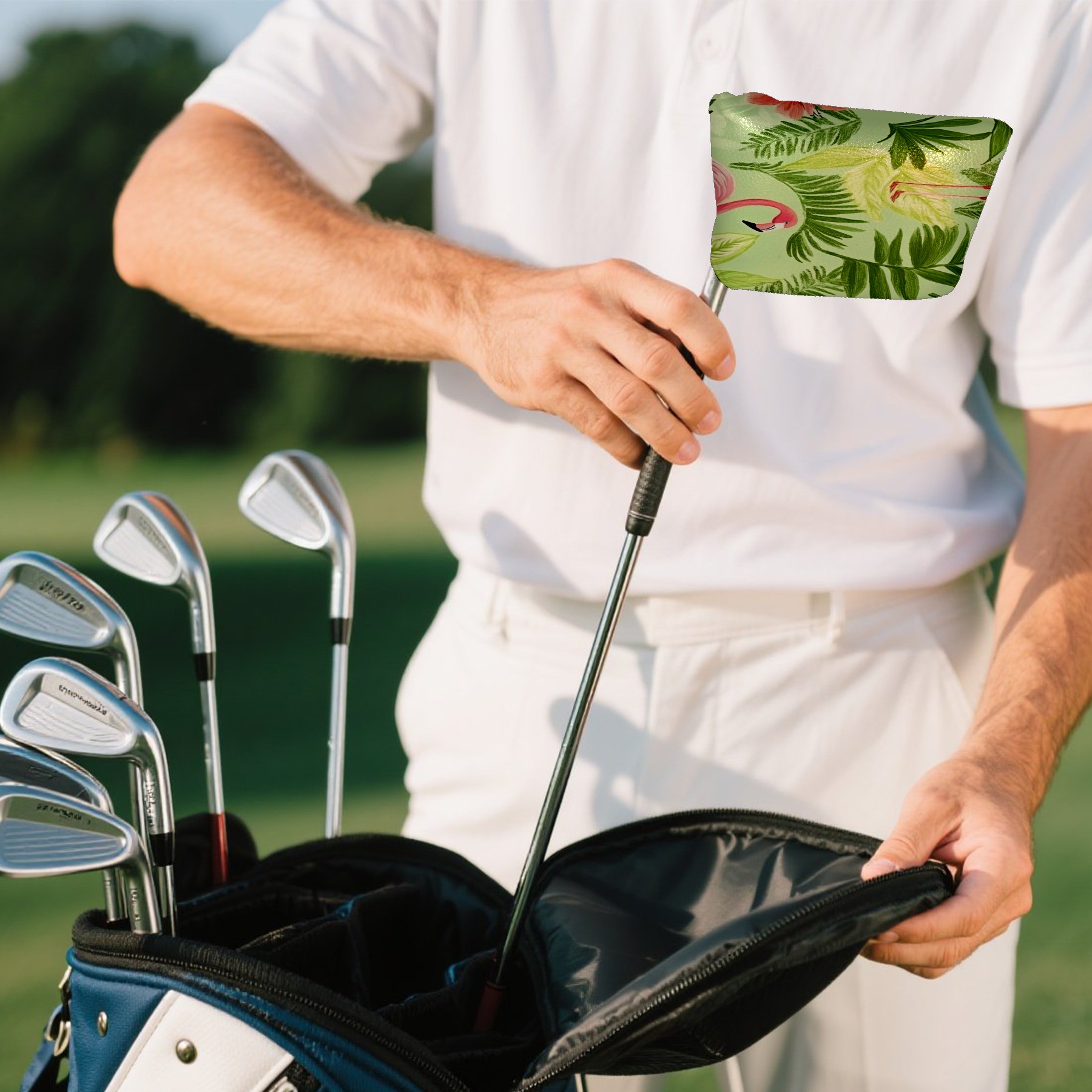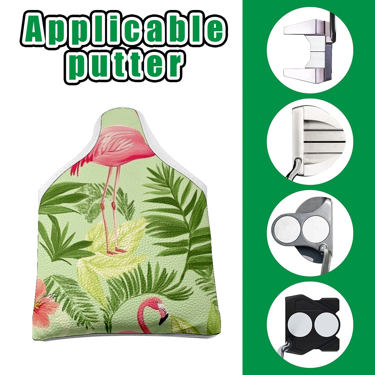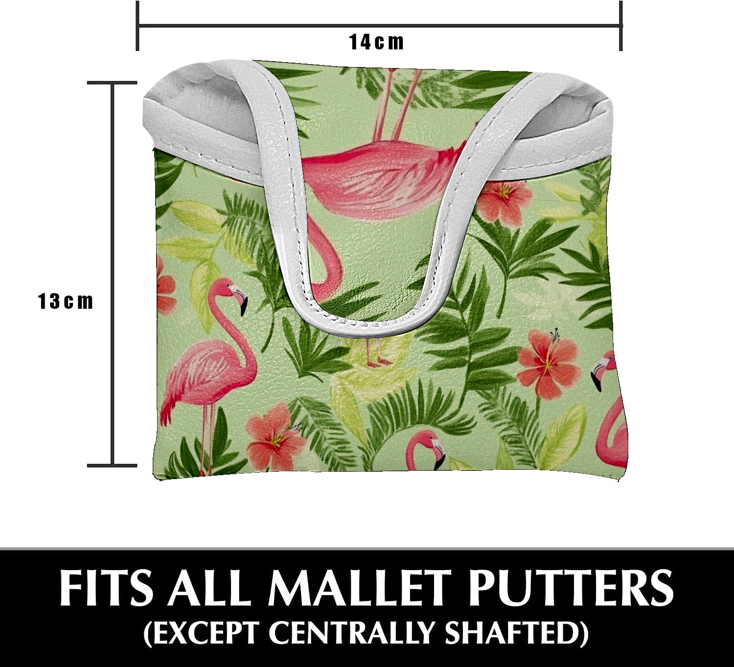 Golf Headcover Mallet Putter Cover, Waterproof Protective Cover for Golf Clubs, Ideal Golf Accessories Gift for Men Women (Pink Flamingos Green)