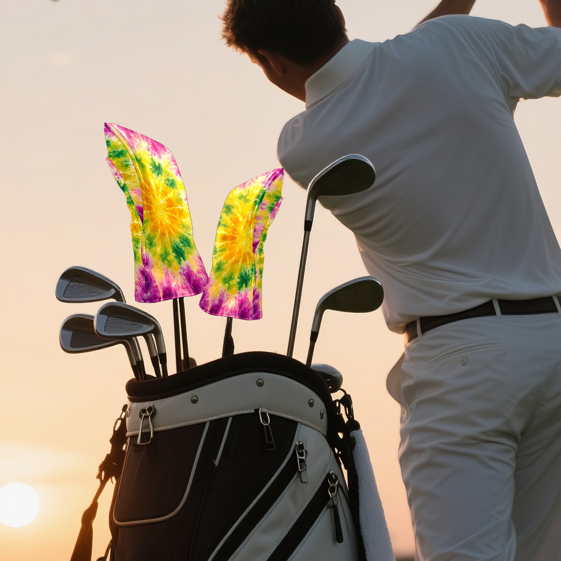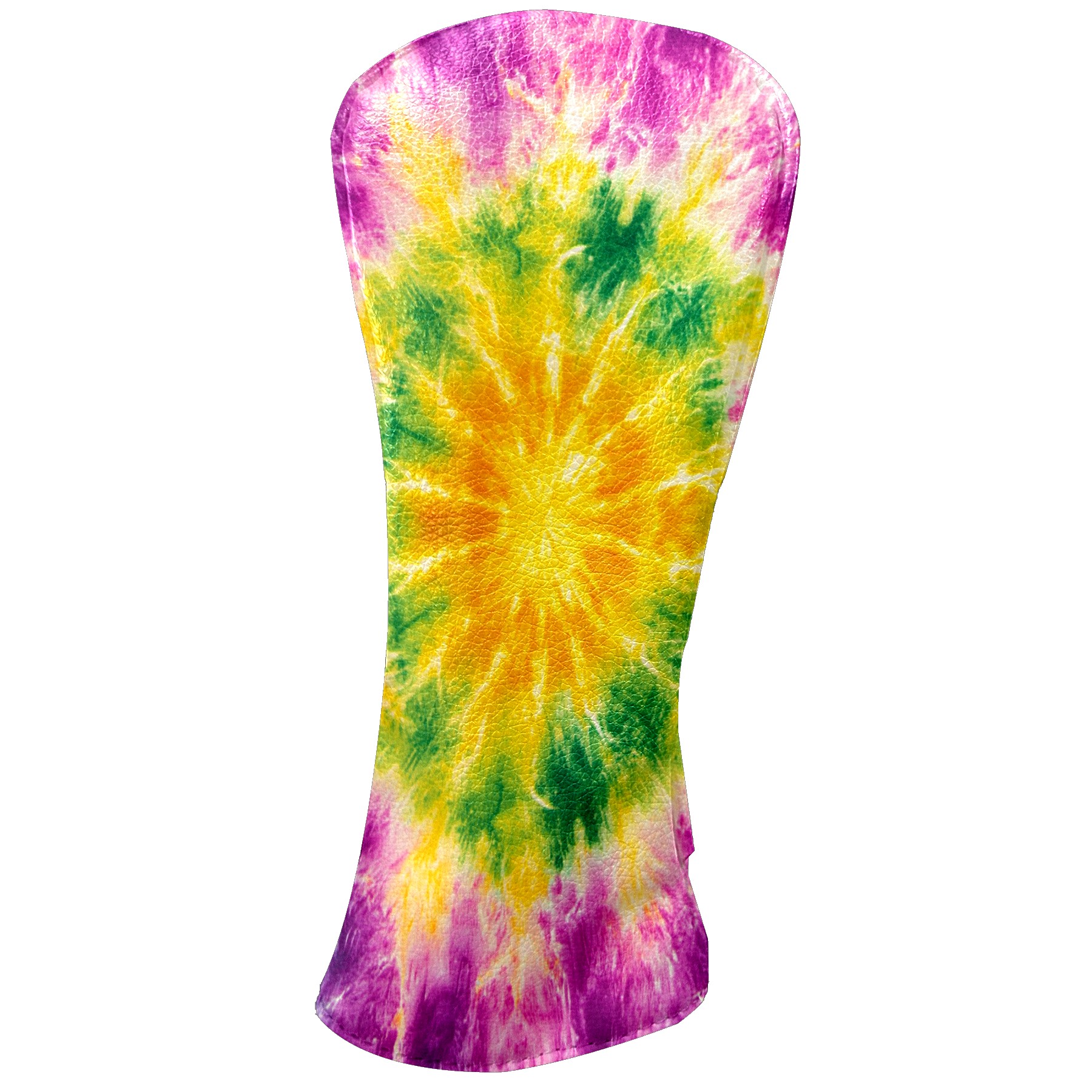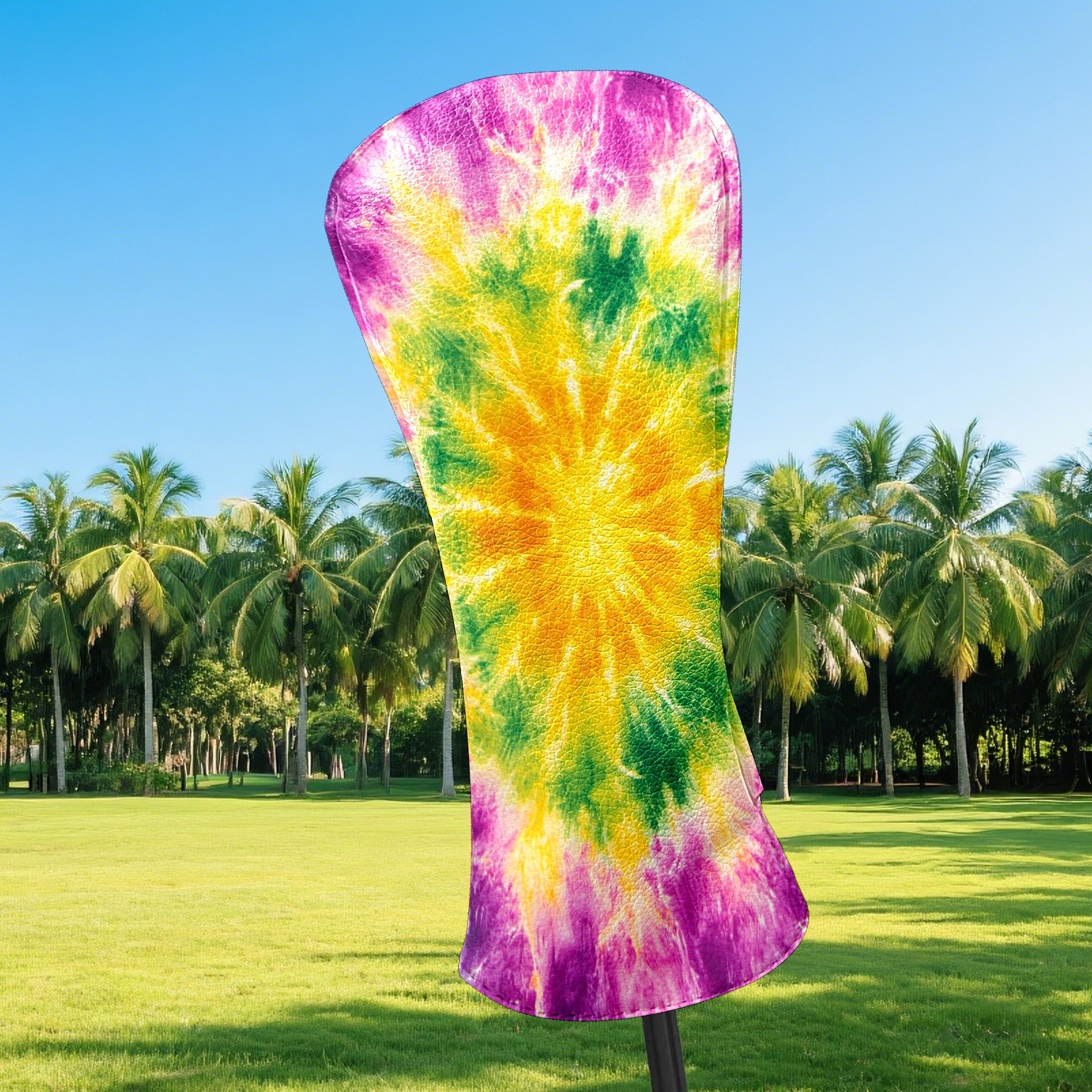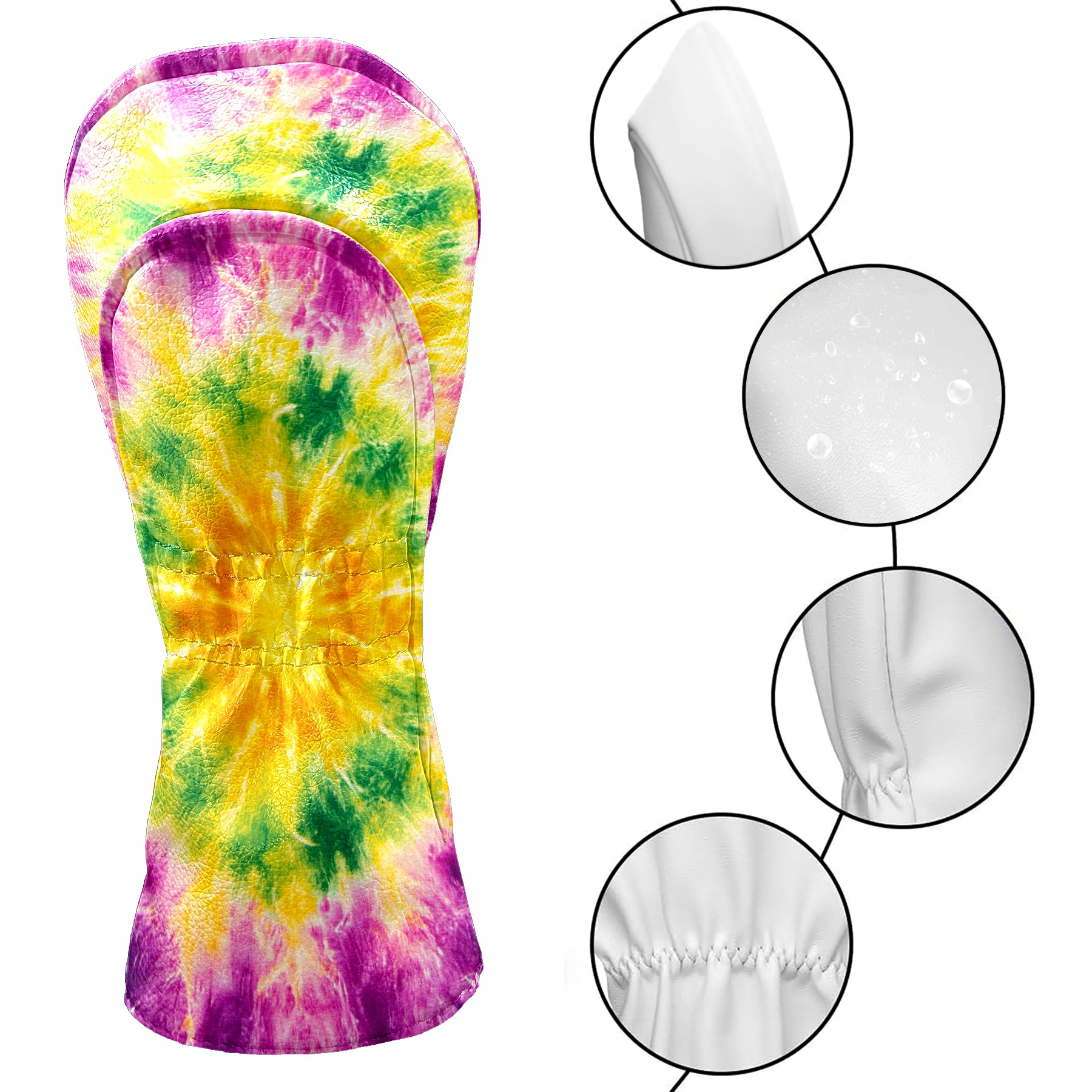Golf Club Head Cover Premium Leather Driver Headcover, Golf Head Covers for Woods and Driver Waterproof Golf Headcovers with Anti-Scratch Lining for Men Women (Tie Dye Pink Yellow)