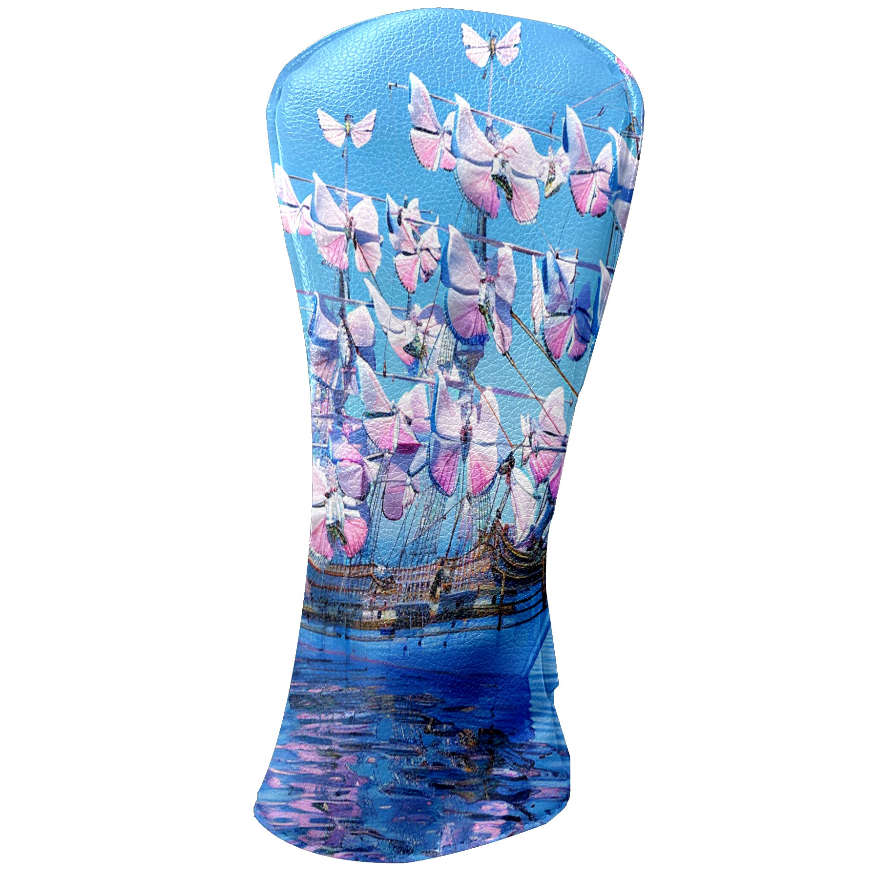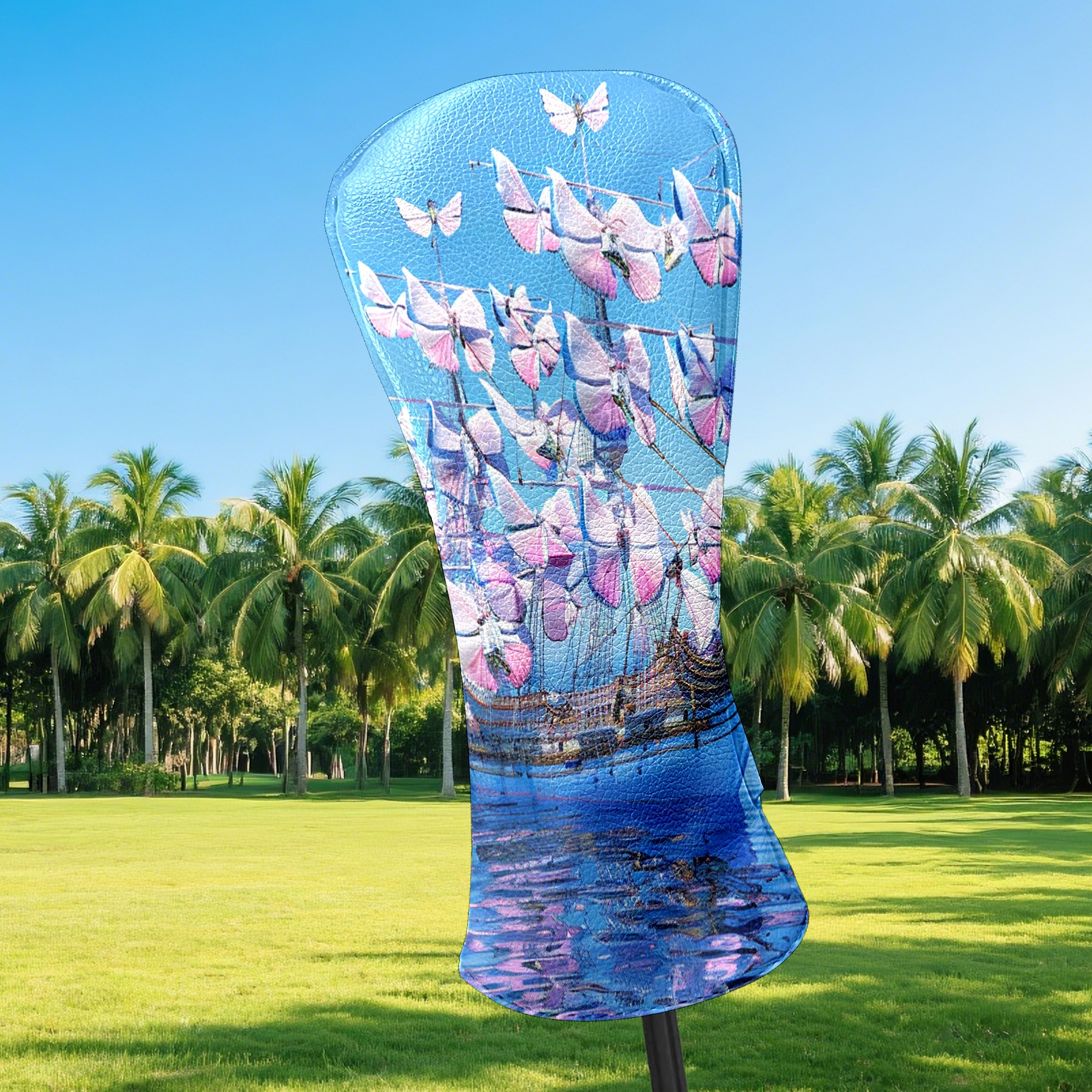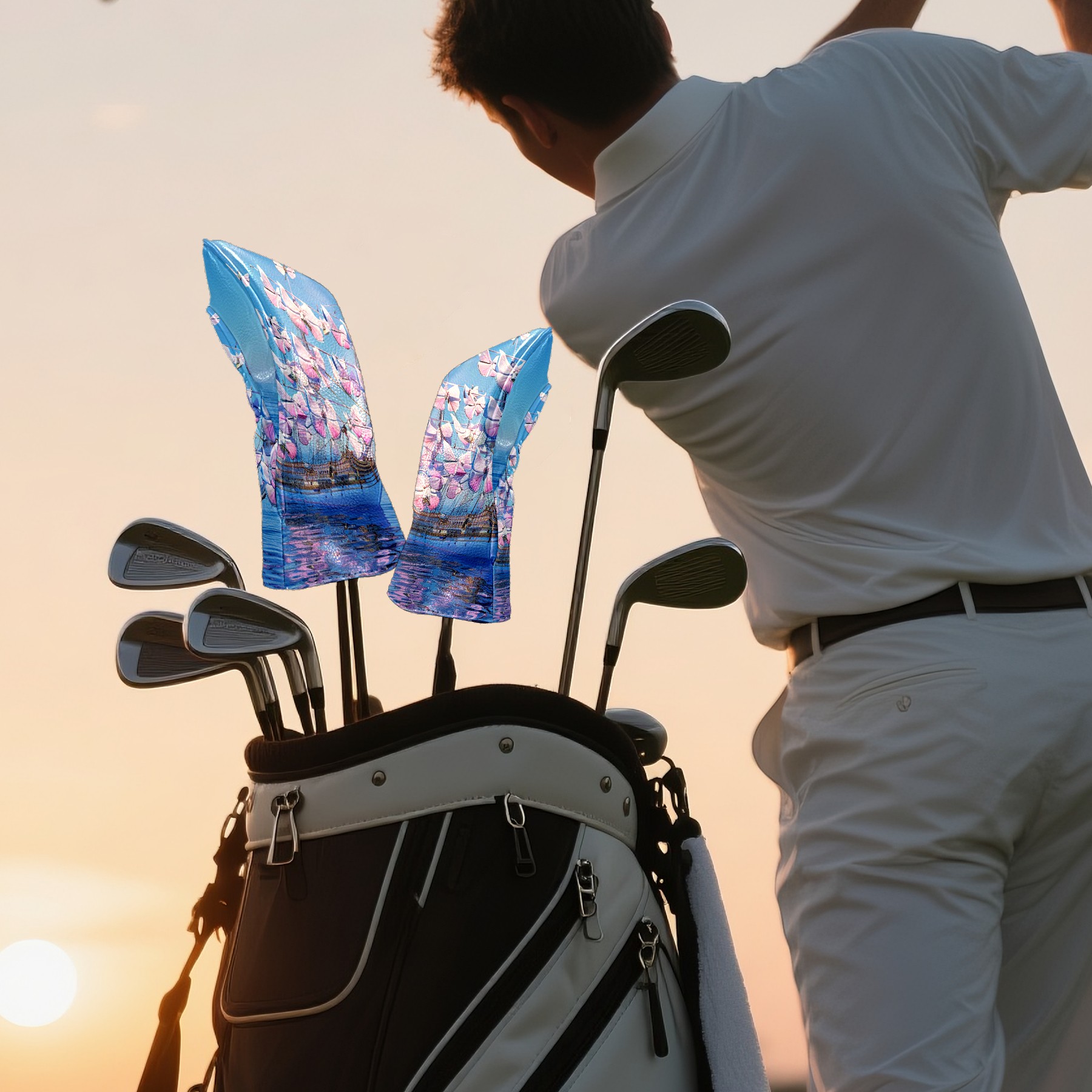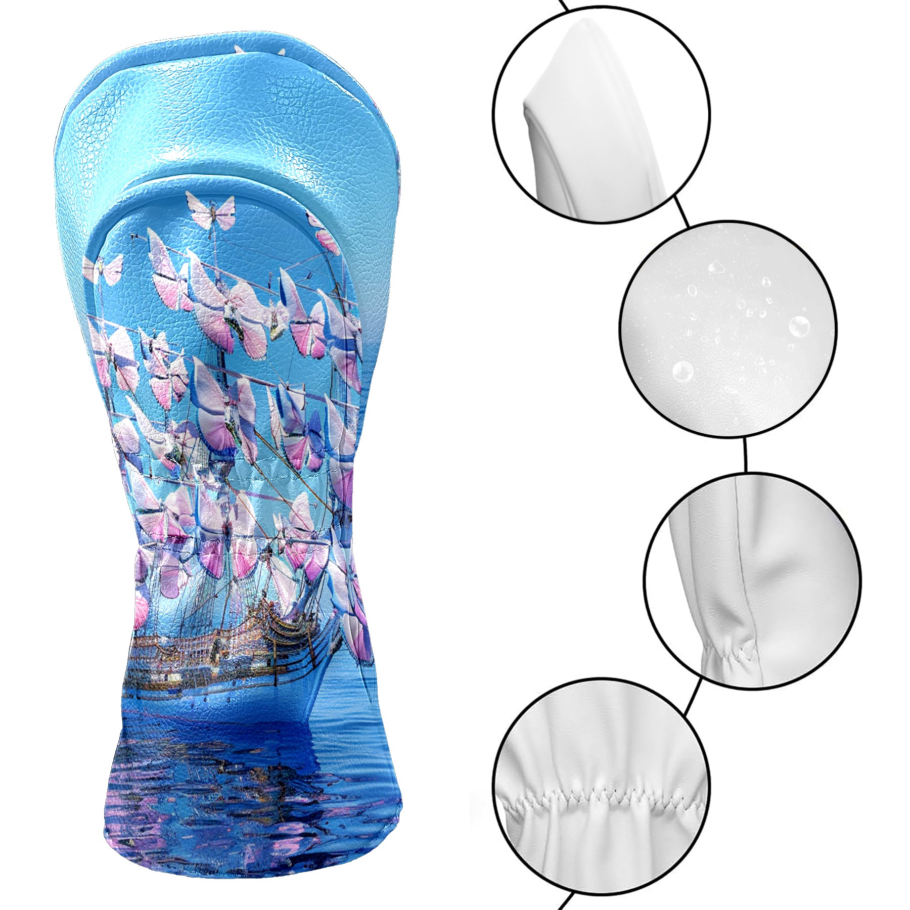Golf Club Head Cover Premium Leather Driver Headcover, Golf Head Covers for Woods and Driver Waterproof Golf Headcovers with Anti-Scratch Lining for Men Women (Pink Butterflies)
