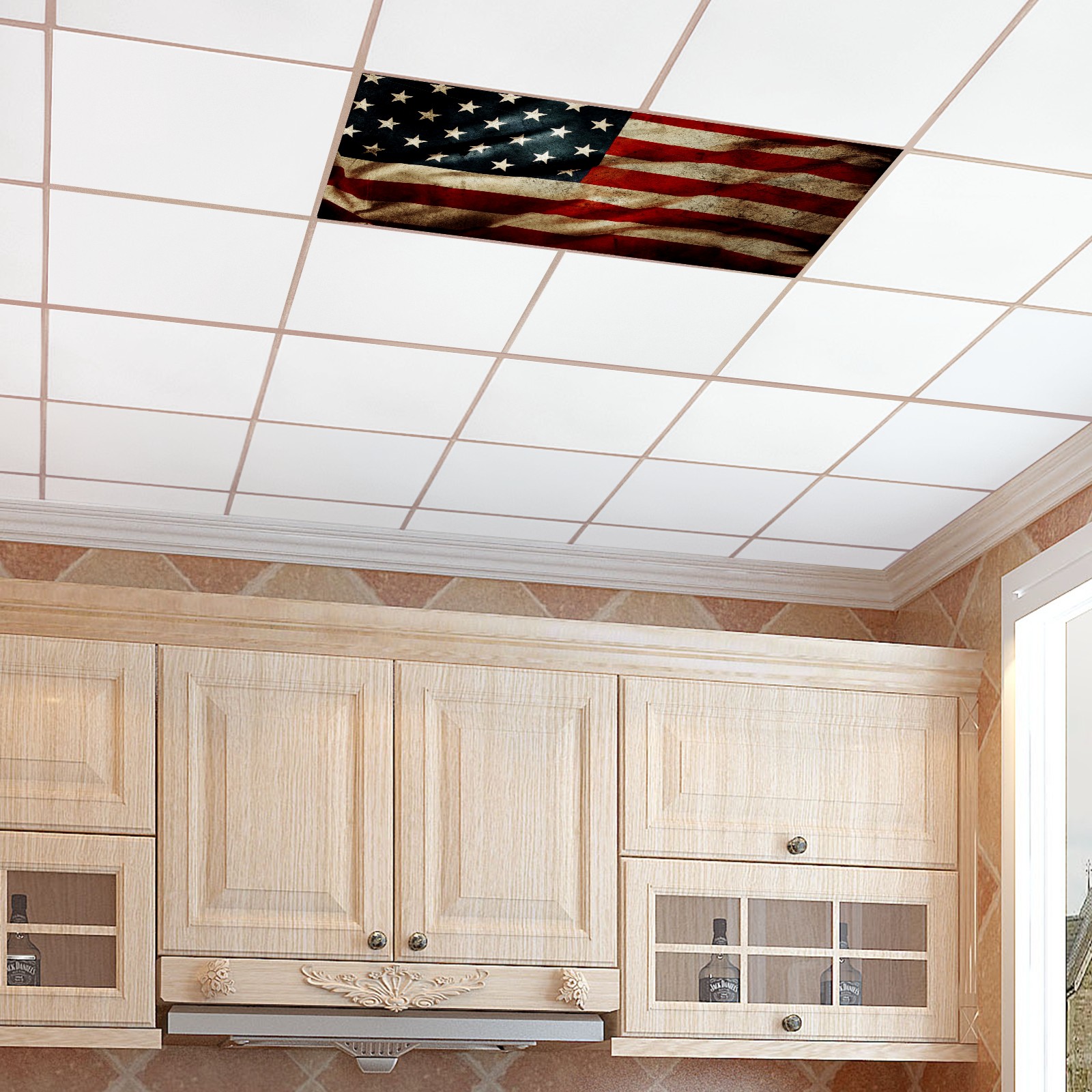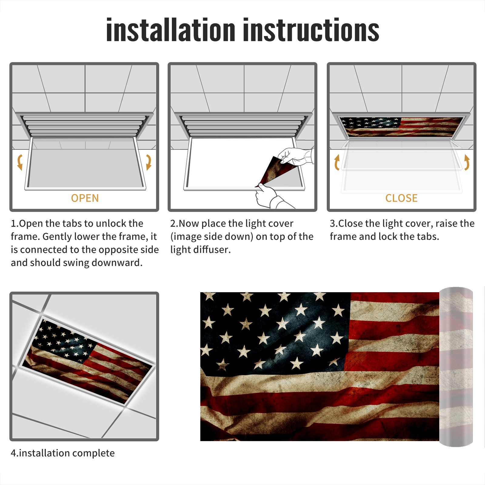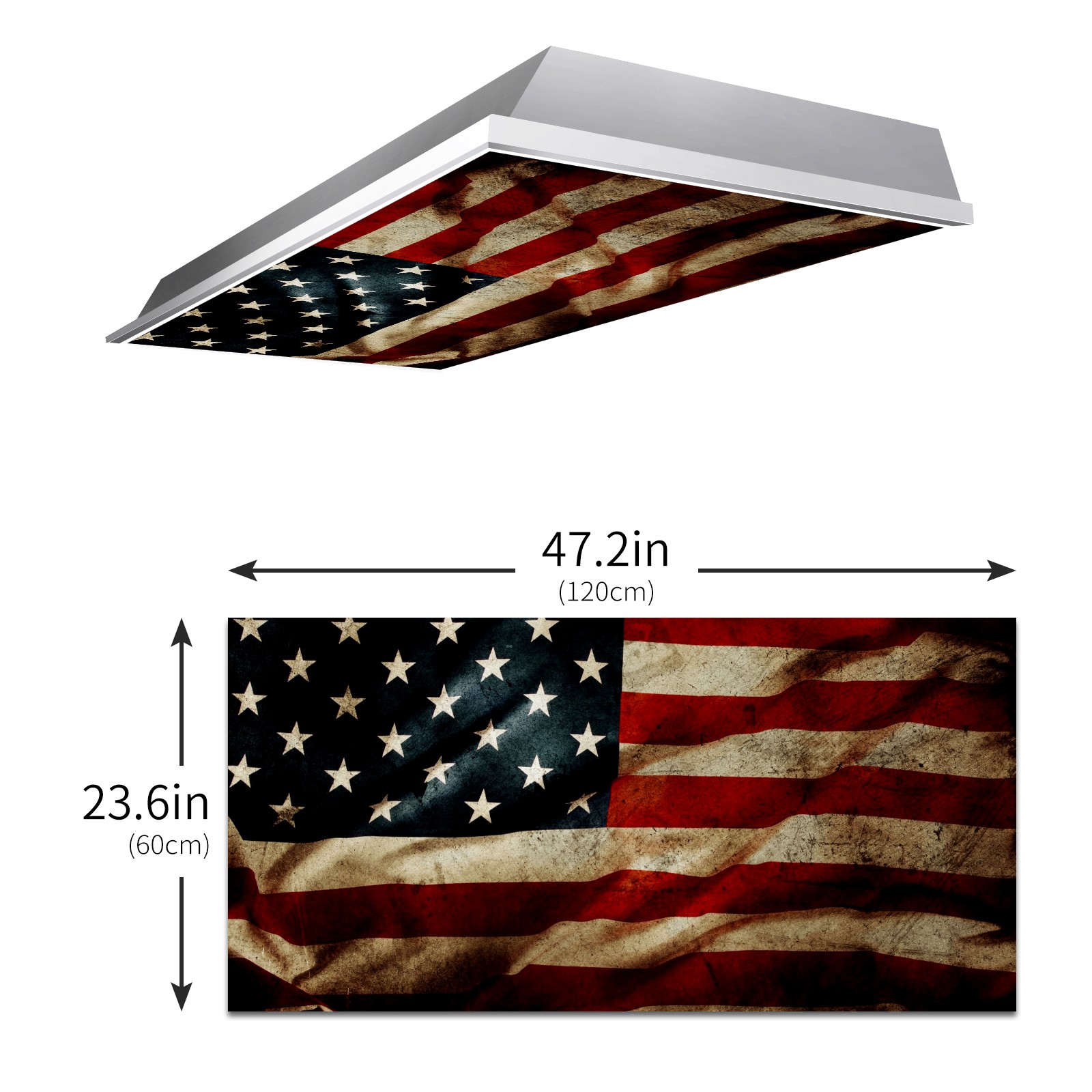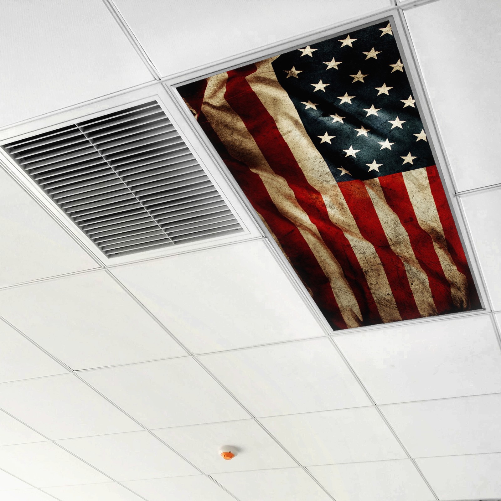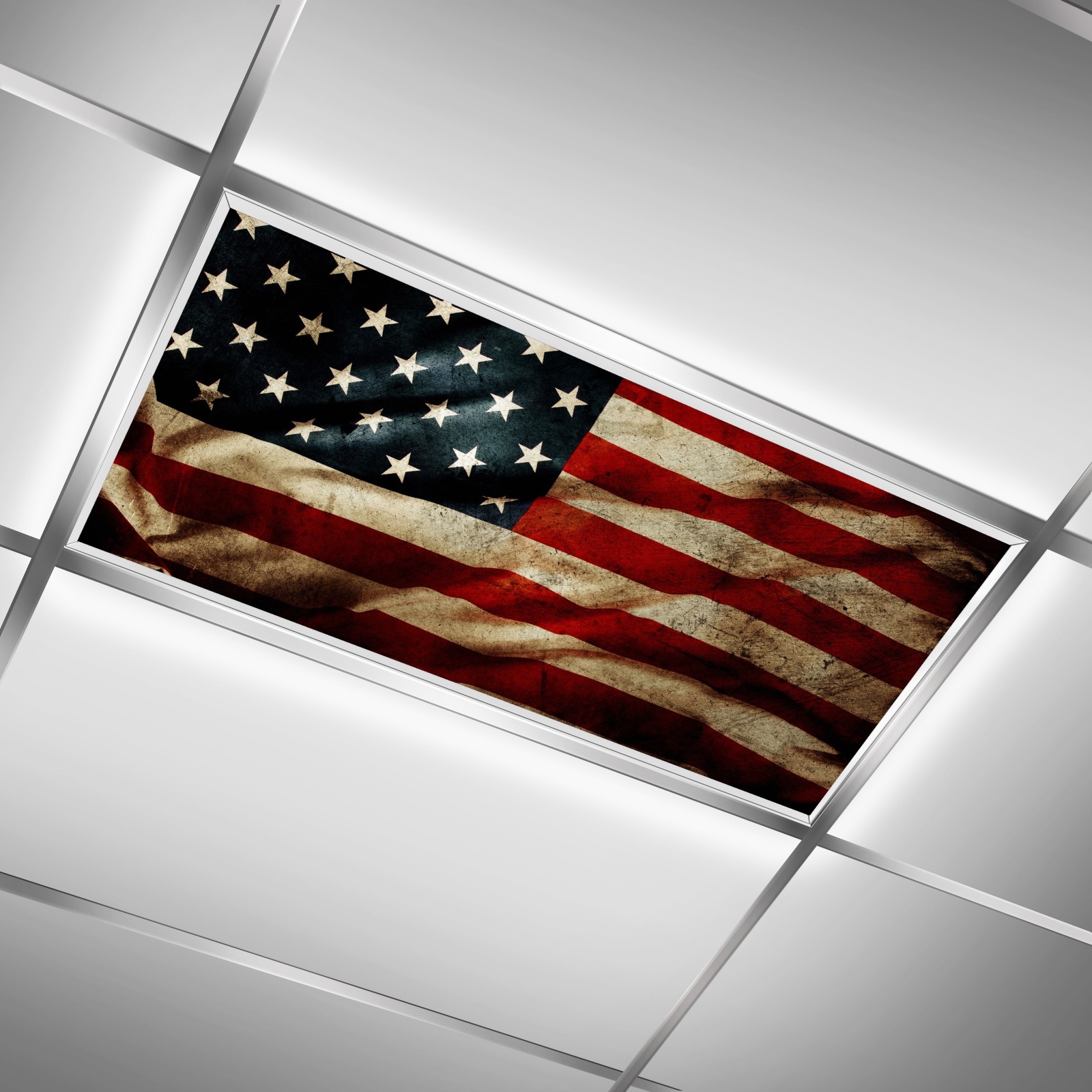 2 Pack American Flag Retro GrungeLights Fluorescent Light Covers for Classroom Office 2x4ft Celling Fluorescent Decorative Eliminate Harsh Glare,Classroom Decorations