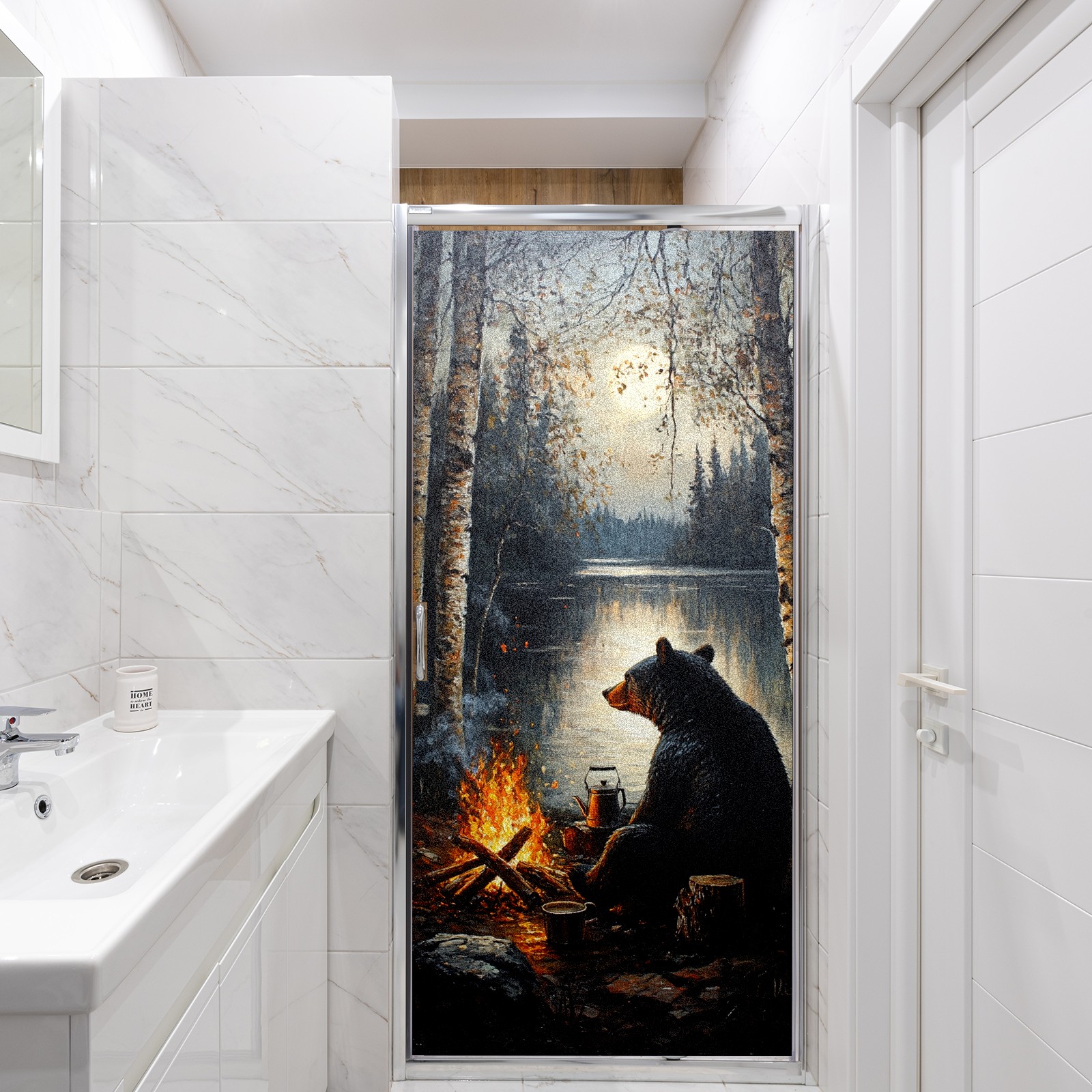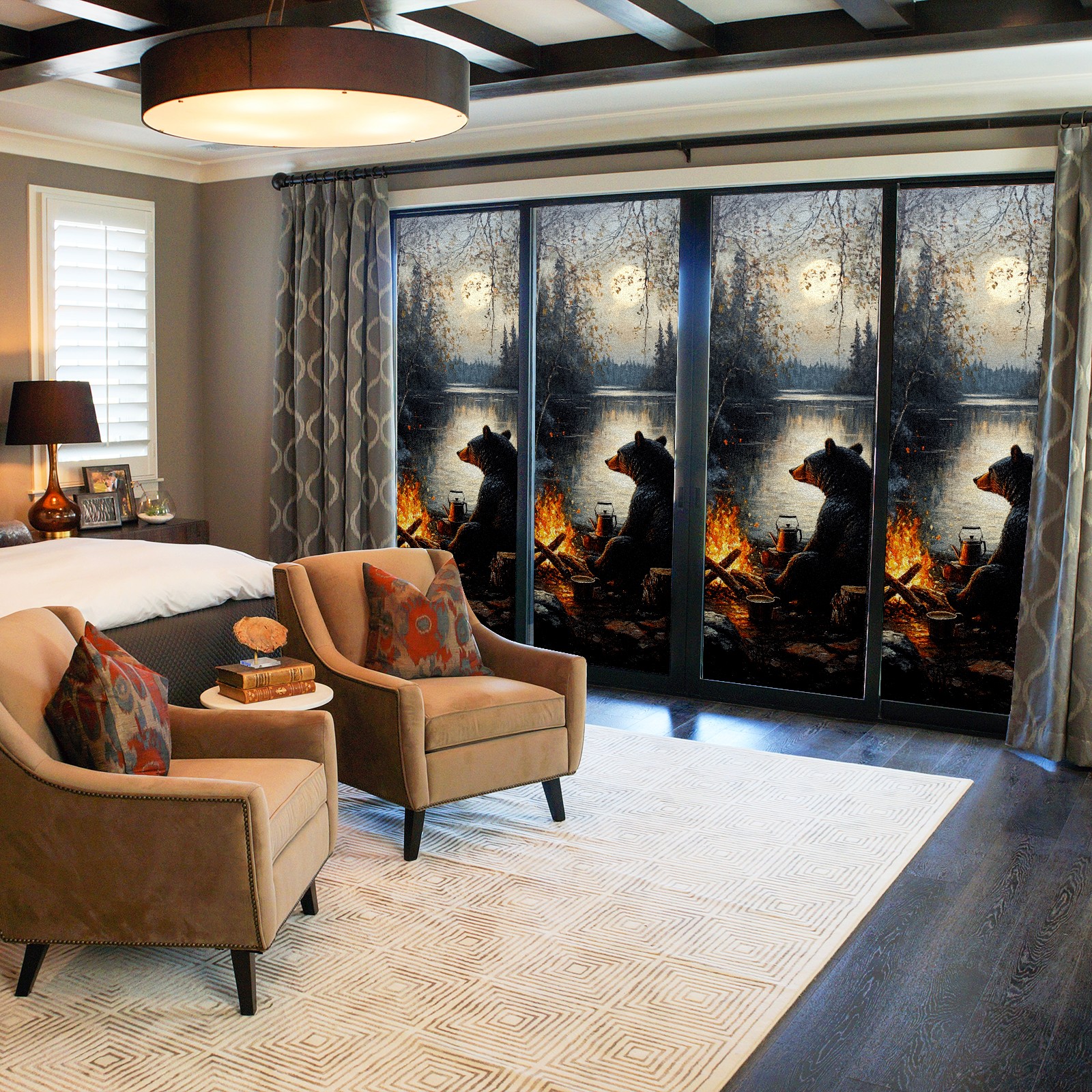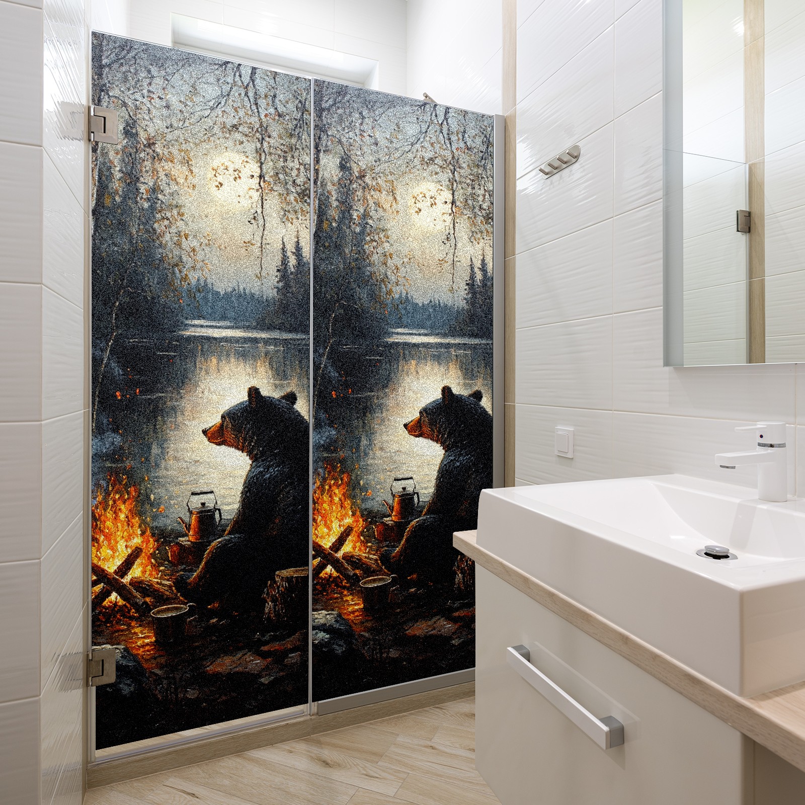 MSINMKOK Window Privacy Film Black Bear Decorative Frosted Glass Window Film for Glass Door Bathroom Window 17.7'' x 23.6'' Non-Adhesive Window Decals Stickers