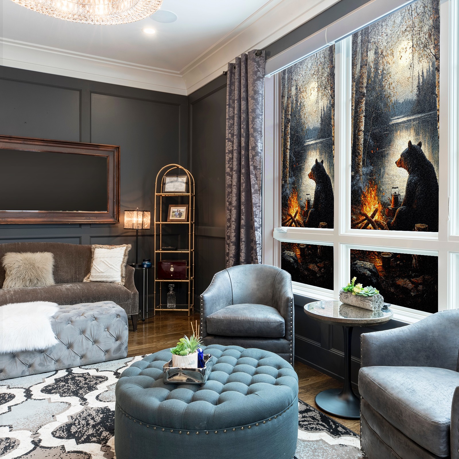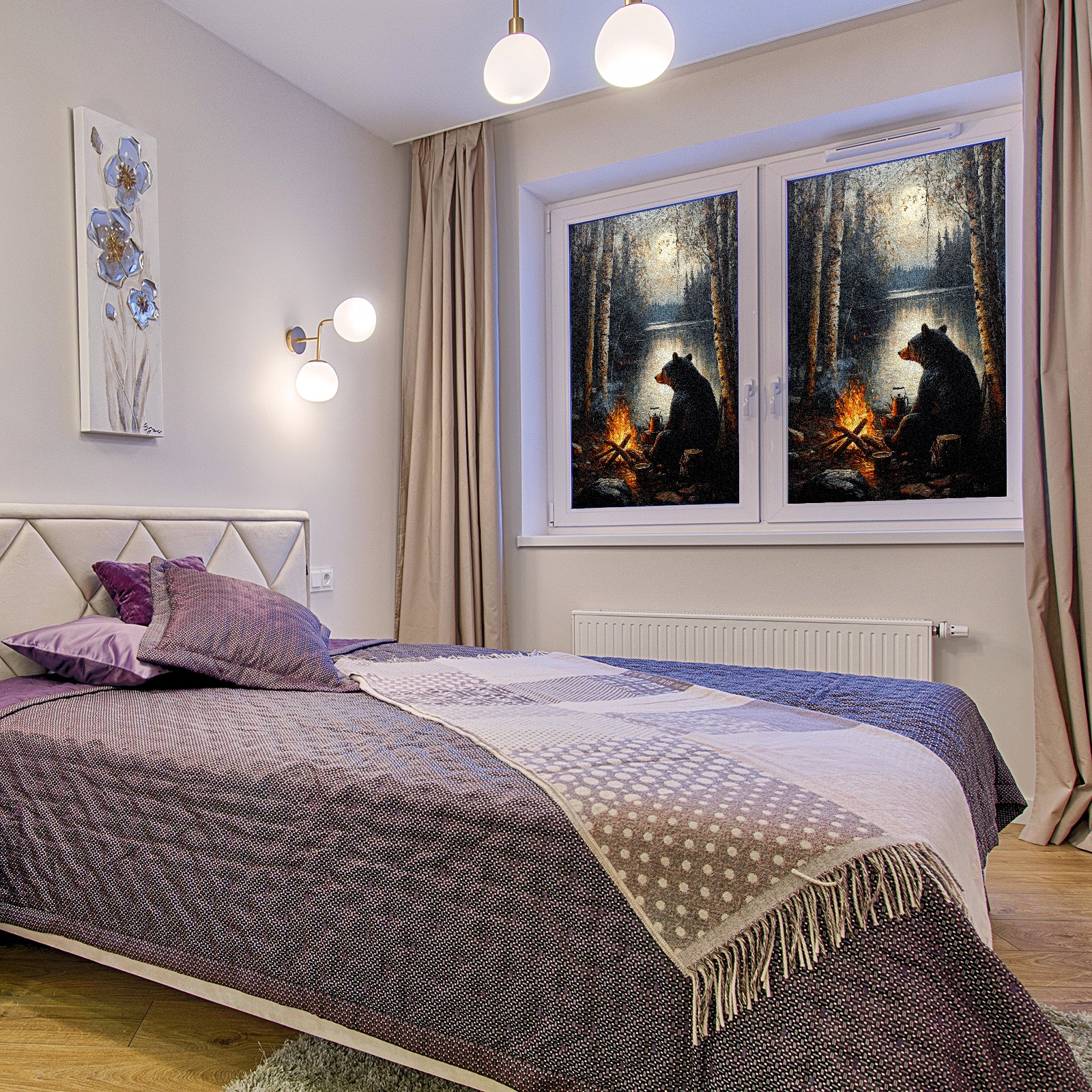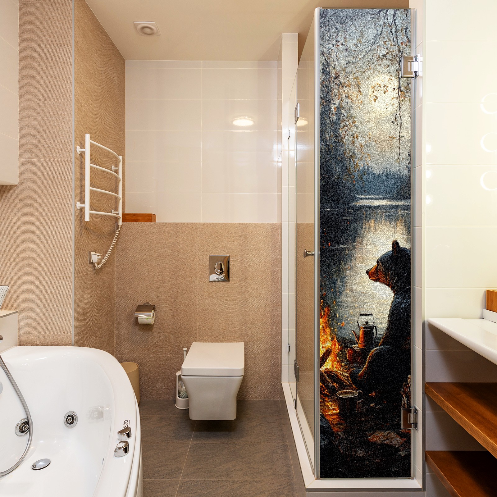 MSINMKOK Window Privacy Film Black Bear Decorative Frosted Glass Window Film for Glass Door Bathroom Window 17.7'' x 23.6'' Non-Adhesive Window Decals Stickers