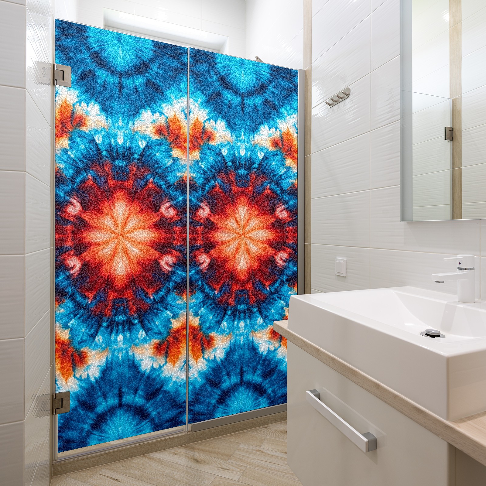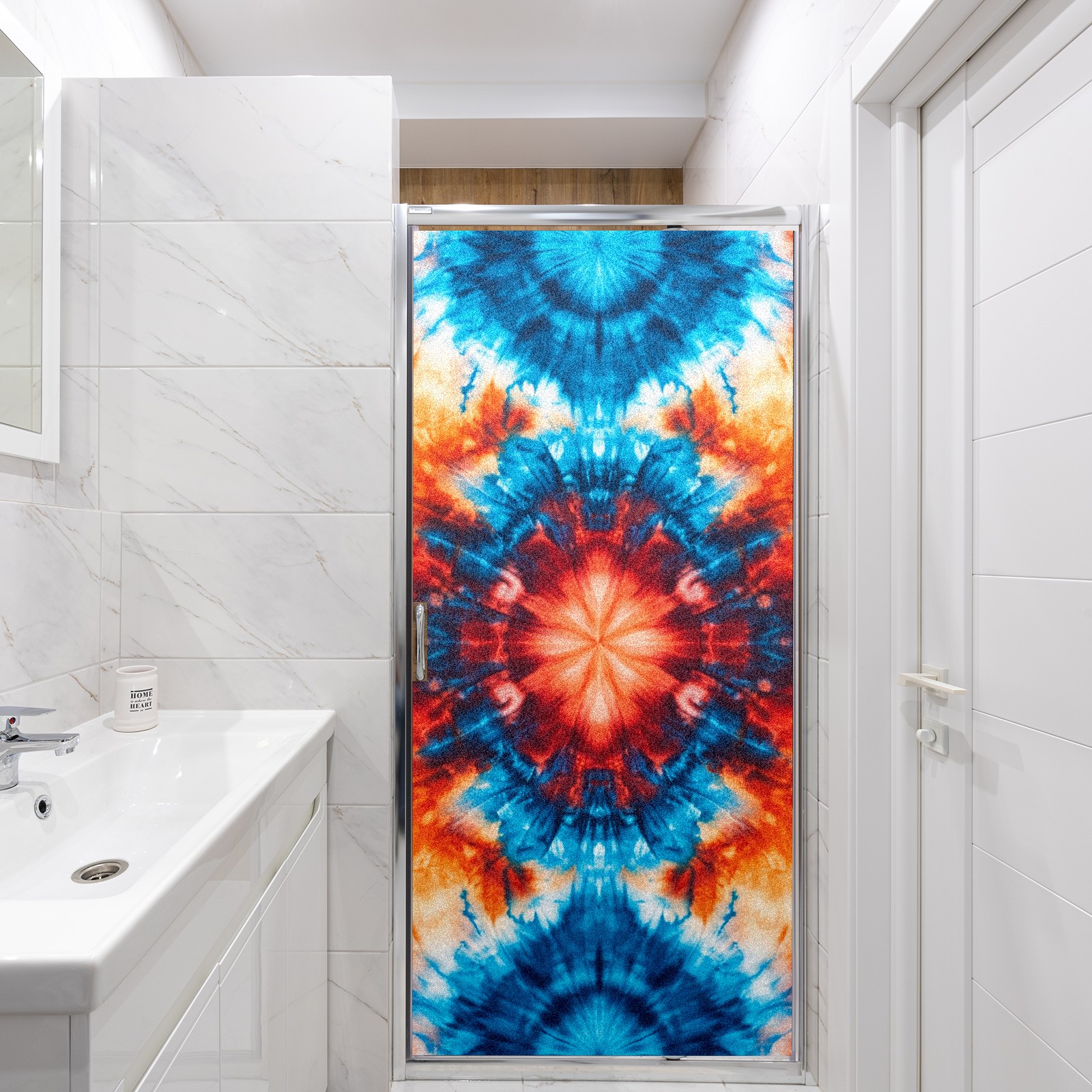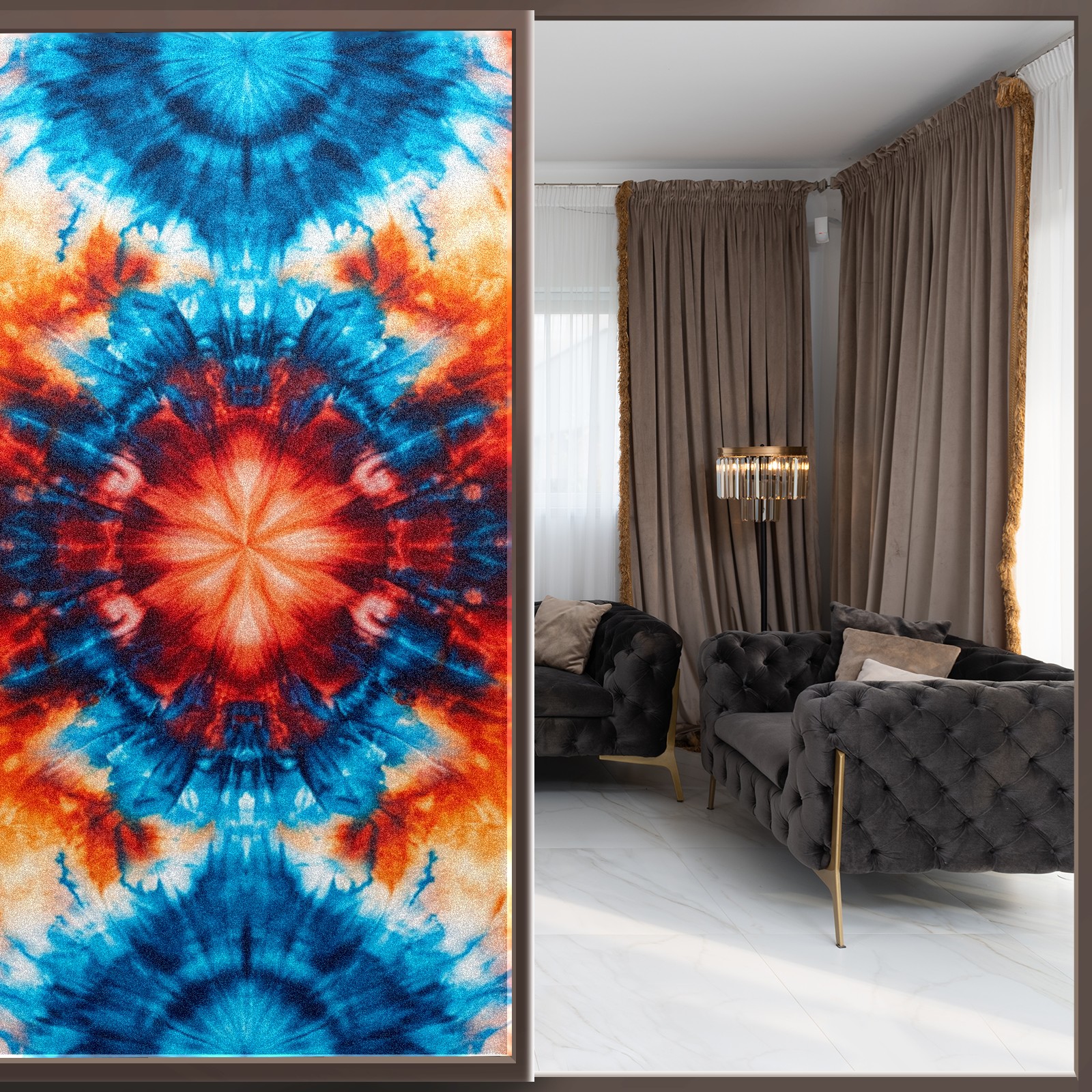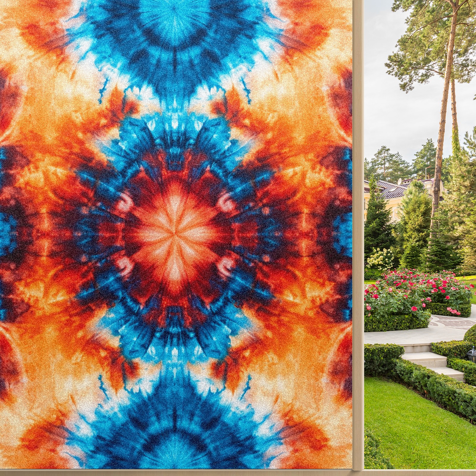 MSINMKOK Window Privacy Film Tie Dye Blue Orange Decorative Frosted Glass Window Film for Glass Door Bathroom Window 17.7'' x 23.6'' Non-Adhesive Window Decals Stickers