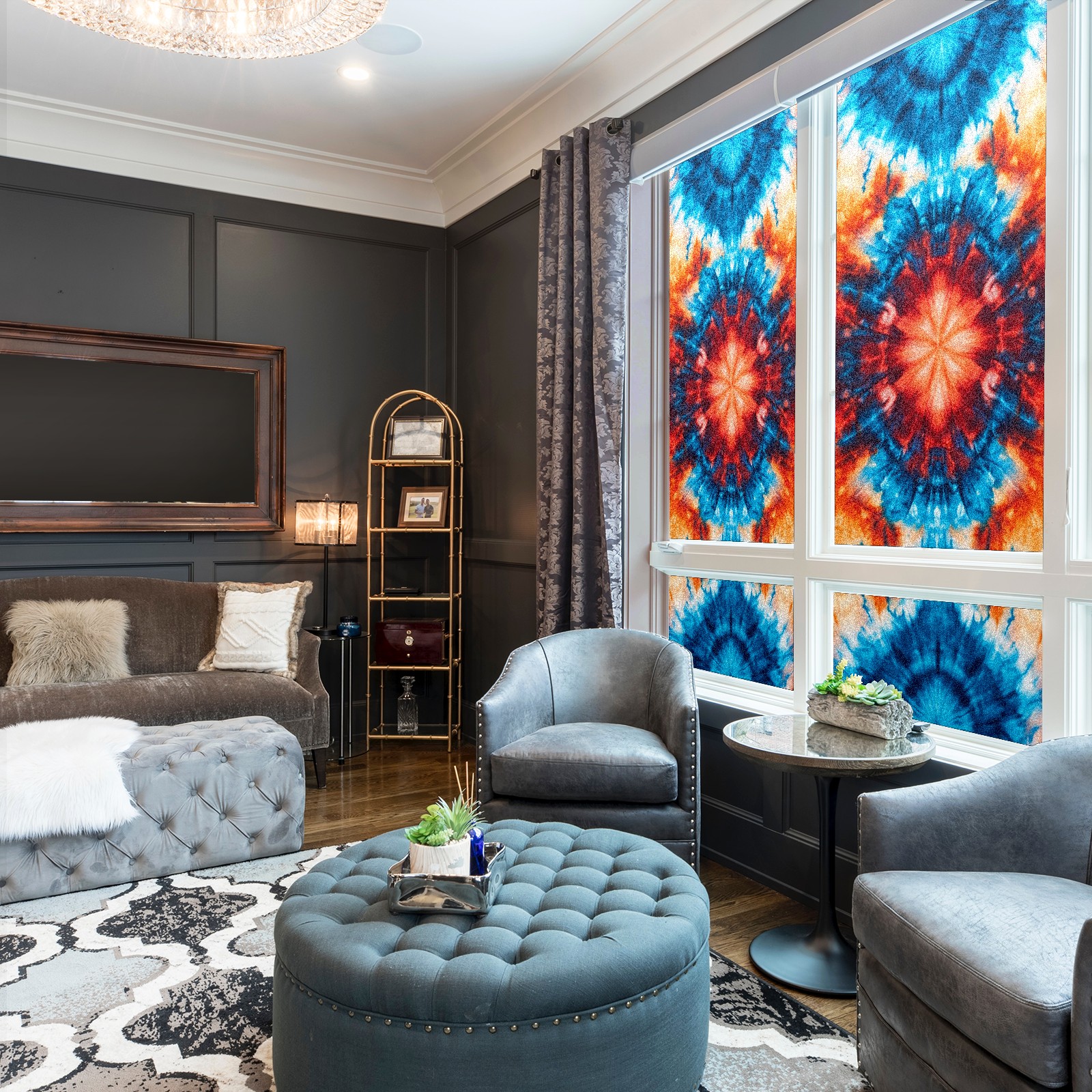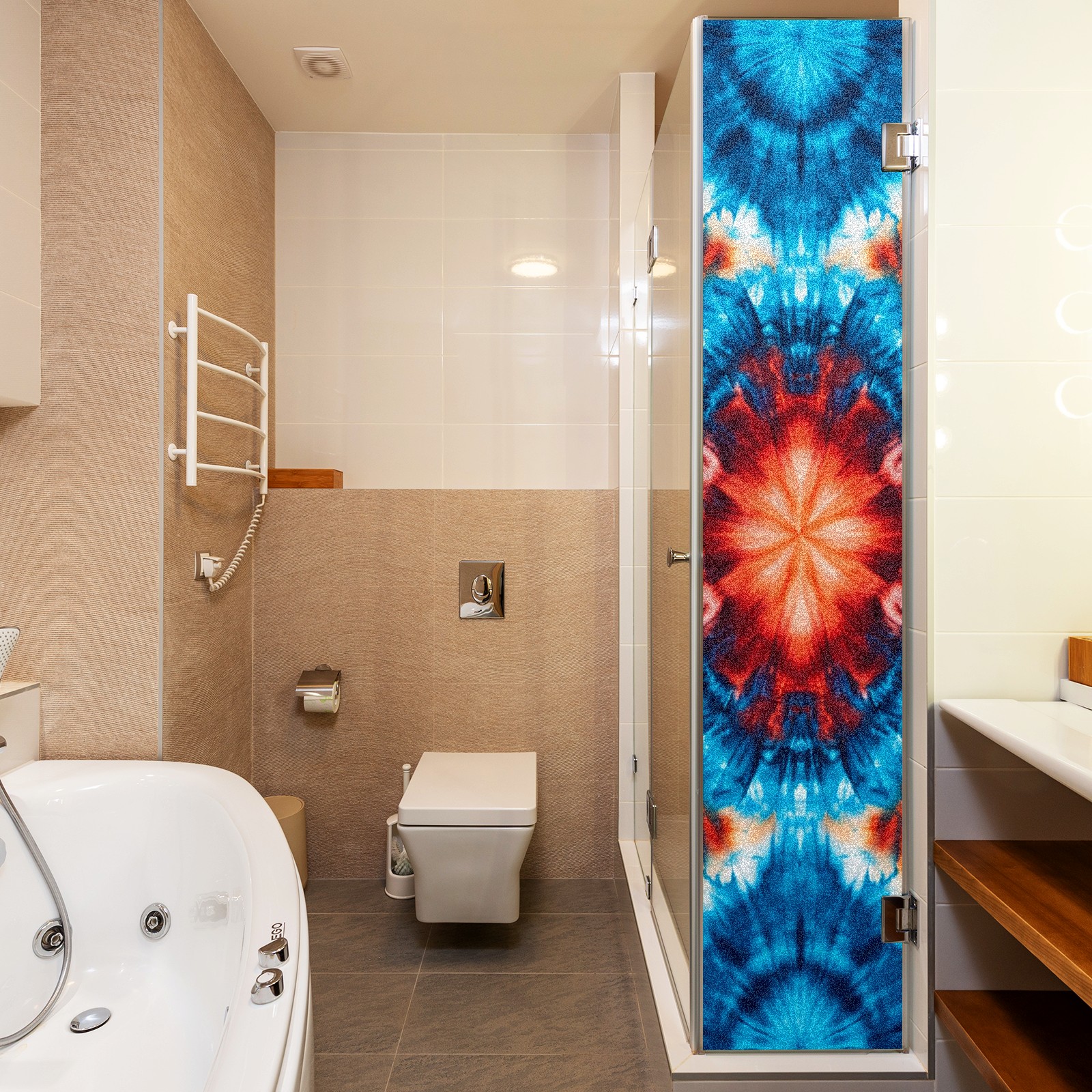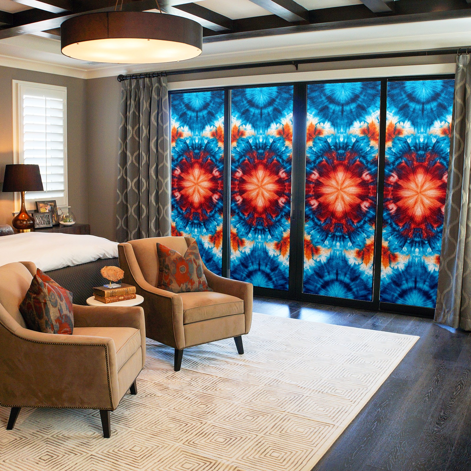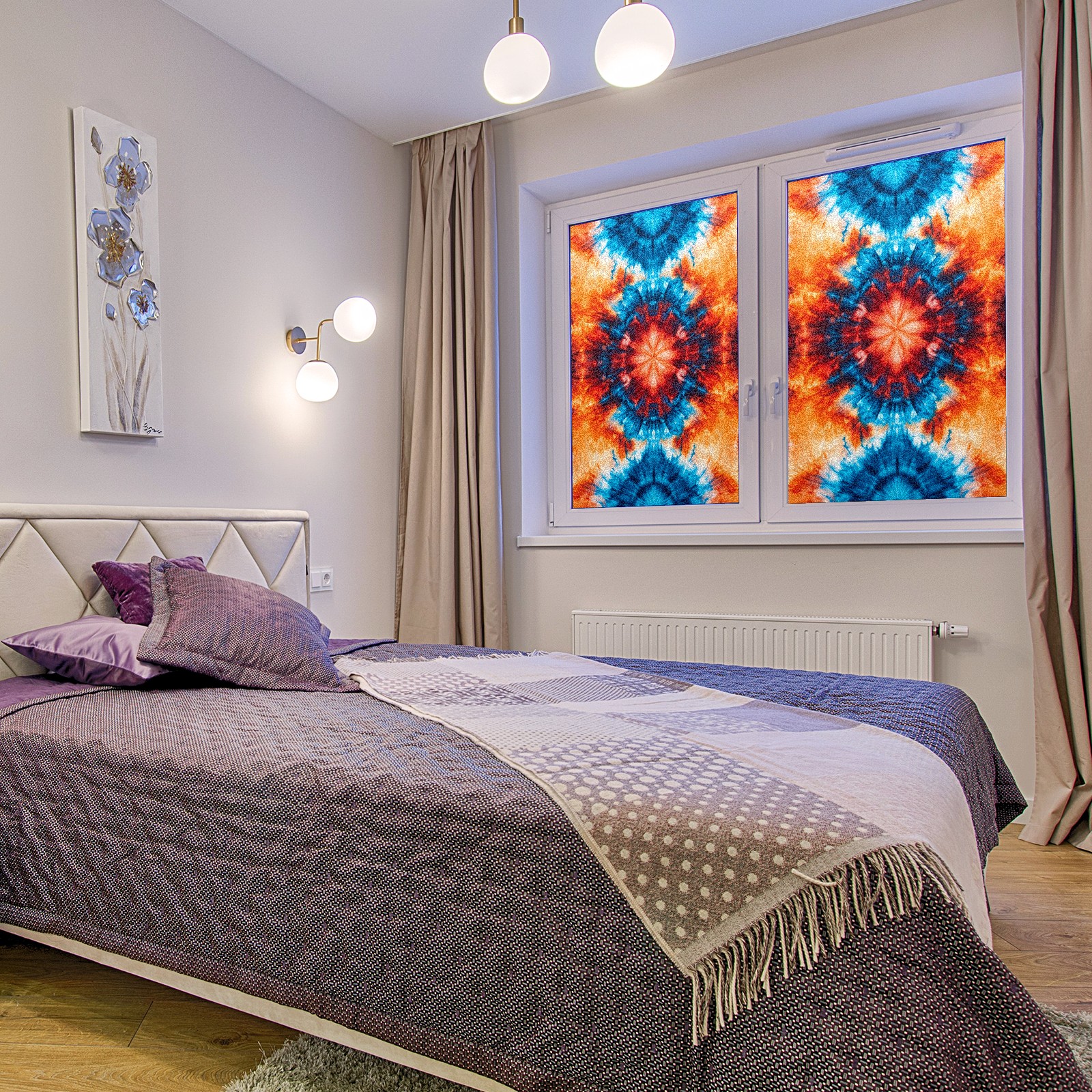 MSINMKOK Window Privacy Film Tie Dye Blue Orange Decorative Frosted Glass Window Film for Glass Door Bathroom Window 17.7'' x 23.6'' Non-Adhesive Window Decals Stickers