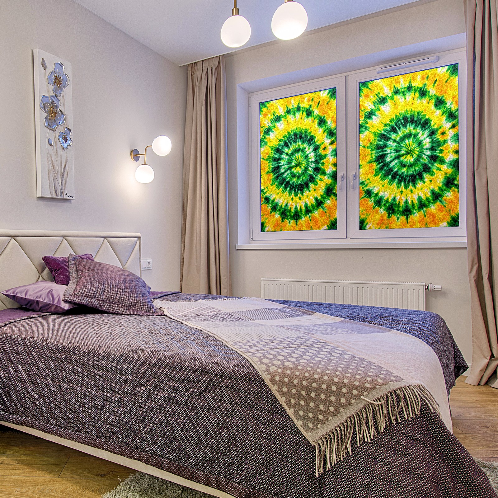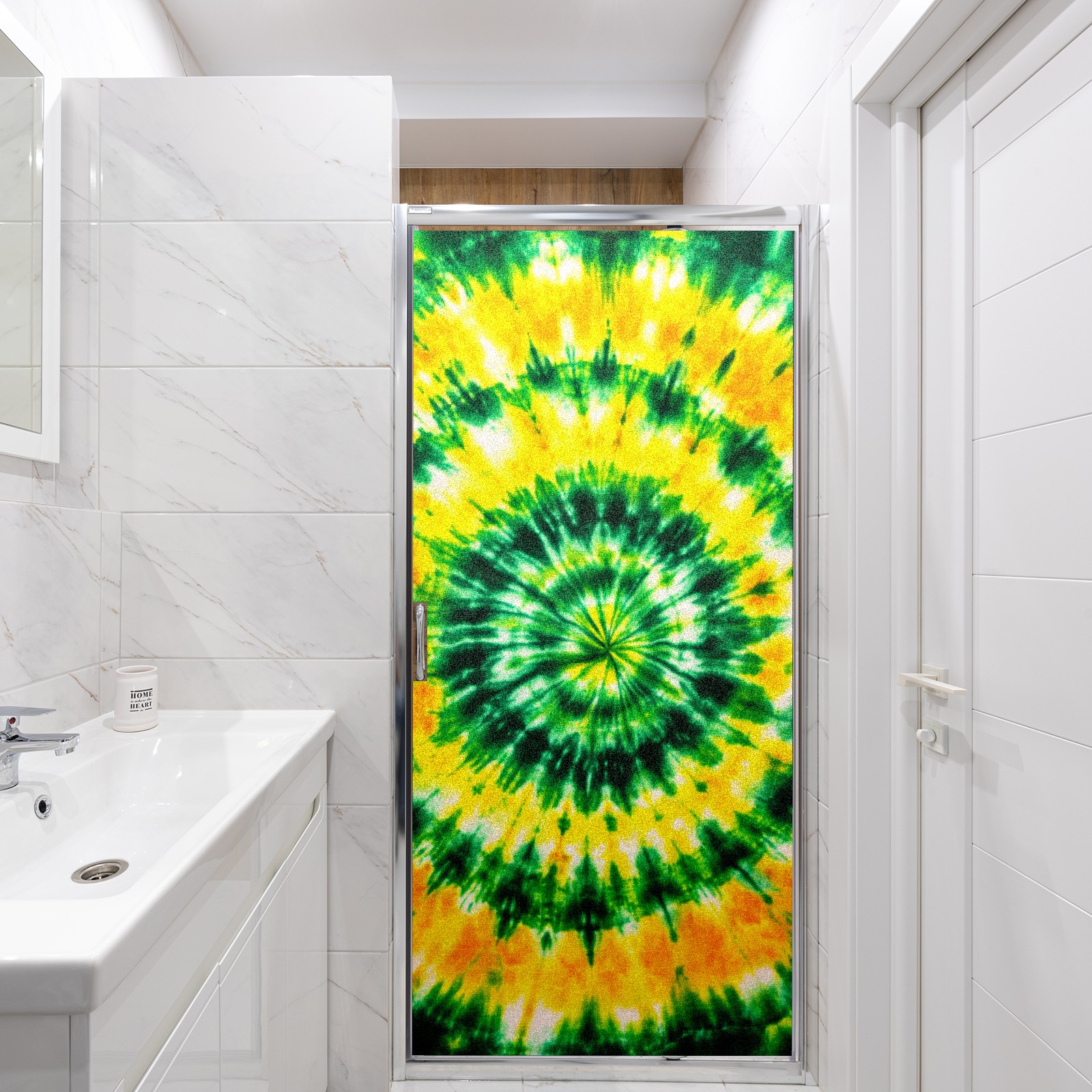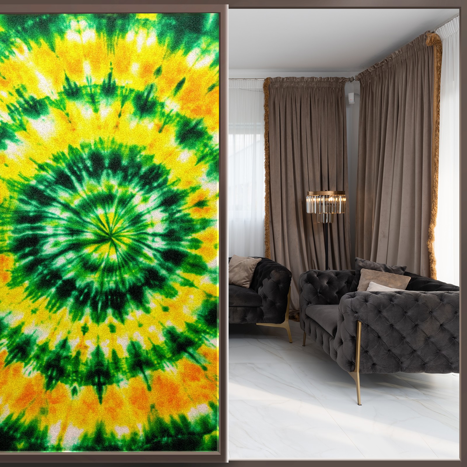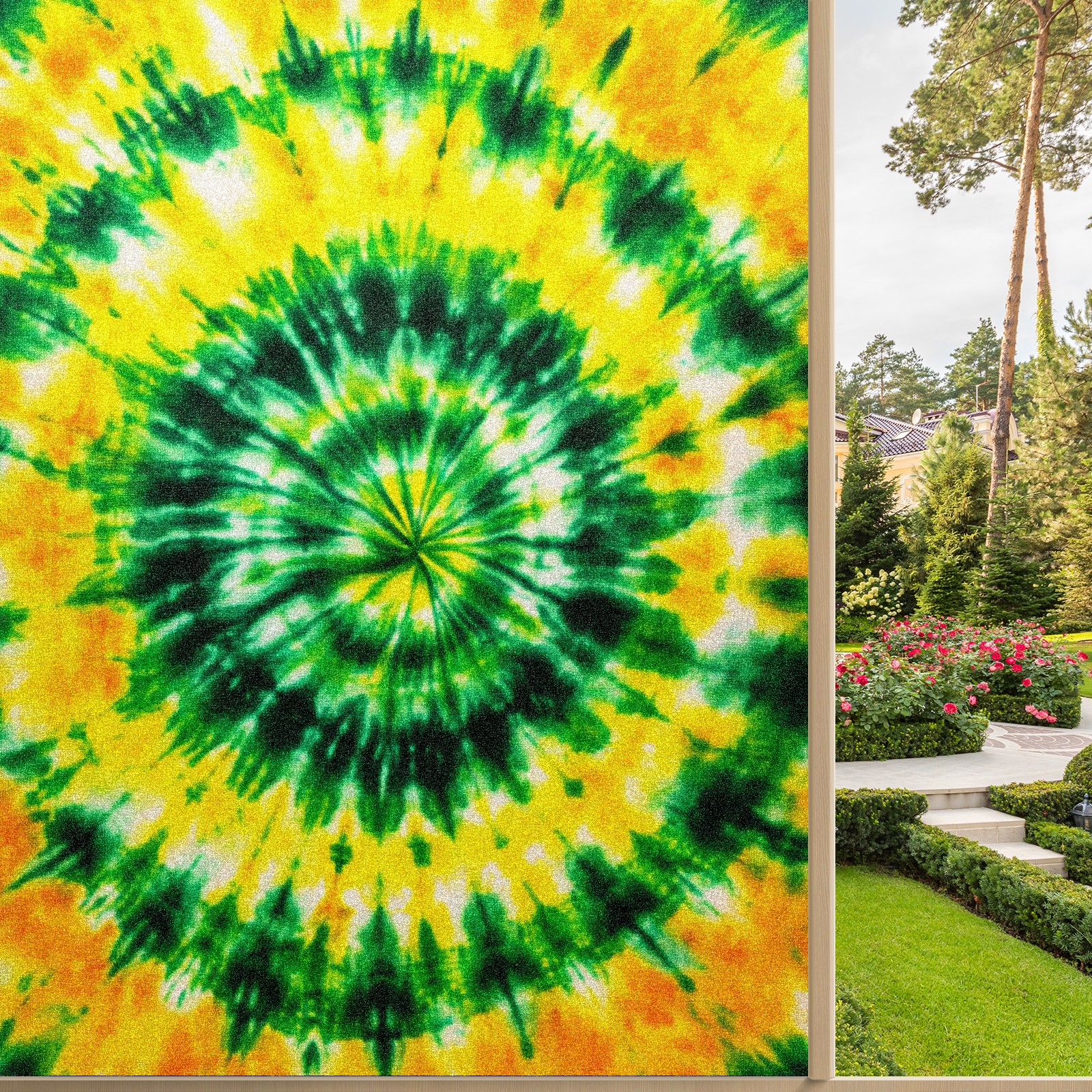 MSINMKOK Window Privacy Film Yellow Green Tie Dye Decorative Frosted Glass Window Film for Glass Door Bathroom Window 17.7'' x 23.6'' Non-Adhesive Window Decals Stickers