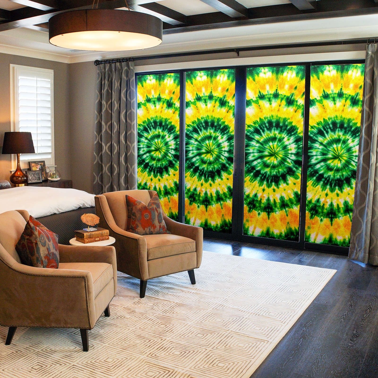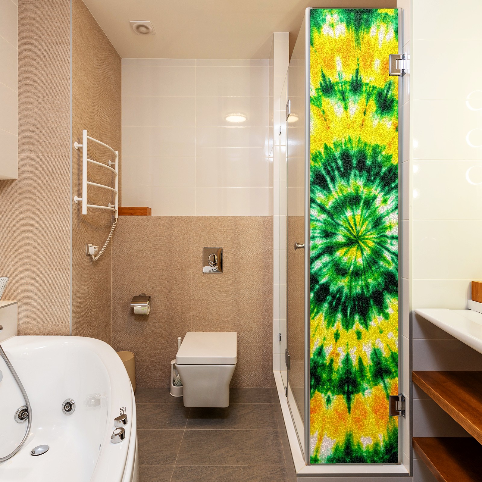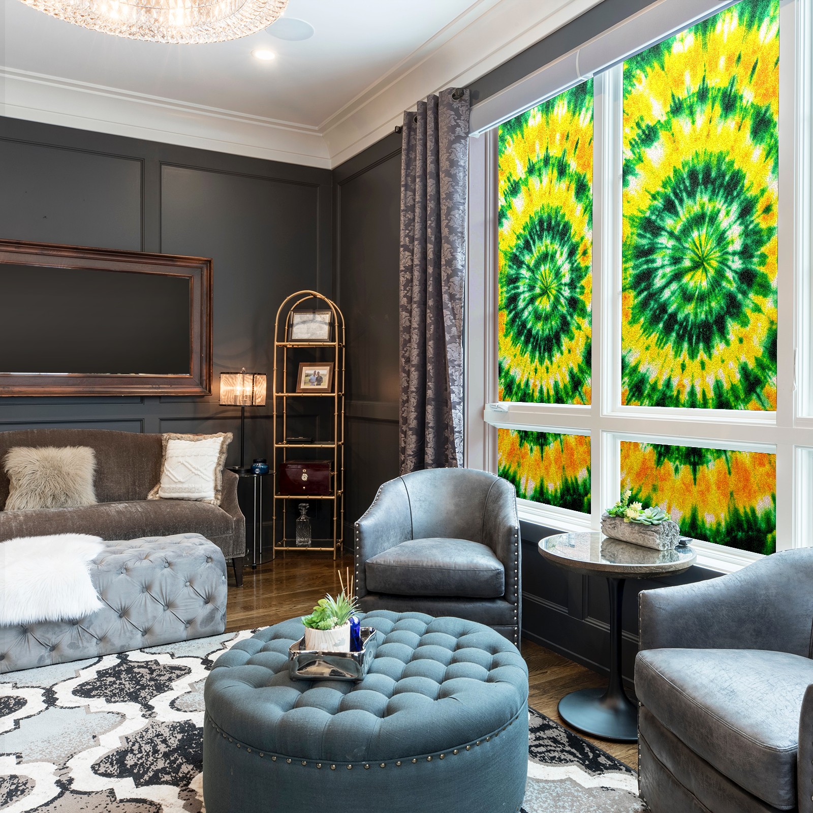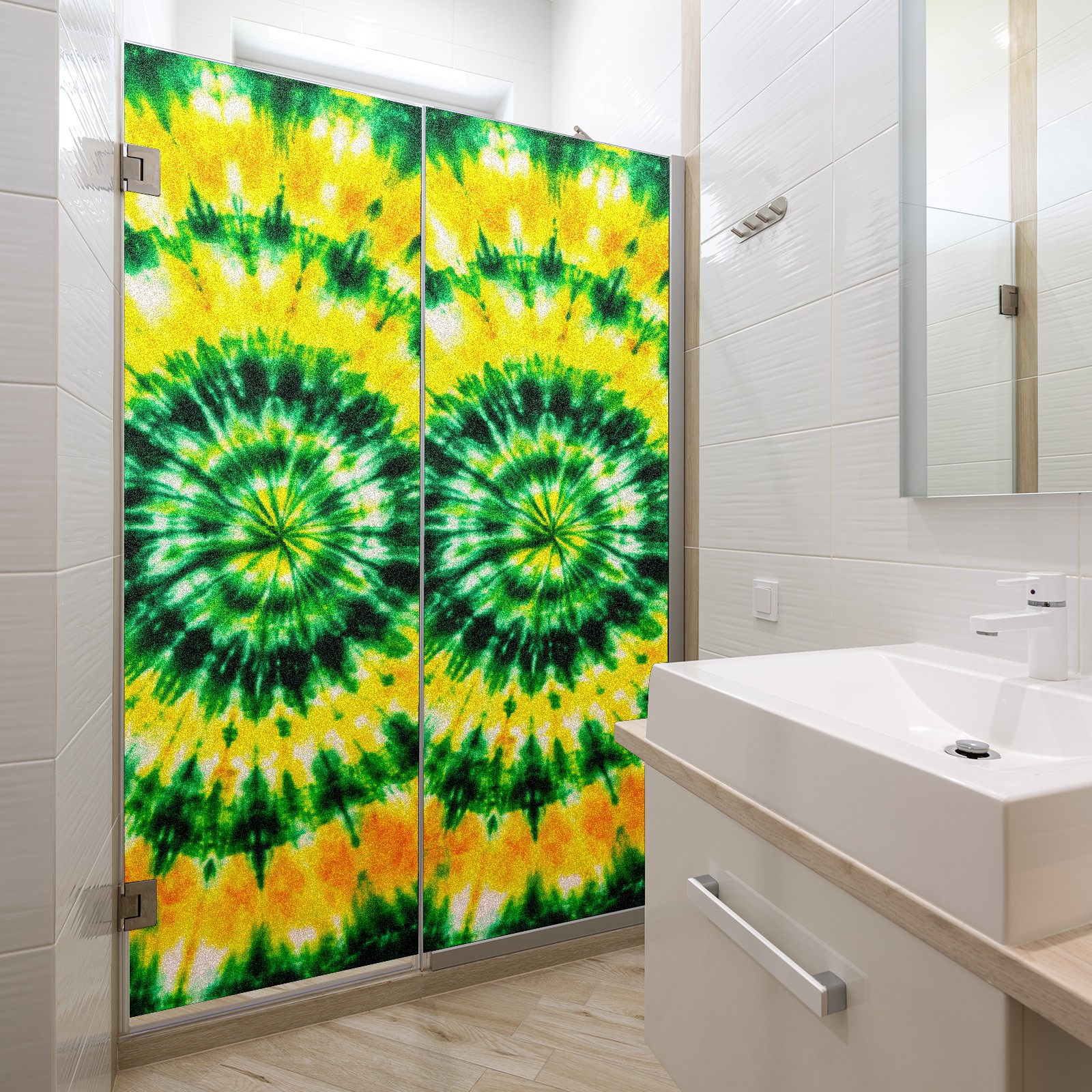 MSINMKOK Window Privacy Film Yellow Green Tie Dye Decorative Frosted Glass Window Film for Glass Door Bathroom Window 17.7'' x 23.6'' Non-Adhesive Window Decals Stickers