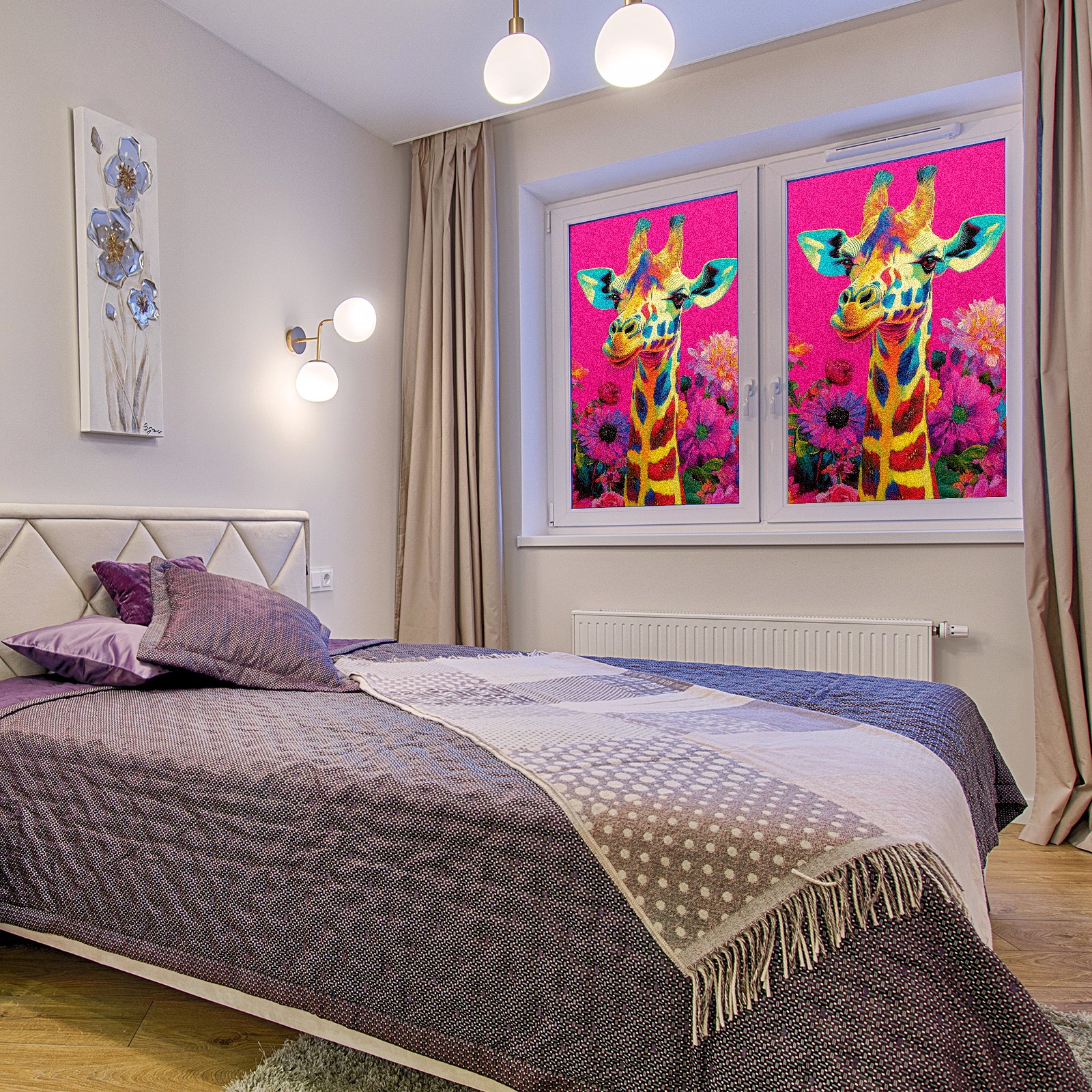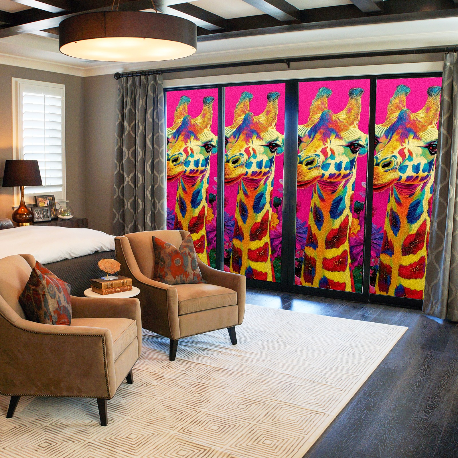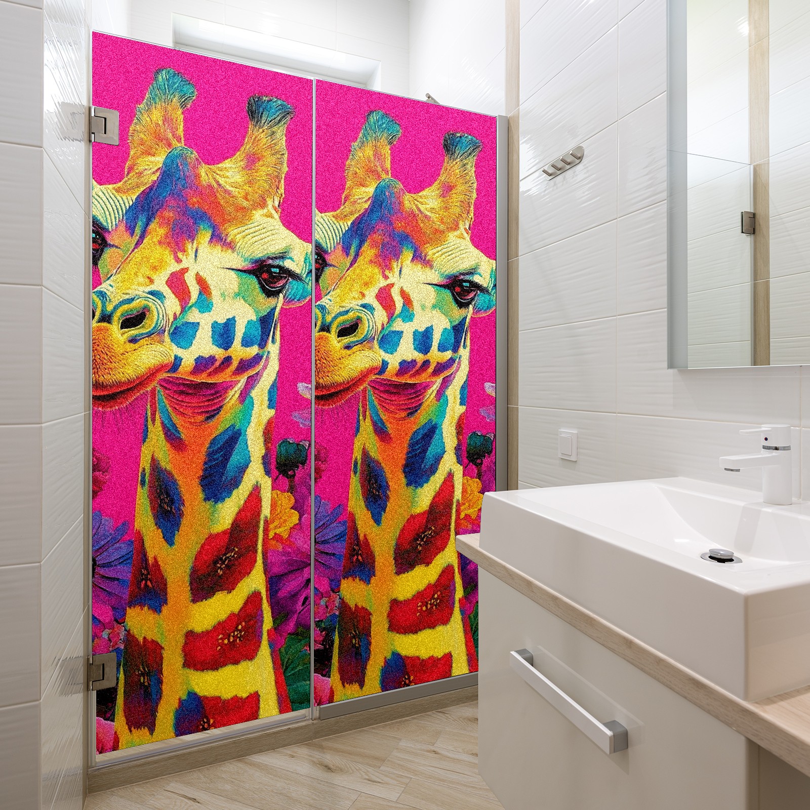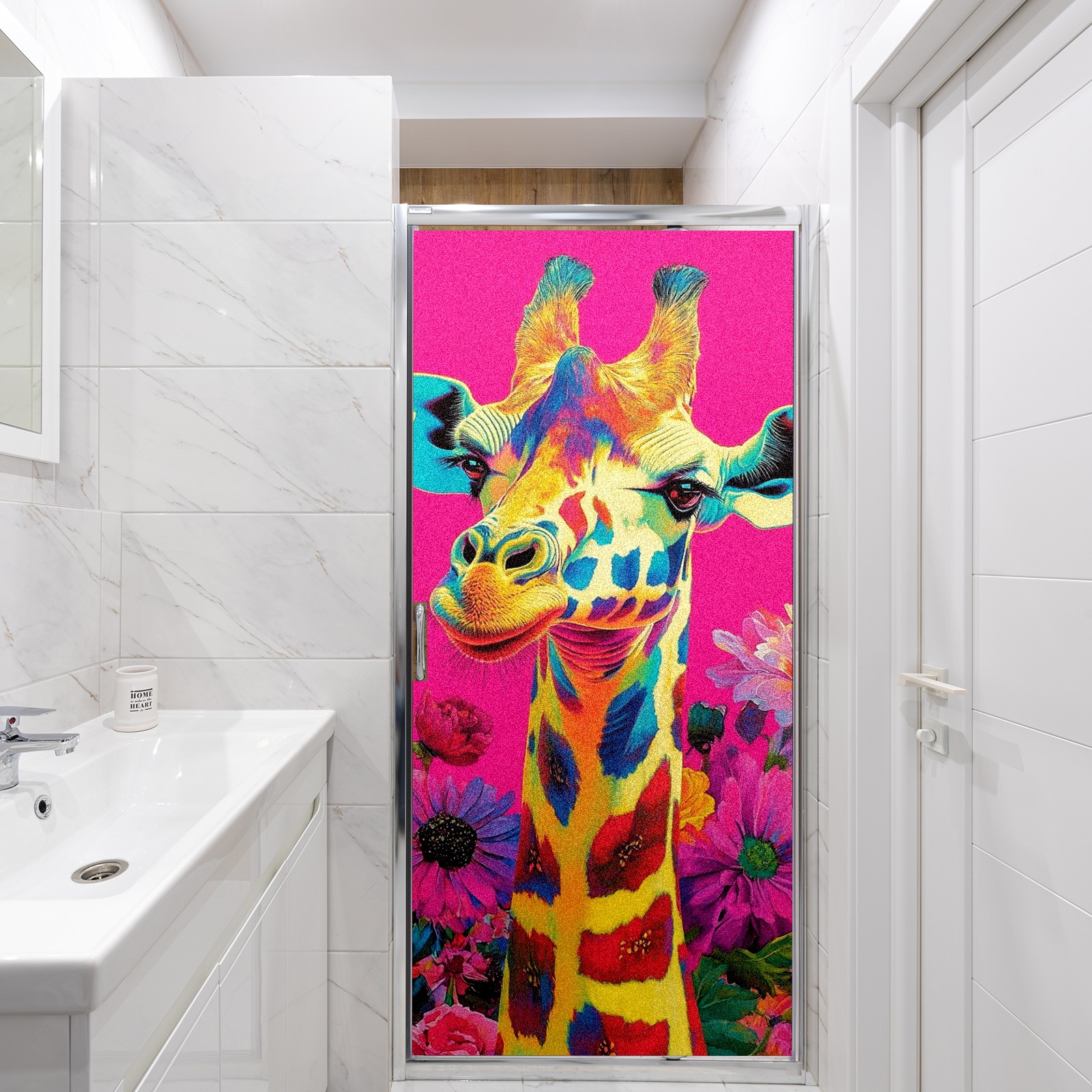 MSINMKOK Window Privacy Film Colorful Giraffe Flowers Decorative Frosted Glass Window Film for Glass Door Bathroom Window 17.7'' x 23.6'' Non-Adhesive Window Decals Stickers