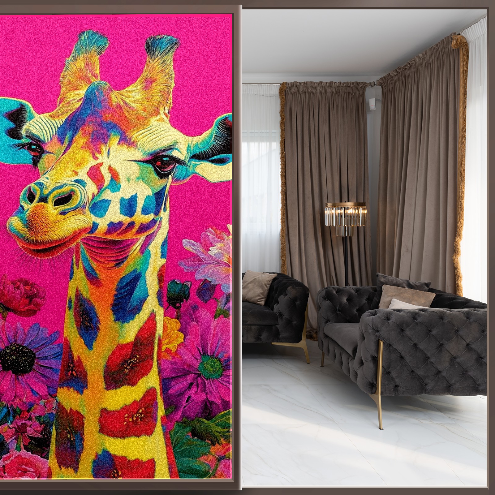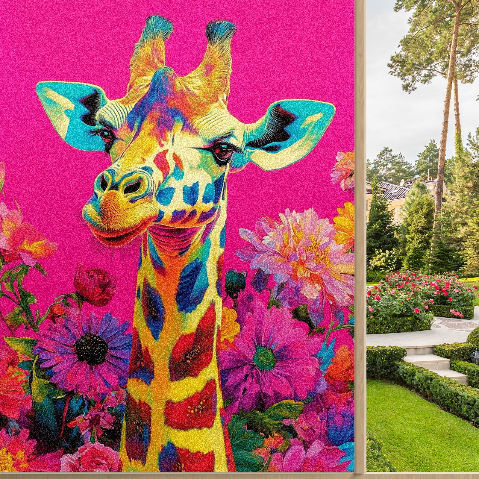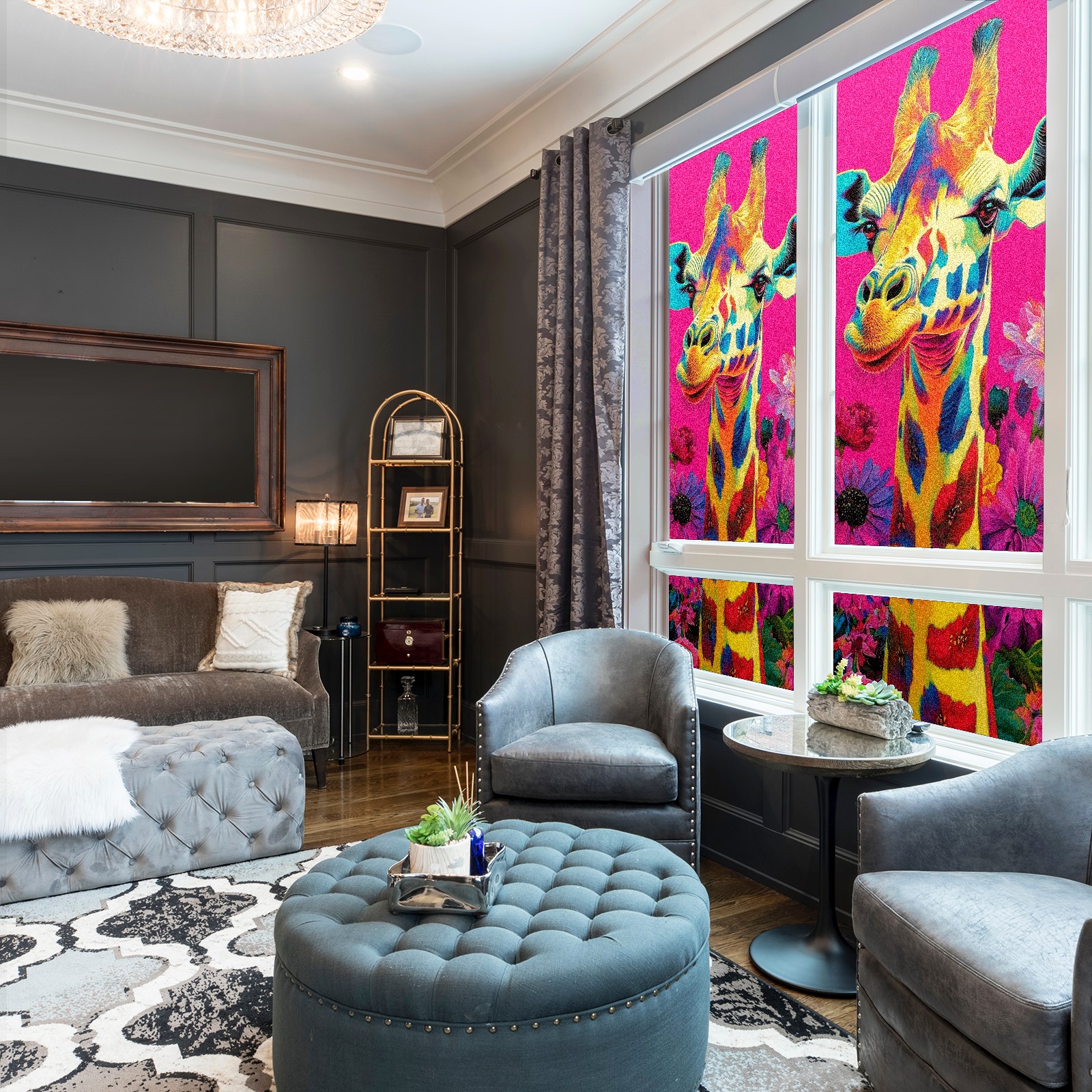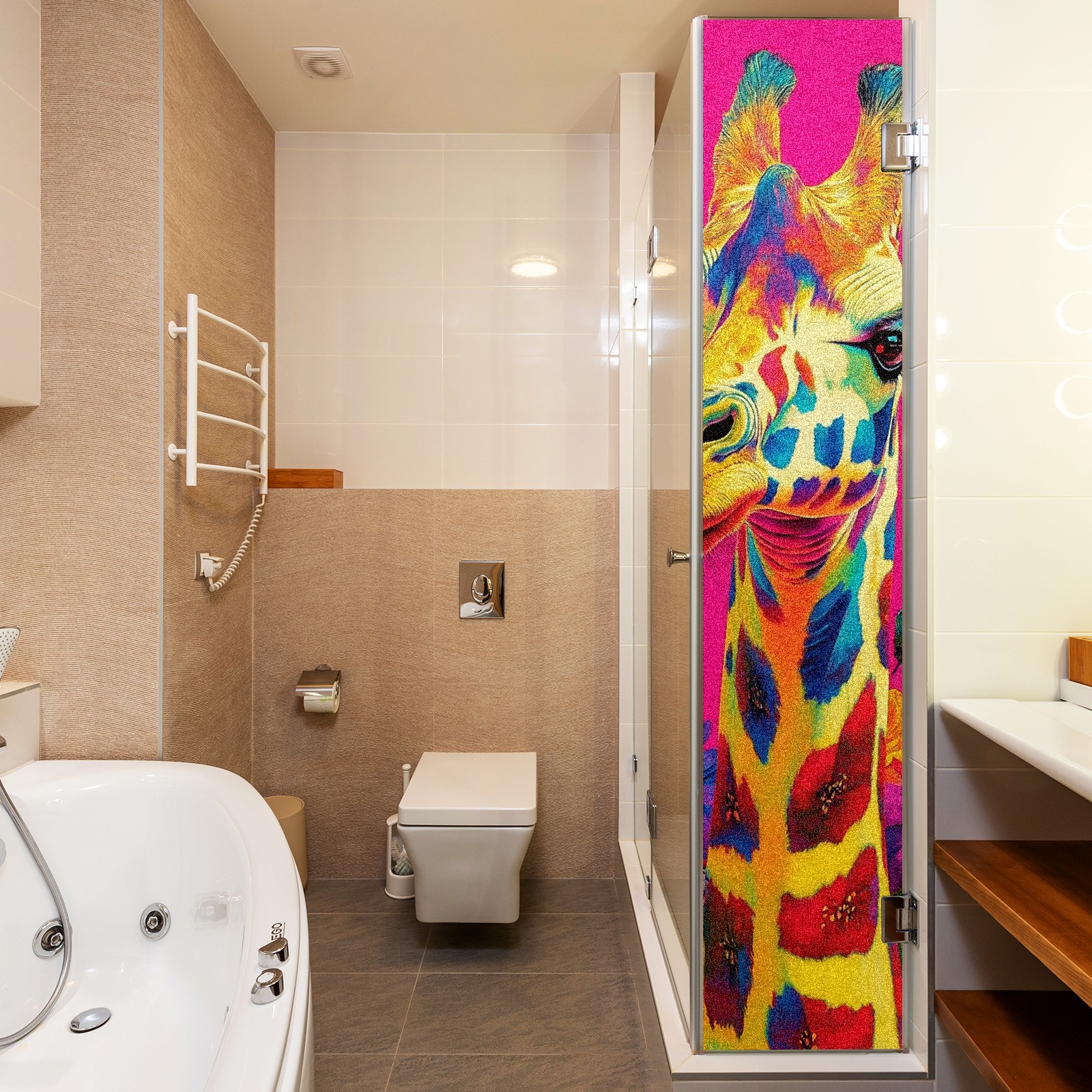 MSINMKOK Window Privacy Film Colorful Giraffe Flowers Decorative Frosted Glass Window Film for Glass Door Bathroom Window 17.7'' x 23.6'' Non-Adhesive Window Decals Stickers