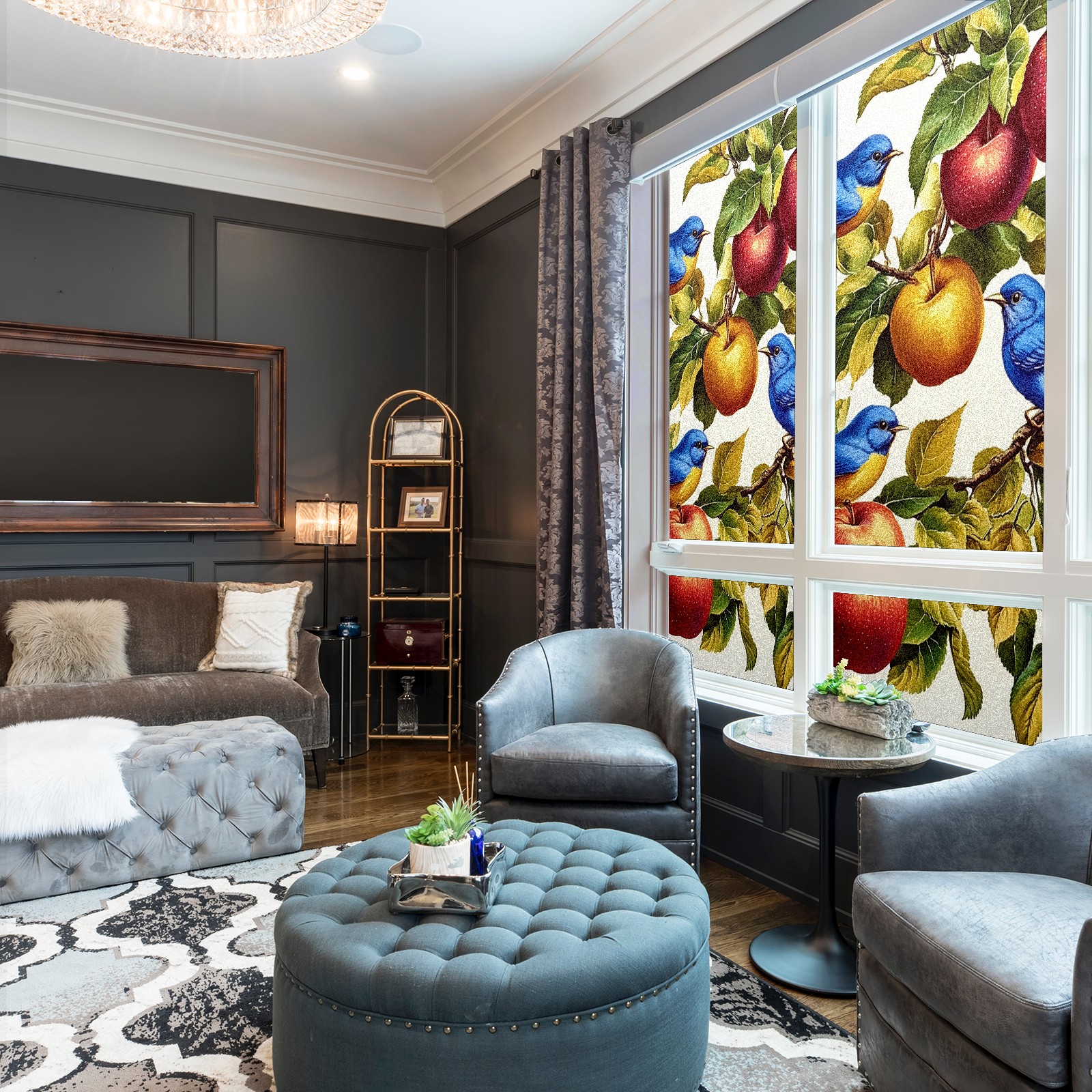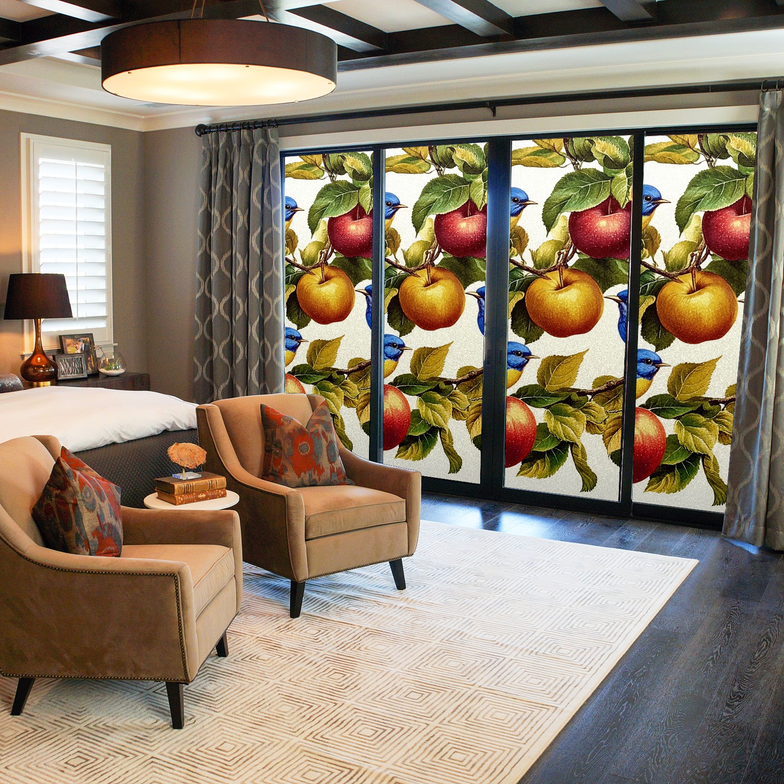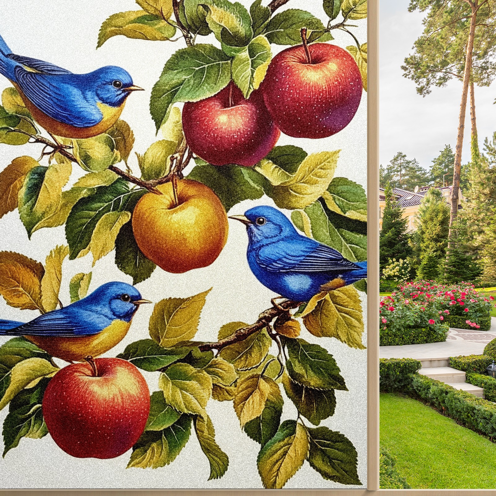MSINMKOK Window Privacy Film Vintage Bluebirds Decorative Frosted Glass Window Film for Glass Door Bathroom Window 17.7'' x 23.6'' Non-Adhesive Window Decals Stickers