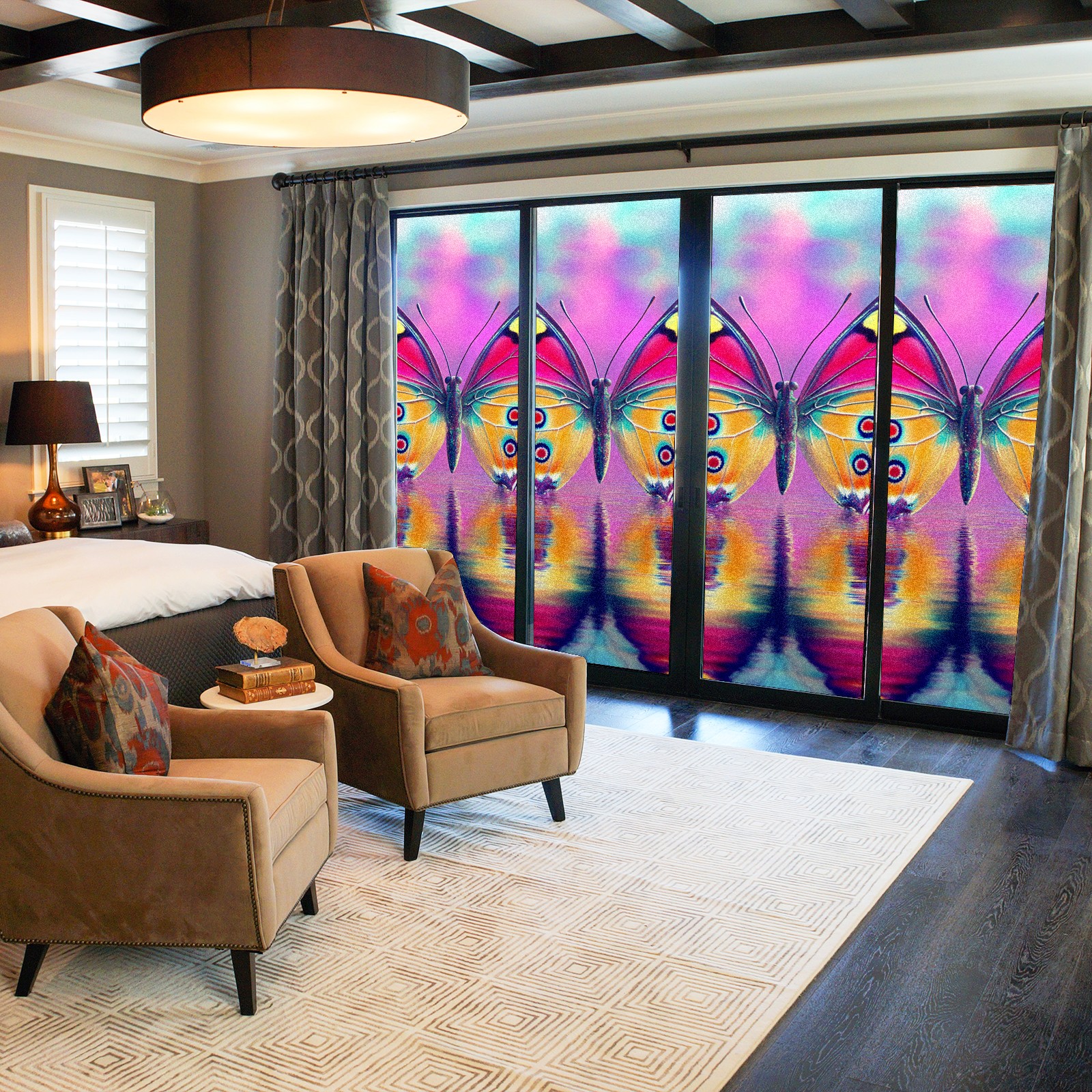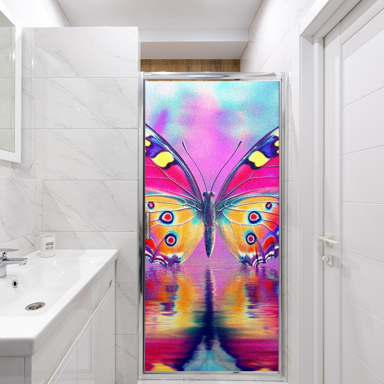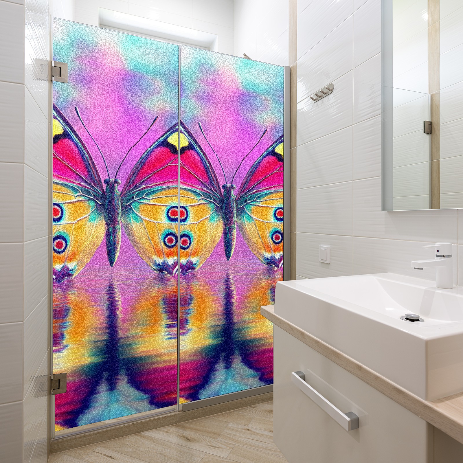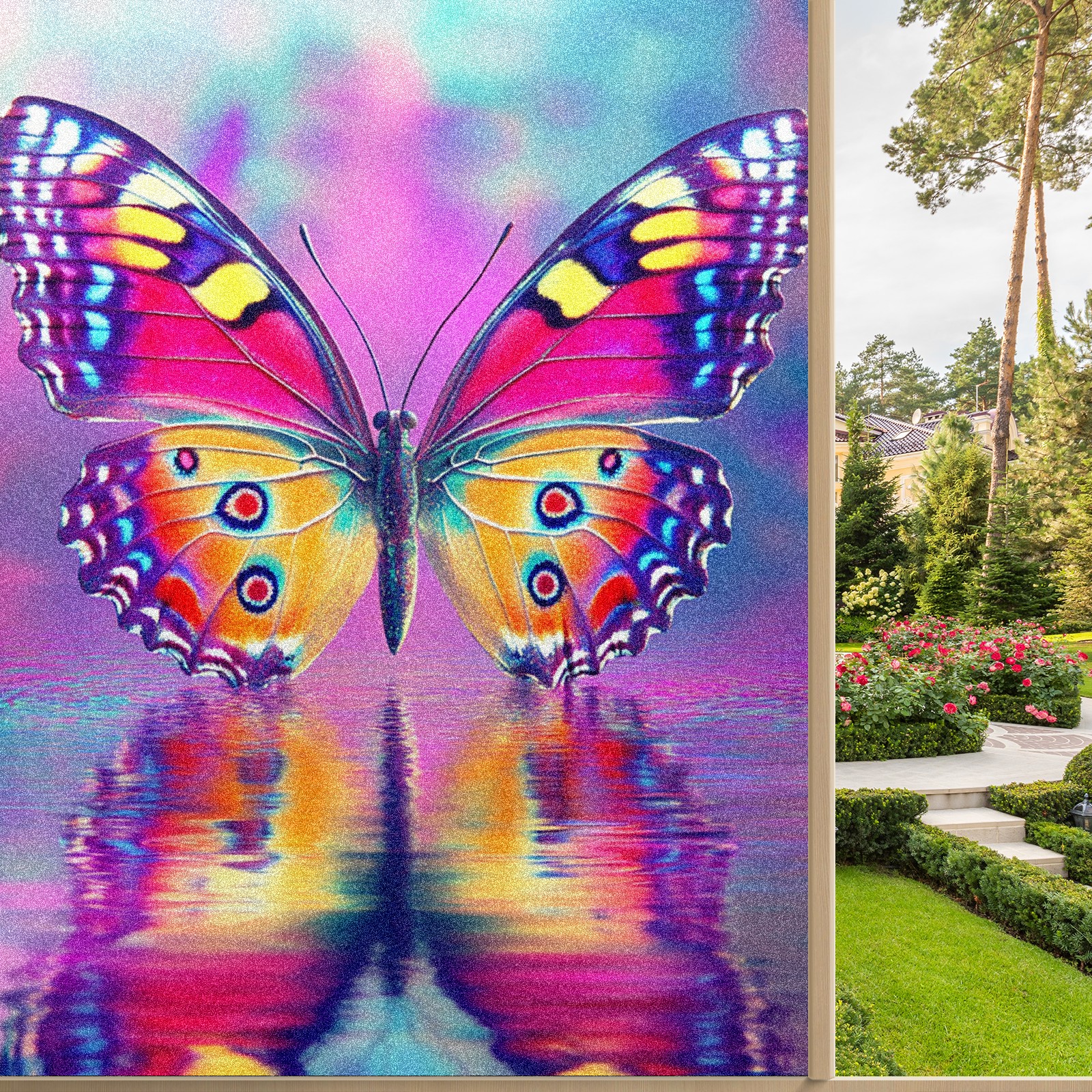 MSINMKOK Window Privacy Film Pink Butterfly Reflection Decorative Frosted Glass Window Film for Glass Door Bathroom Window 17.7'' x 23.6'' Non-Adhesive Window Decals Stickers