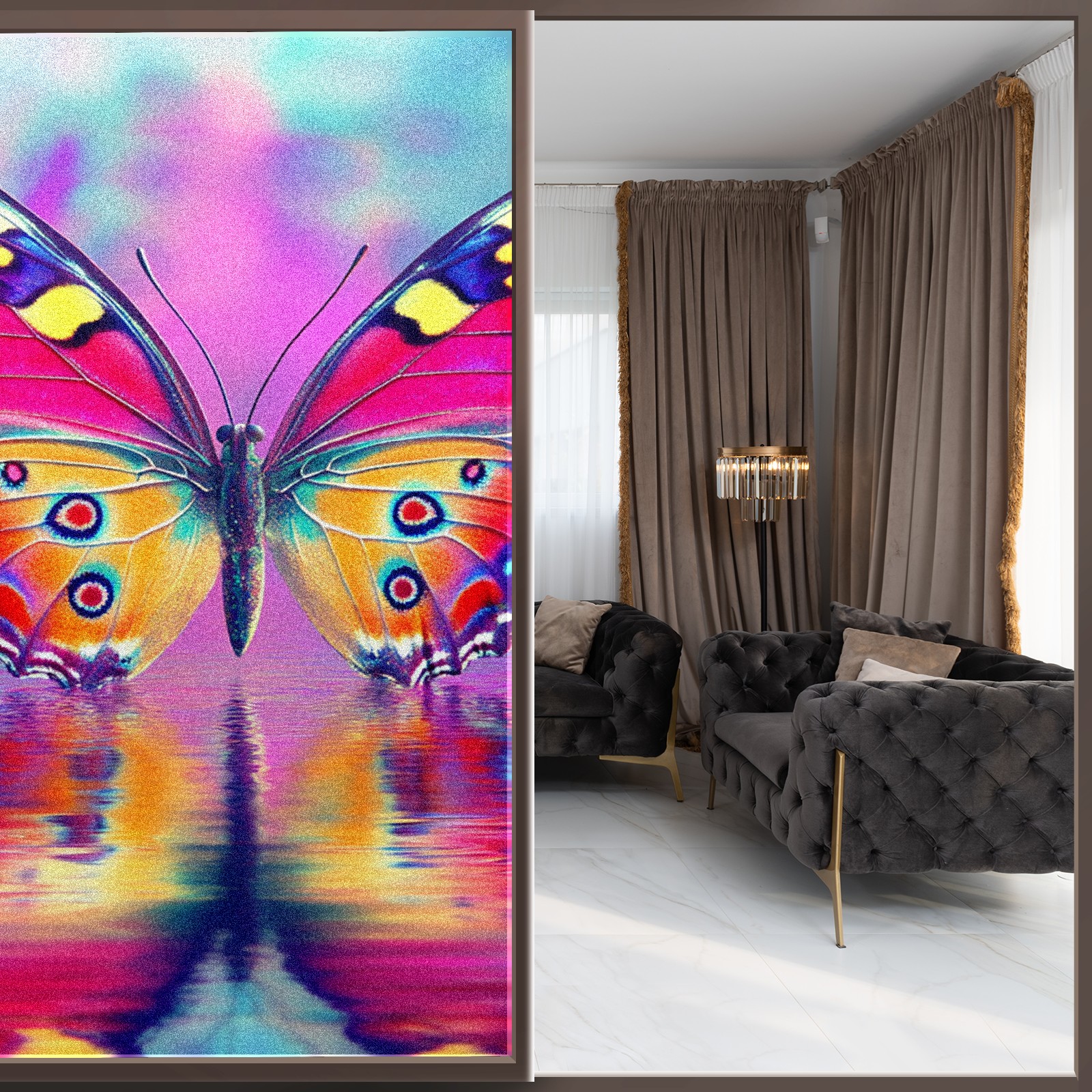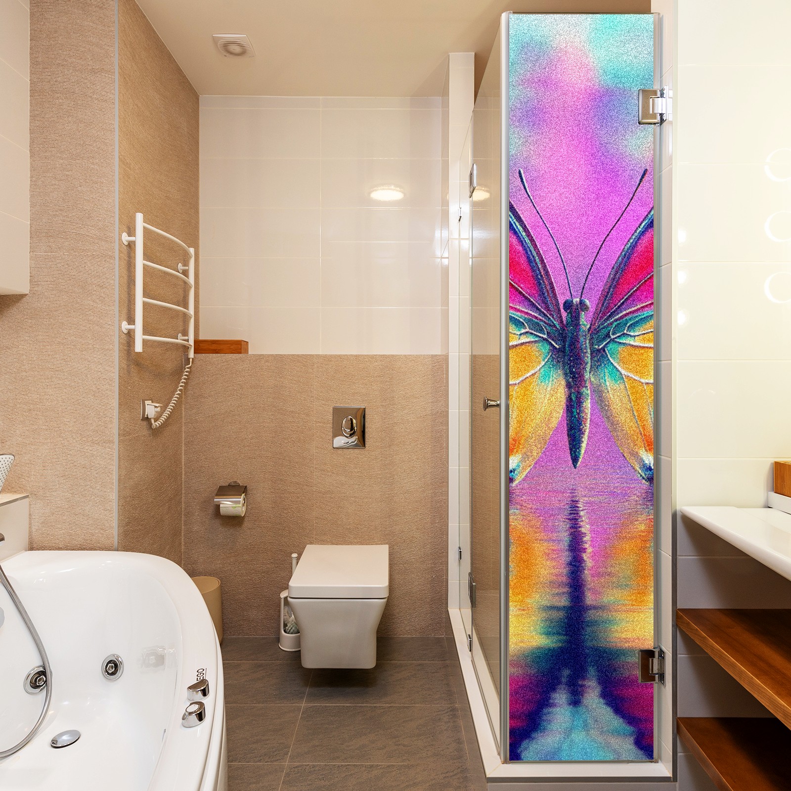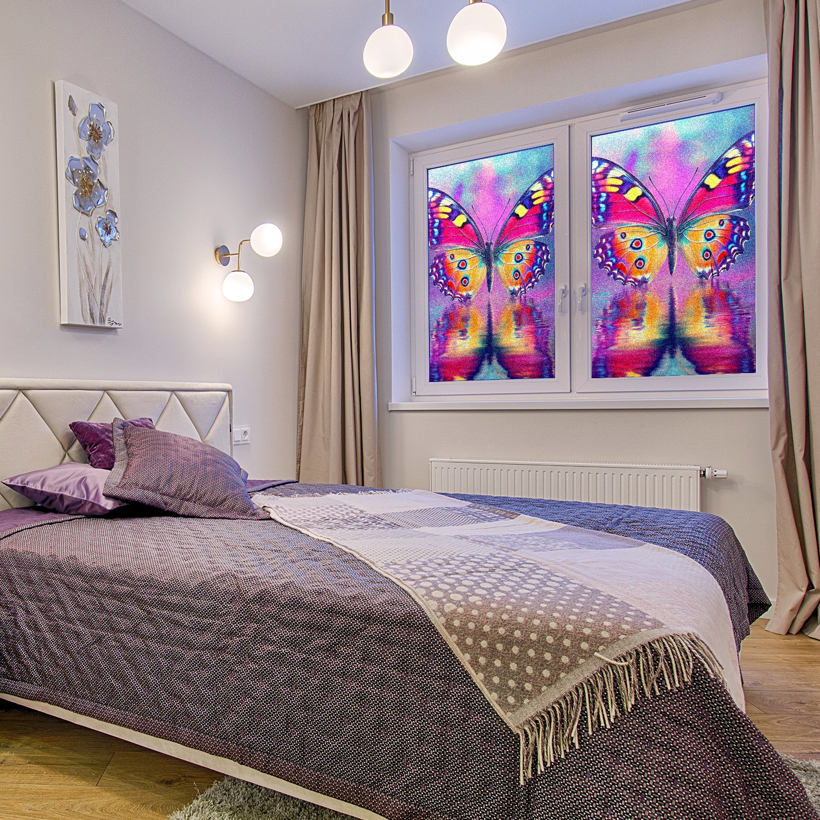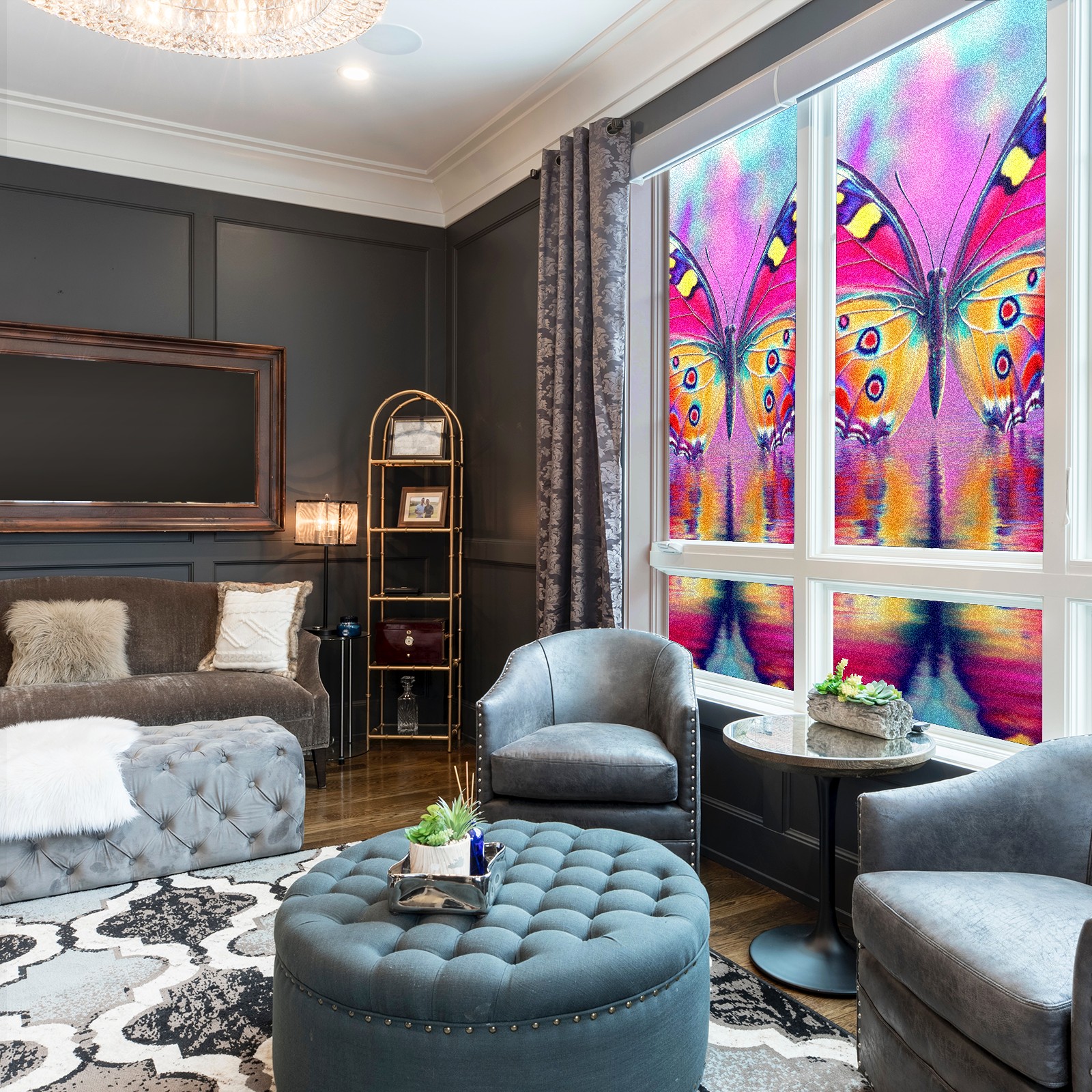 MSINMKOK Window Privacy Film Pink Butterfly Reflection Decorative Frosted Glass Window Film for Glass Door Bathroom Window 17.7'' x 23.6'' Non-Adhesive Window Decals Stickers