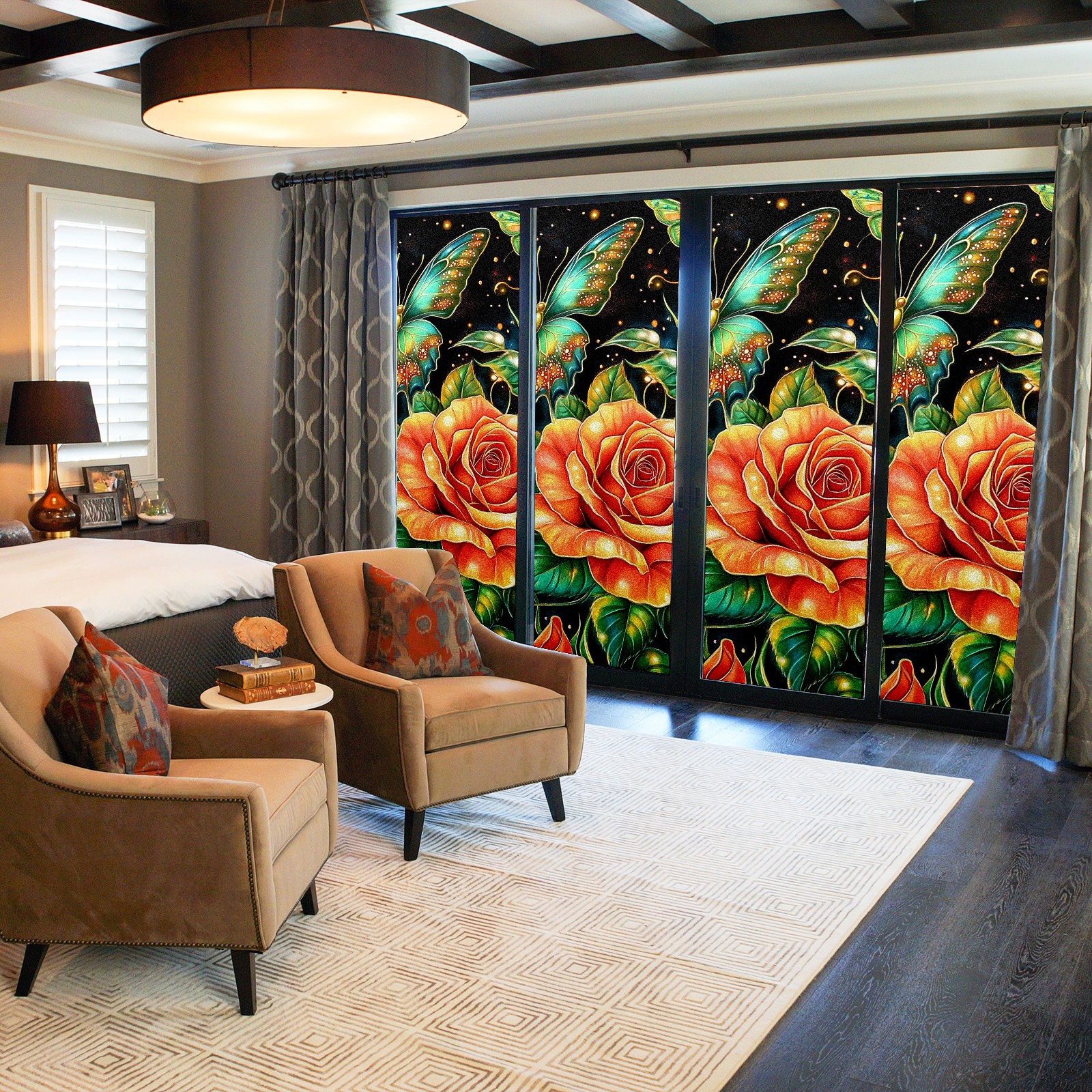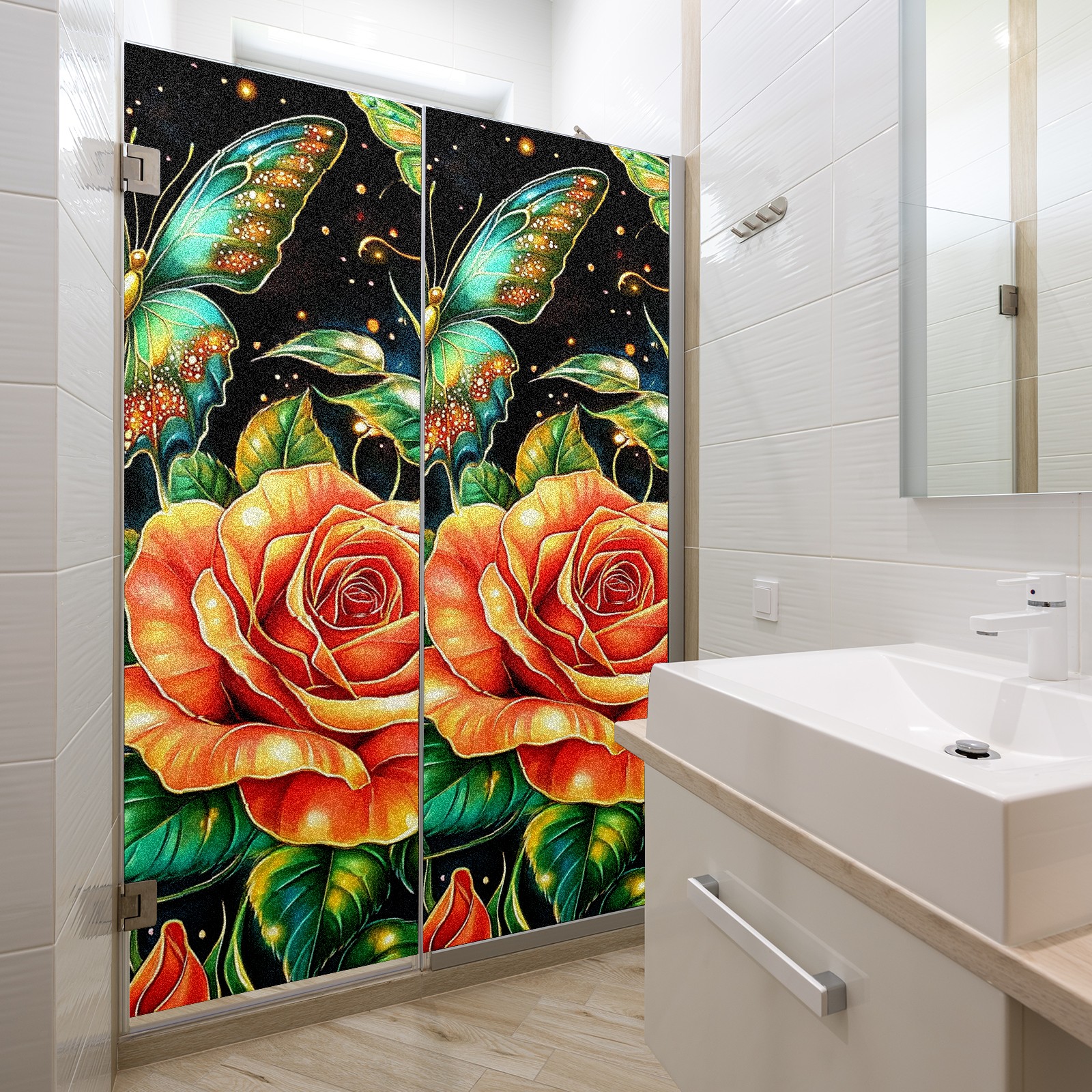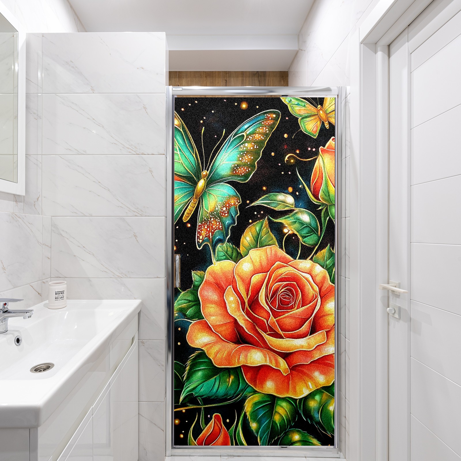 MSINMKOK Window Privacy Film Rose Green Butterfly Decorative Frosted Glass Window Film for Glass Door Bathroom Window 17.7'' x 23.6'' Non-Adhesive Window Decals Stickers