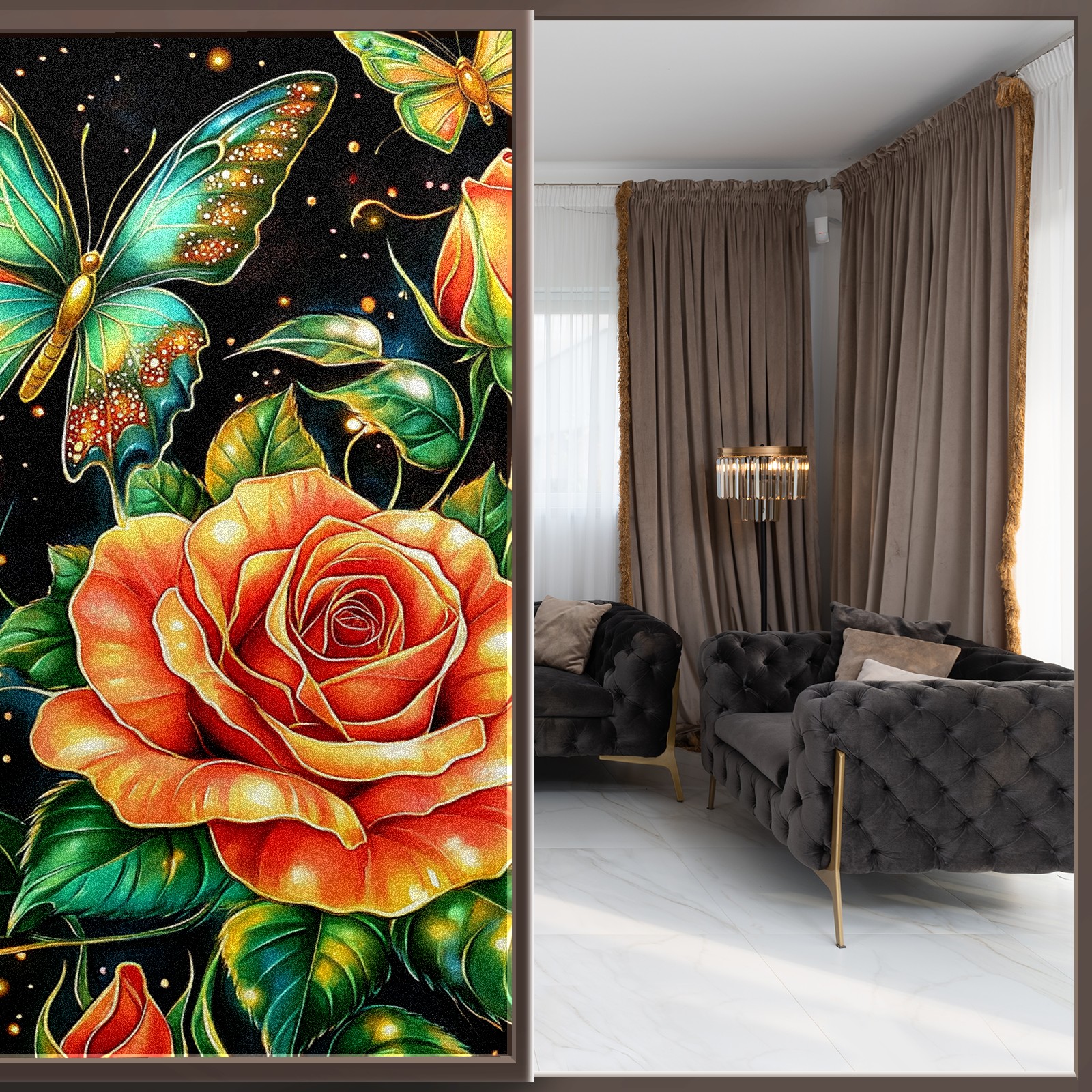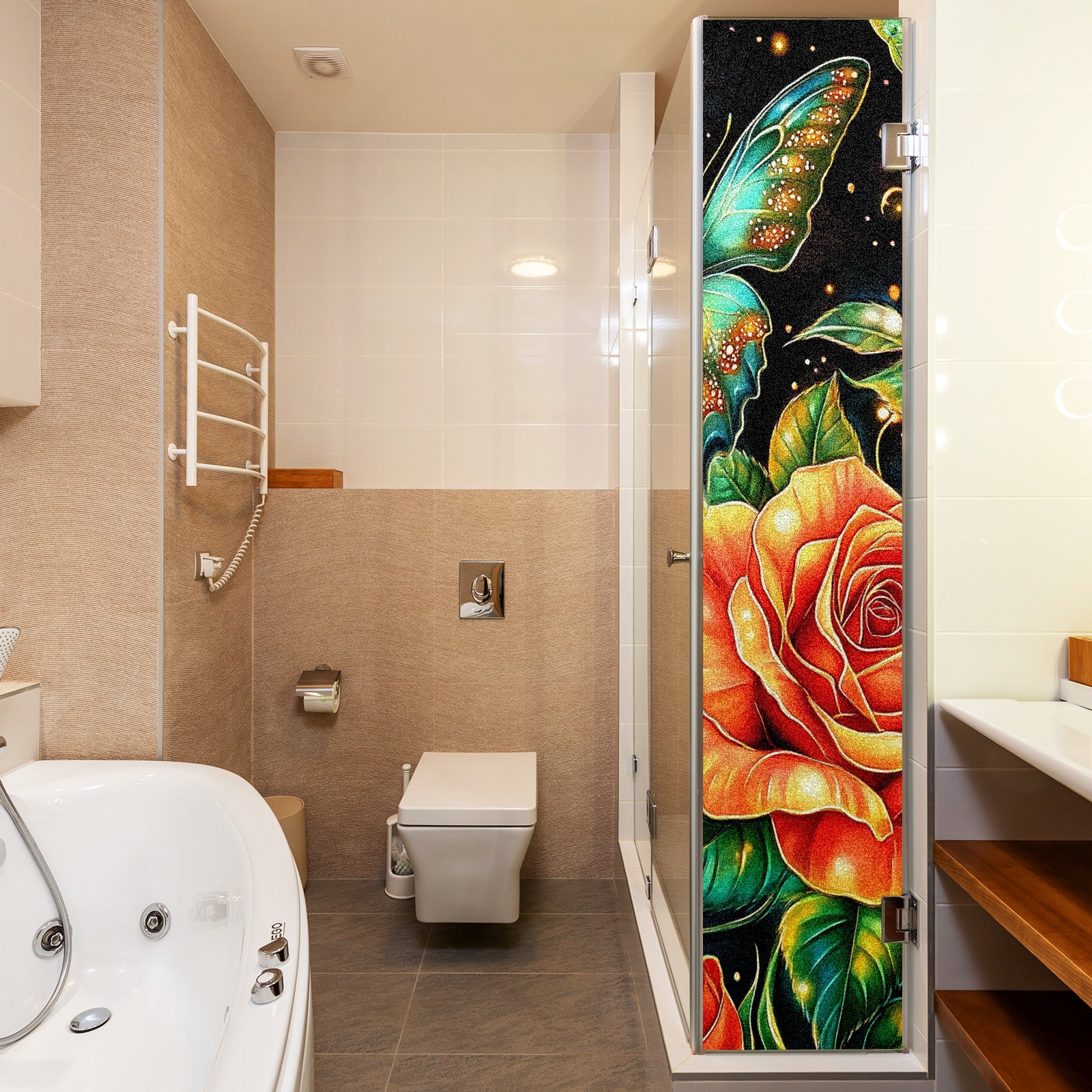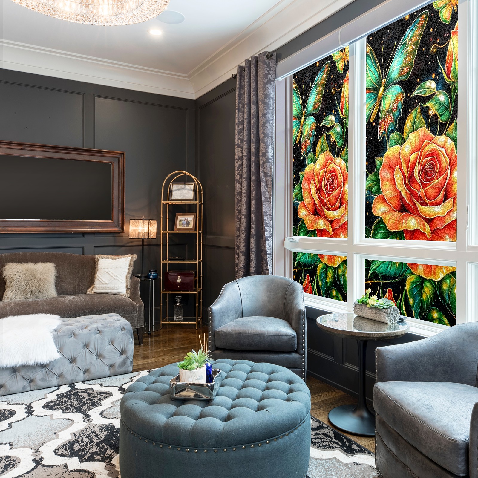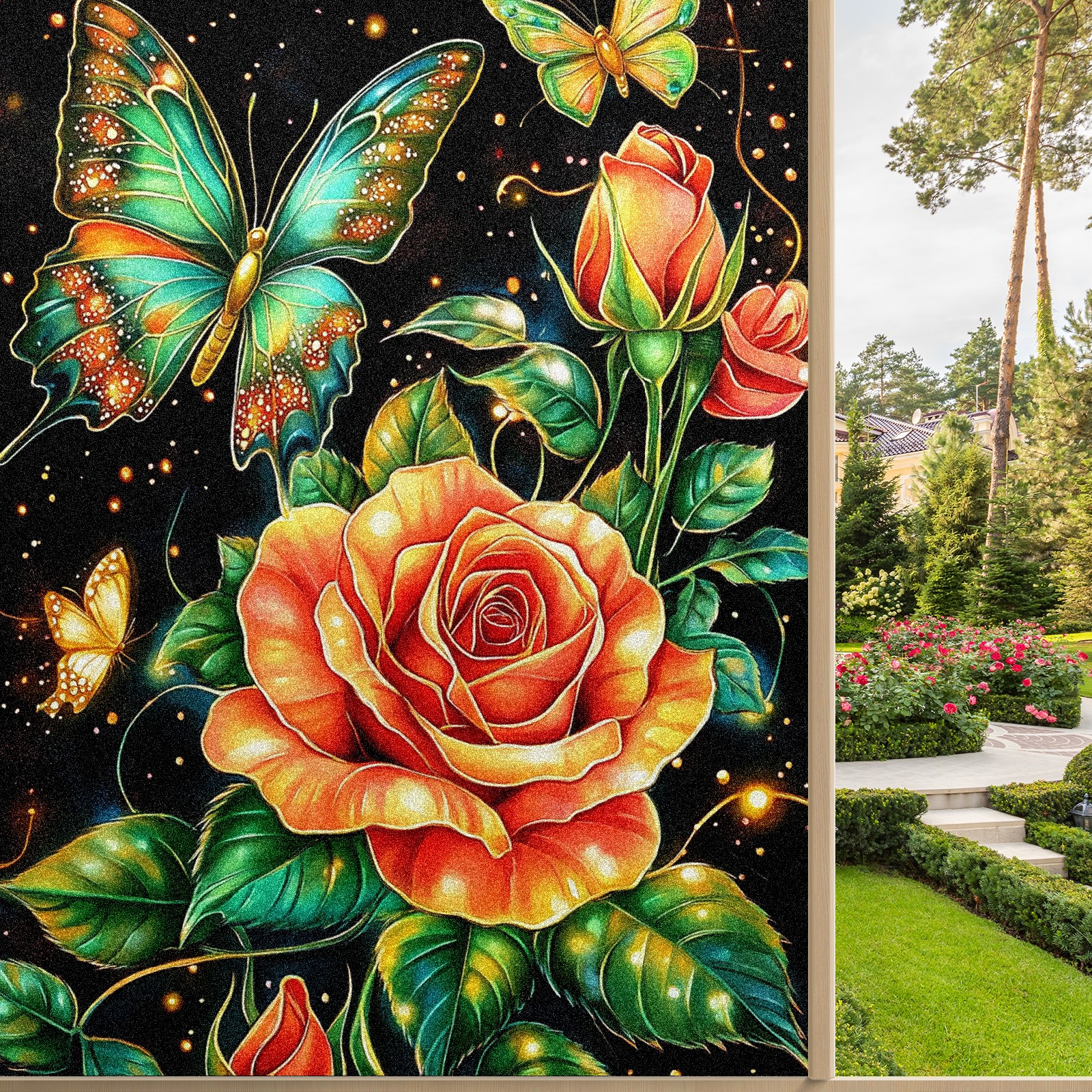 MSINMKOK Window Privacy Film Rose Green Butterfly Decorative Frosted Glass Window Film for Glass Door Bathroom Window 17.7'' x 23.6'' Non-Adhesive Window Decals Stickers