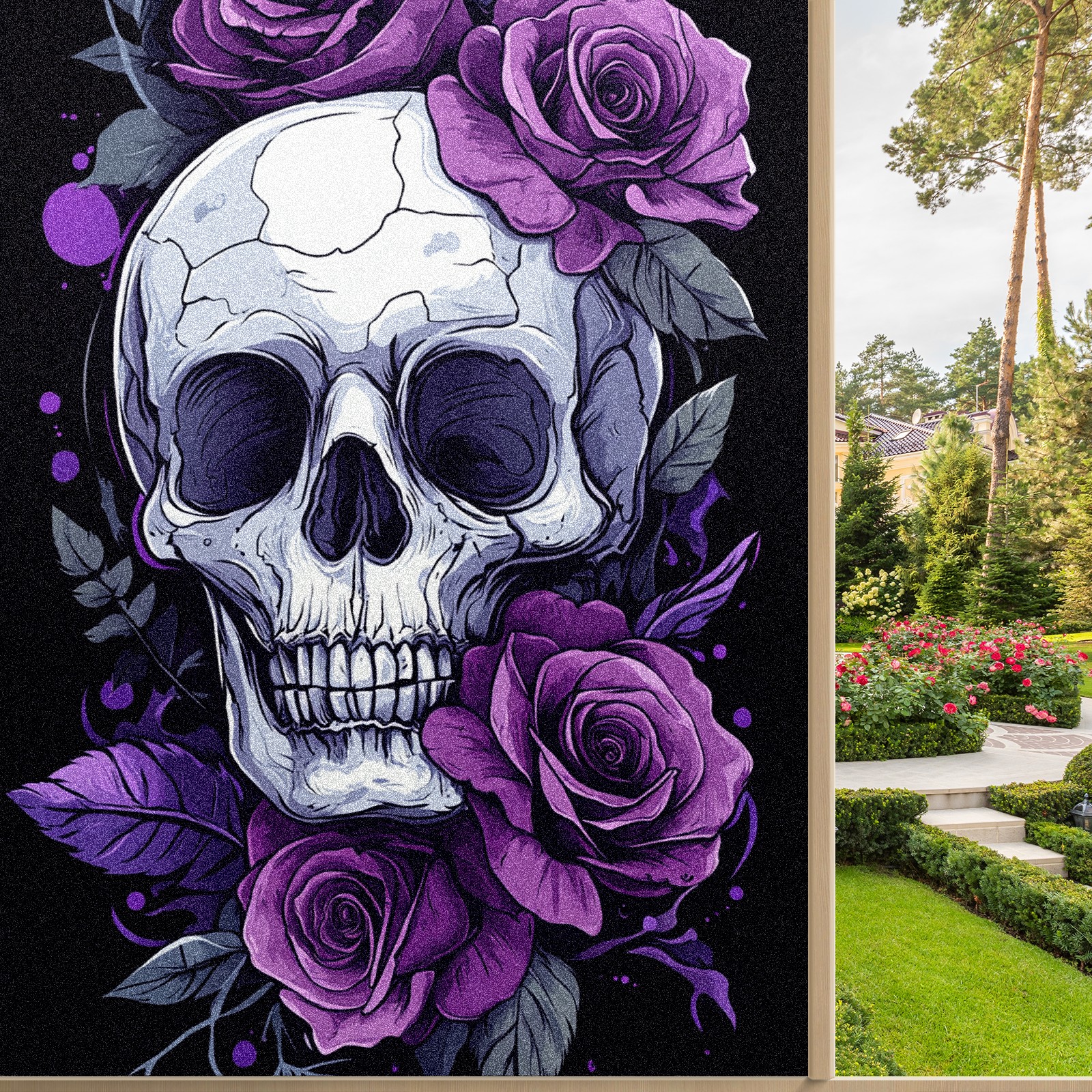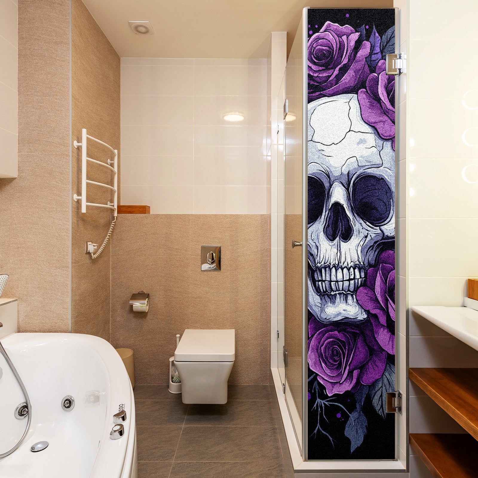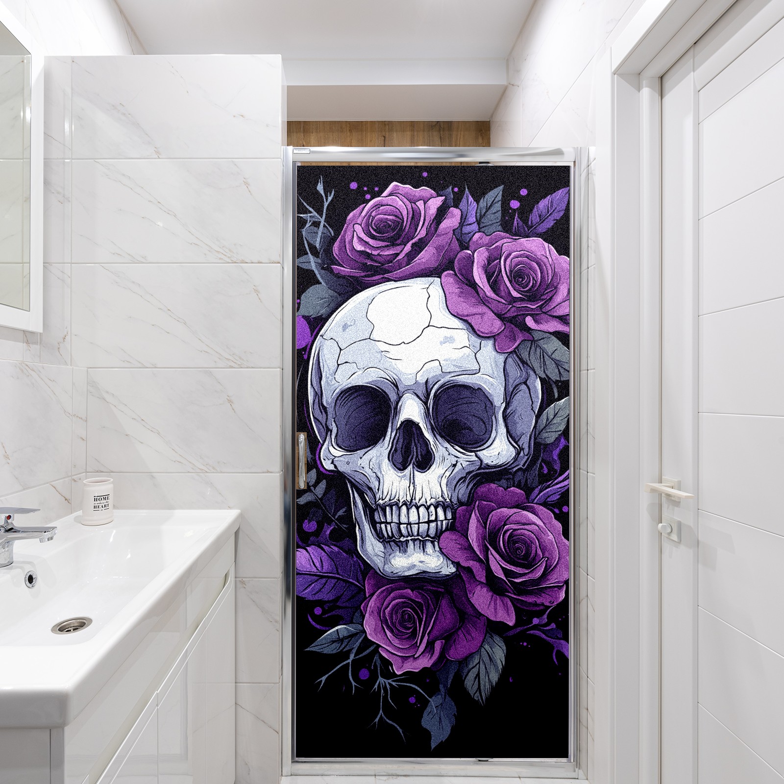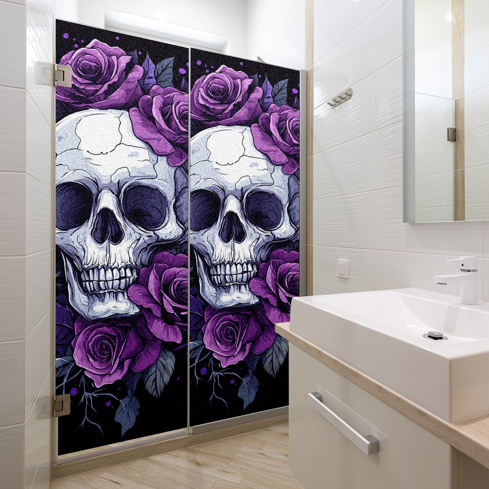 MSINMKOK Window Privacy Film Skull Purple Roses Decorative Frosted Glass Window Film for Glass Door Bathroom Window 17.7'' x 23.6'' Non-Adhesive Window Decals Stickers