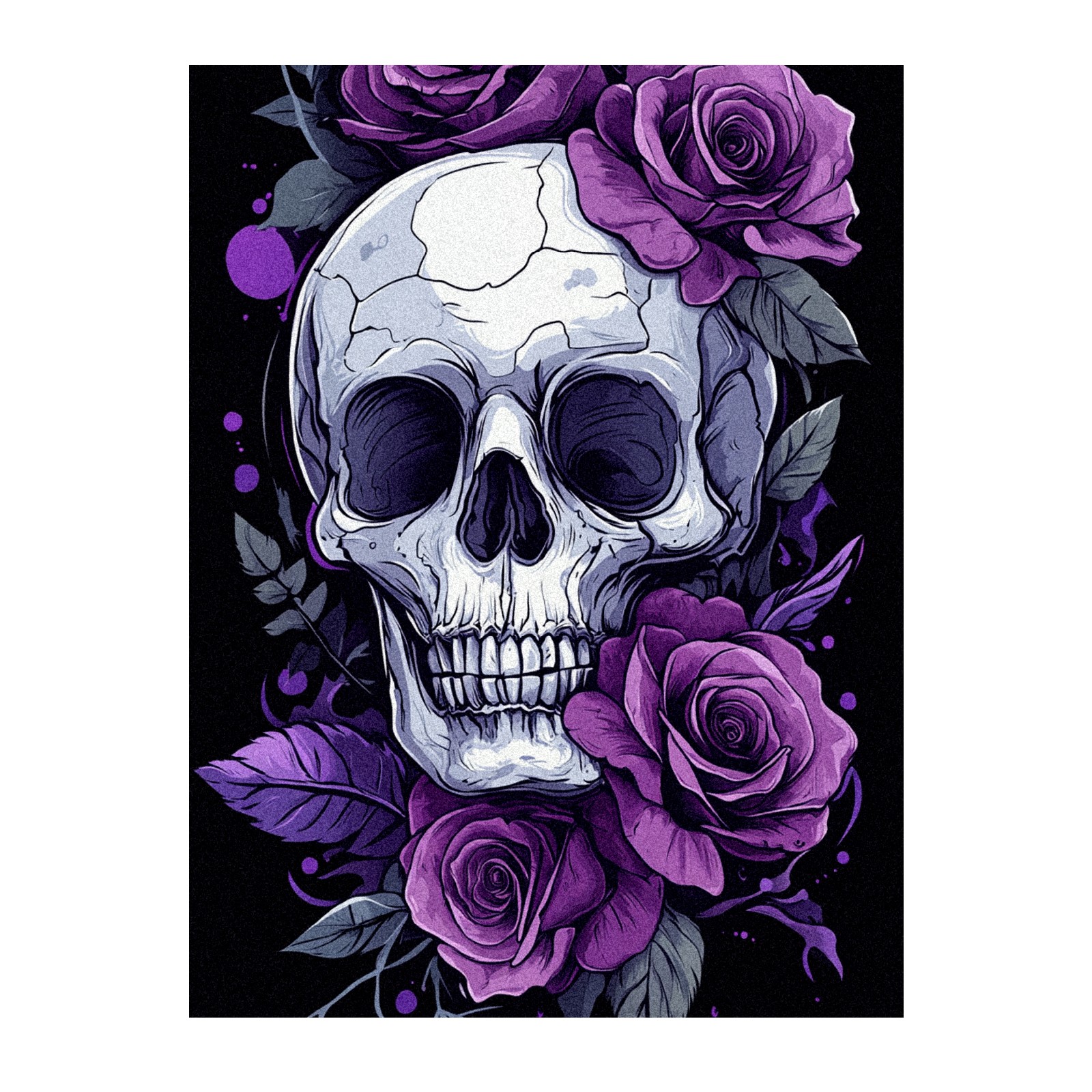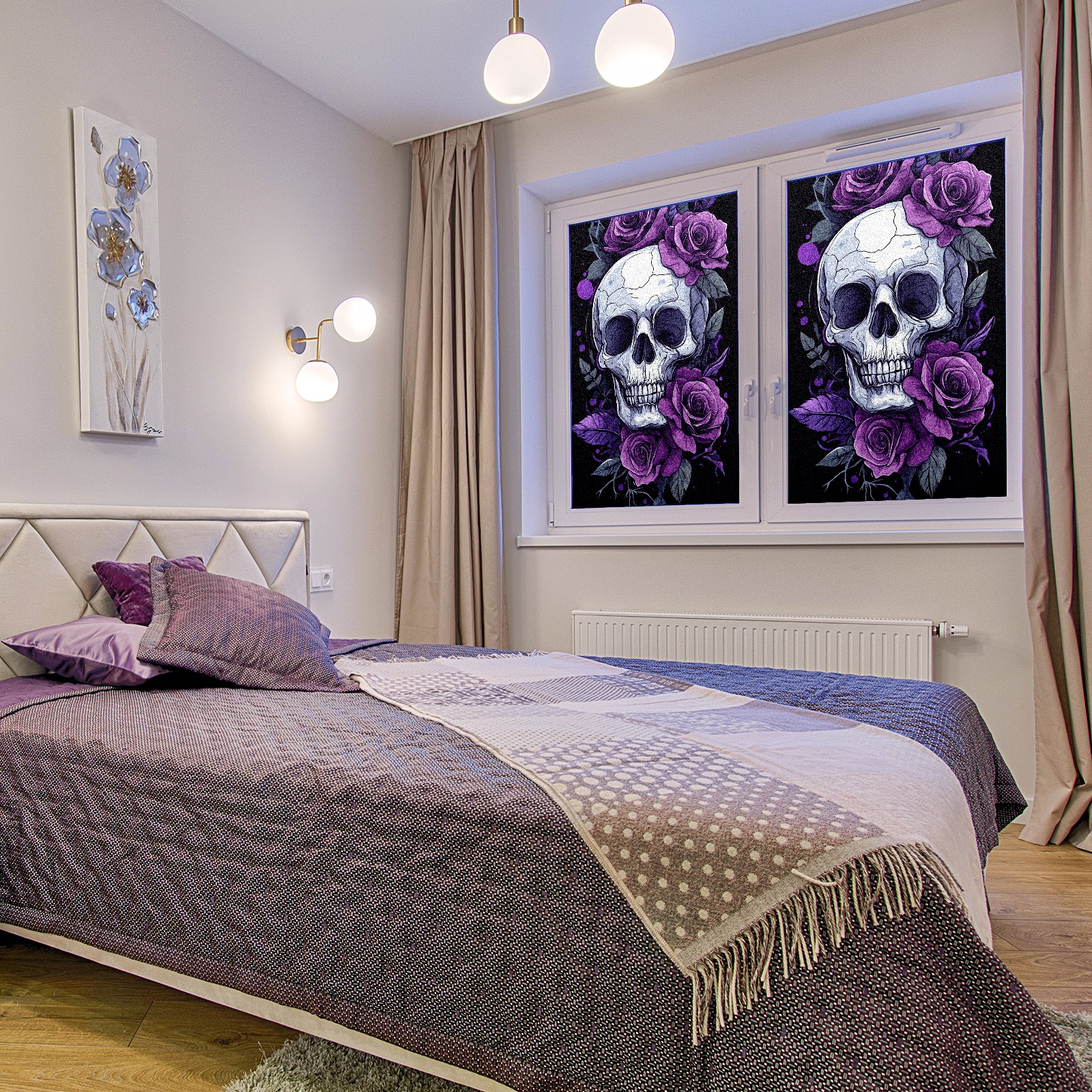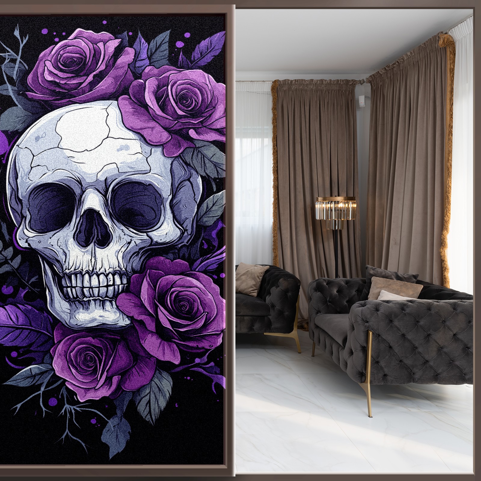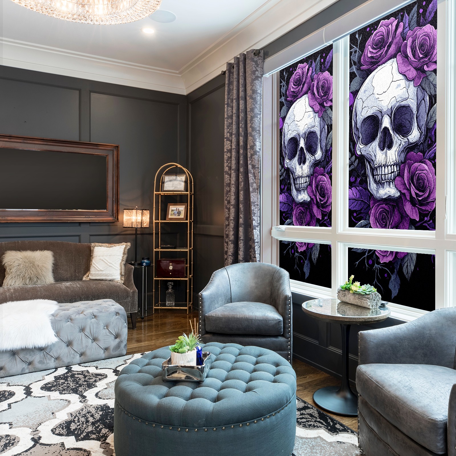 MSINMKOK Window Privacy Film Skull Purple Roses Decorative Frosted Glass Window Film for Glass Door Bathroom Window 17.7'' x 23.6'' Non-Adhesive Window Decals Stickers