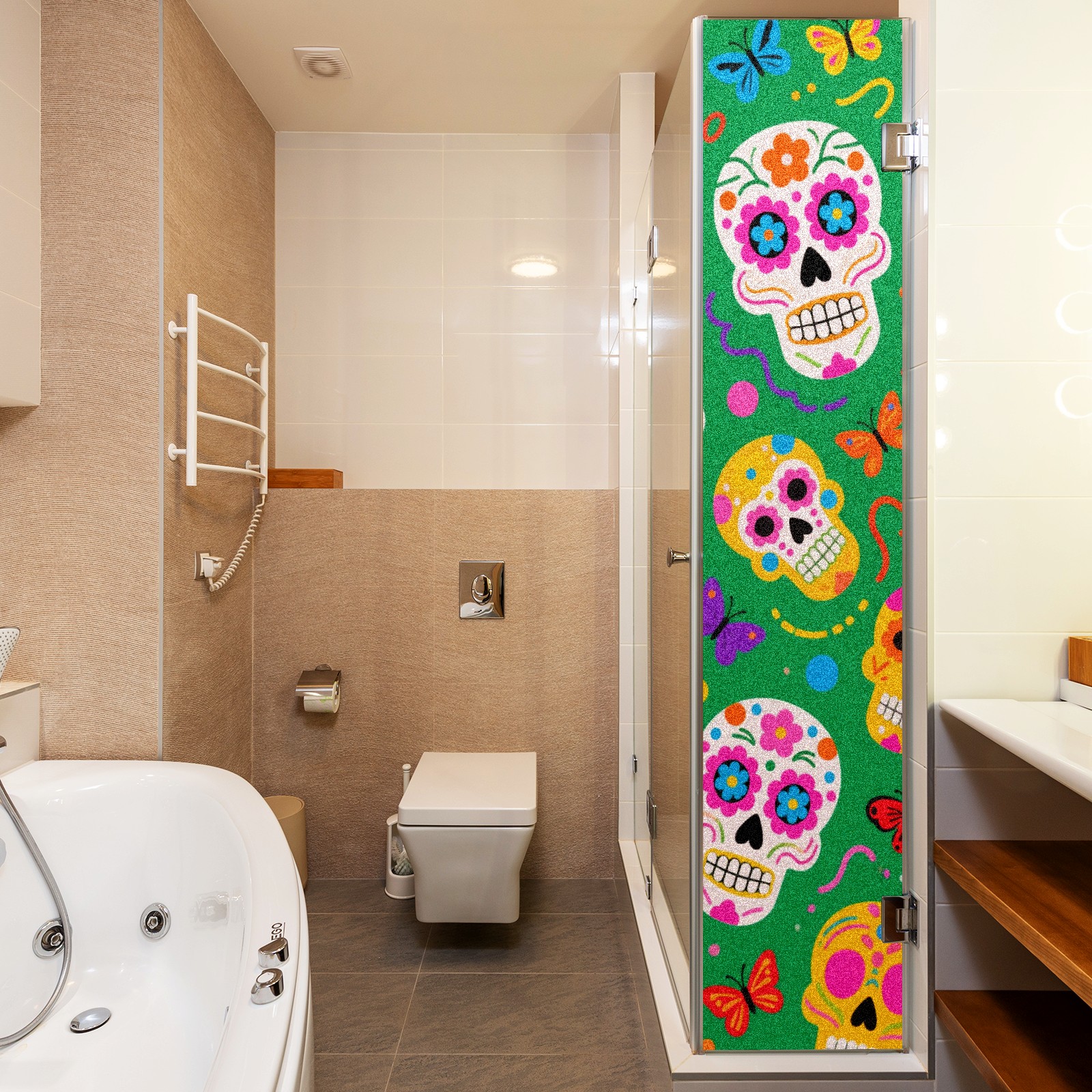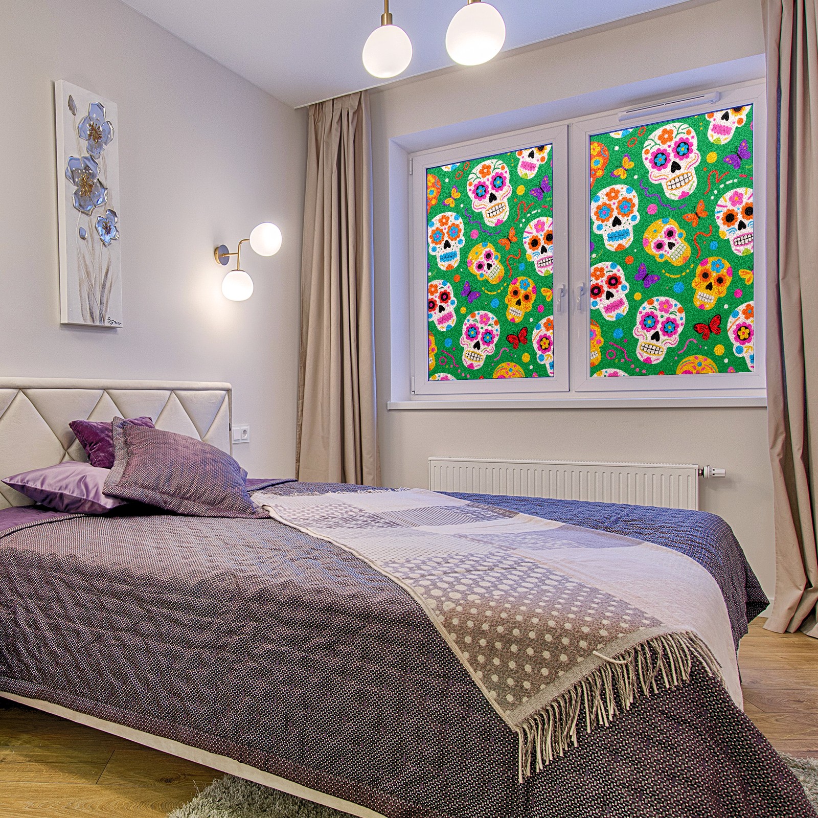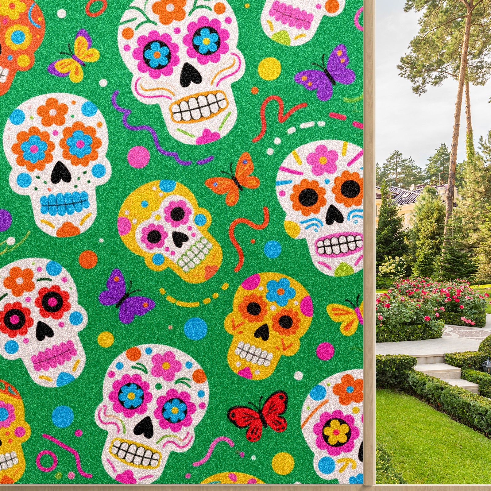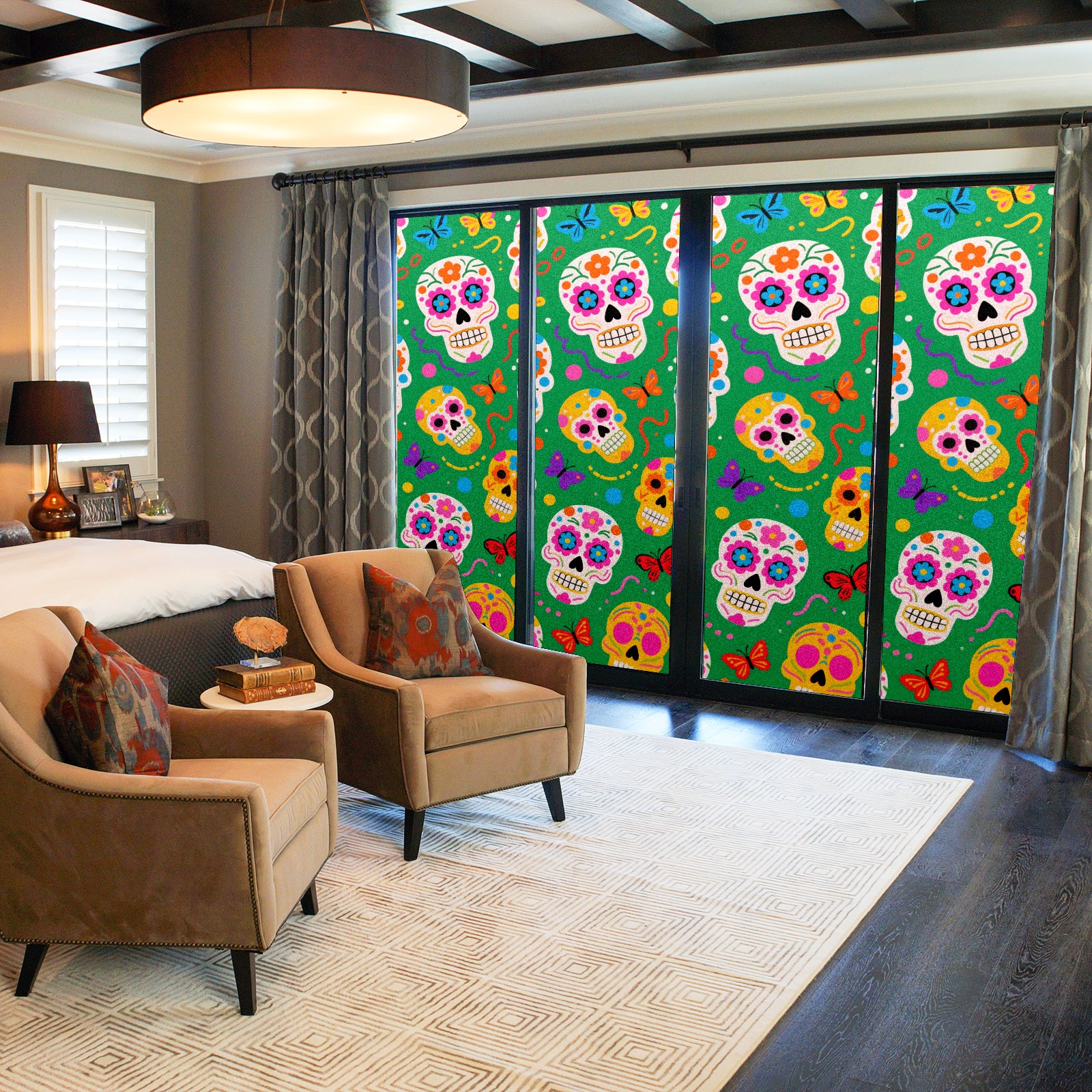 Window Privacy Film Decorative Window Decal Film Removable Static Cling Window Tint for Home Bedroom Sun Blocking Stickers 17.7 x 23.6 Inches Skulls 2