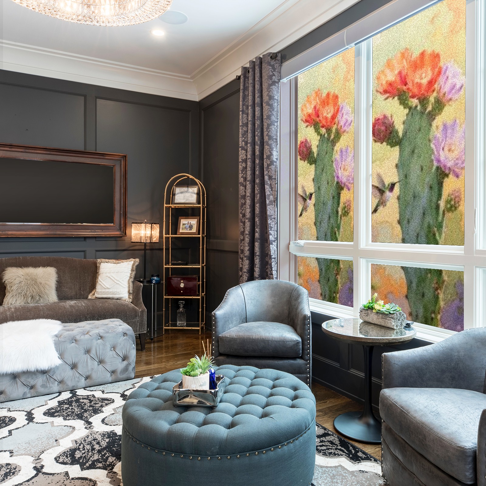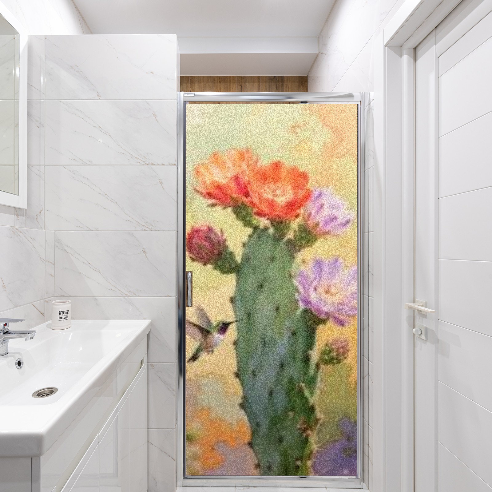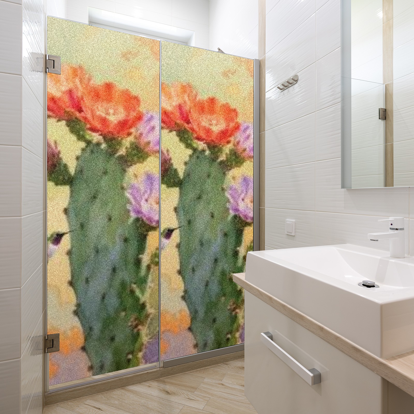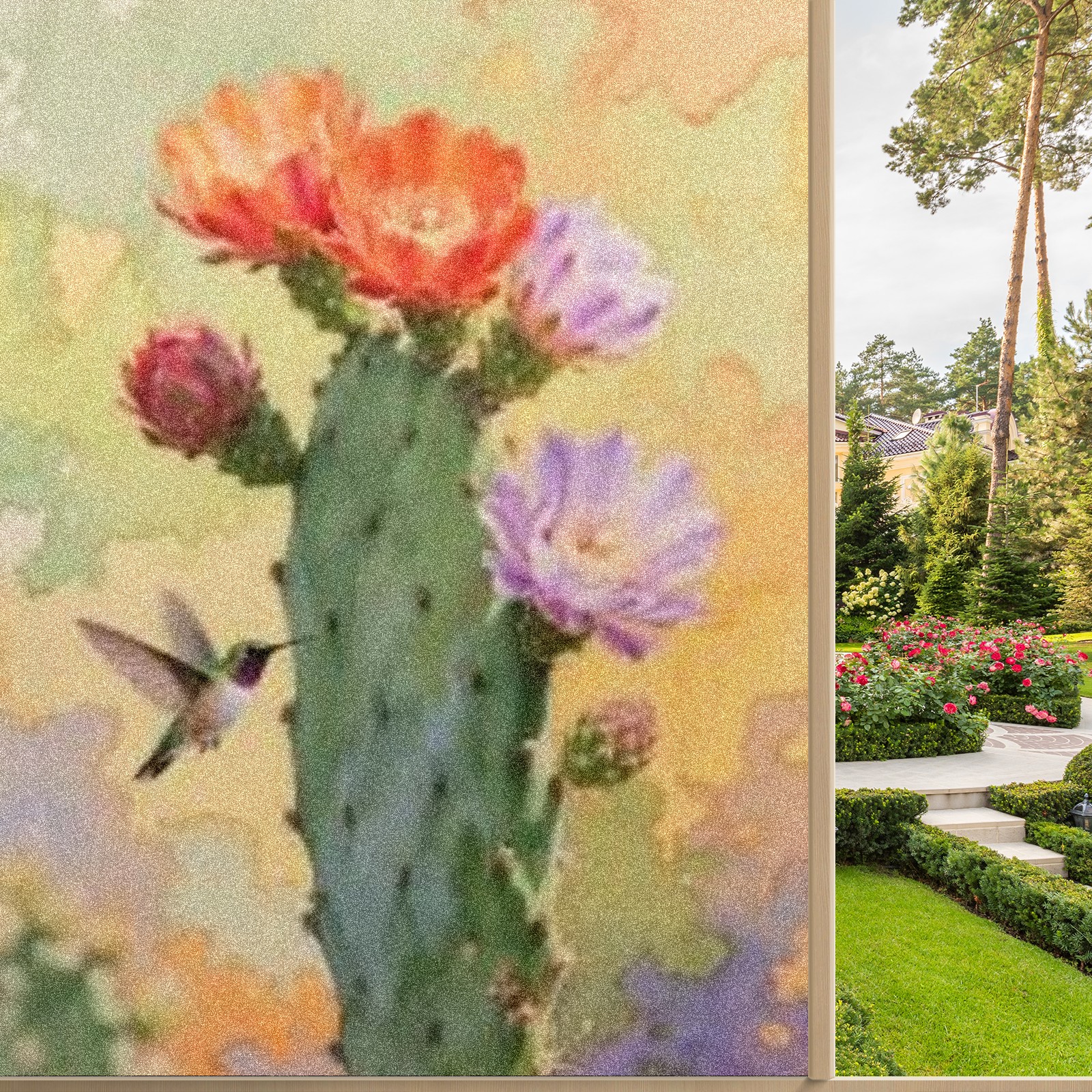 Window Privacy Film Decorative Window Decal Film Removable Static Cling Window Tint for Home Bedroom Sun Blocking Stickers 17.7 x 23.6 Inches Cactus