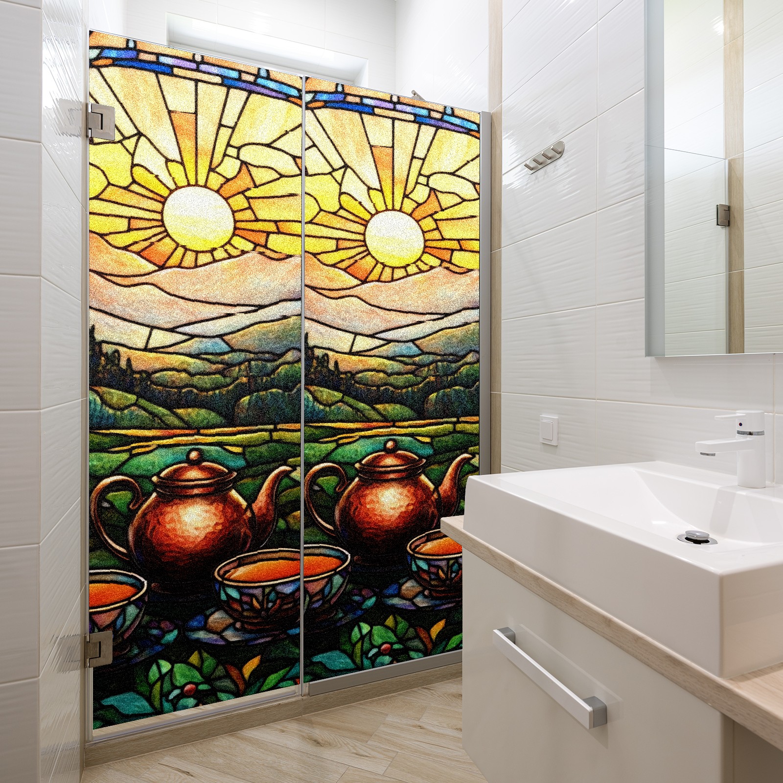 Window Privacy Film Decorative Window Decal Film Removable Static Cling Window Tint for Home Bedroom Sun Blocking Stickers 17.7 x 23.6 Inches Sun Rising (2)