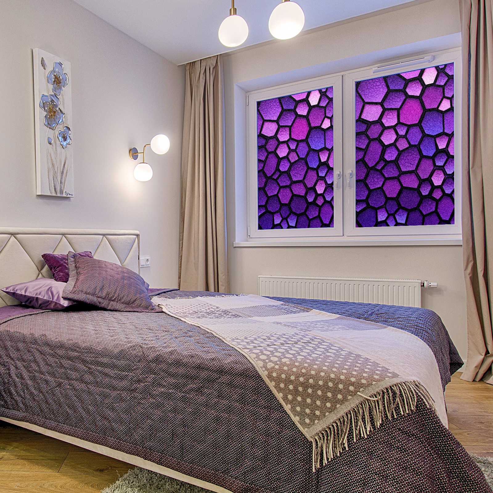 Window Privacy Film Decorative Window Decal Film Removable Static Cling Window Tint for Home Bedroom Sun Blocking Stickers 17.7 x 23.6 Inches Purple