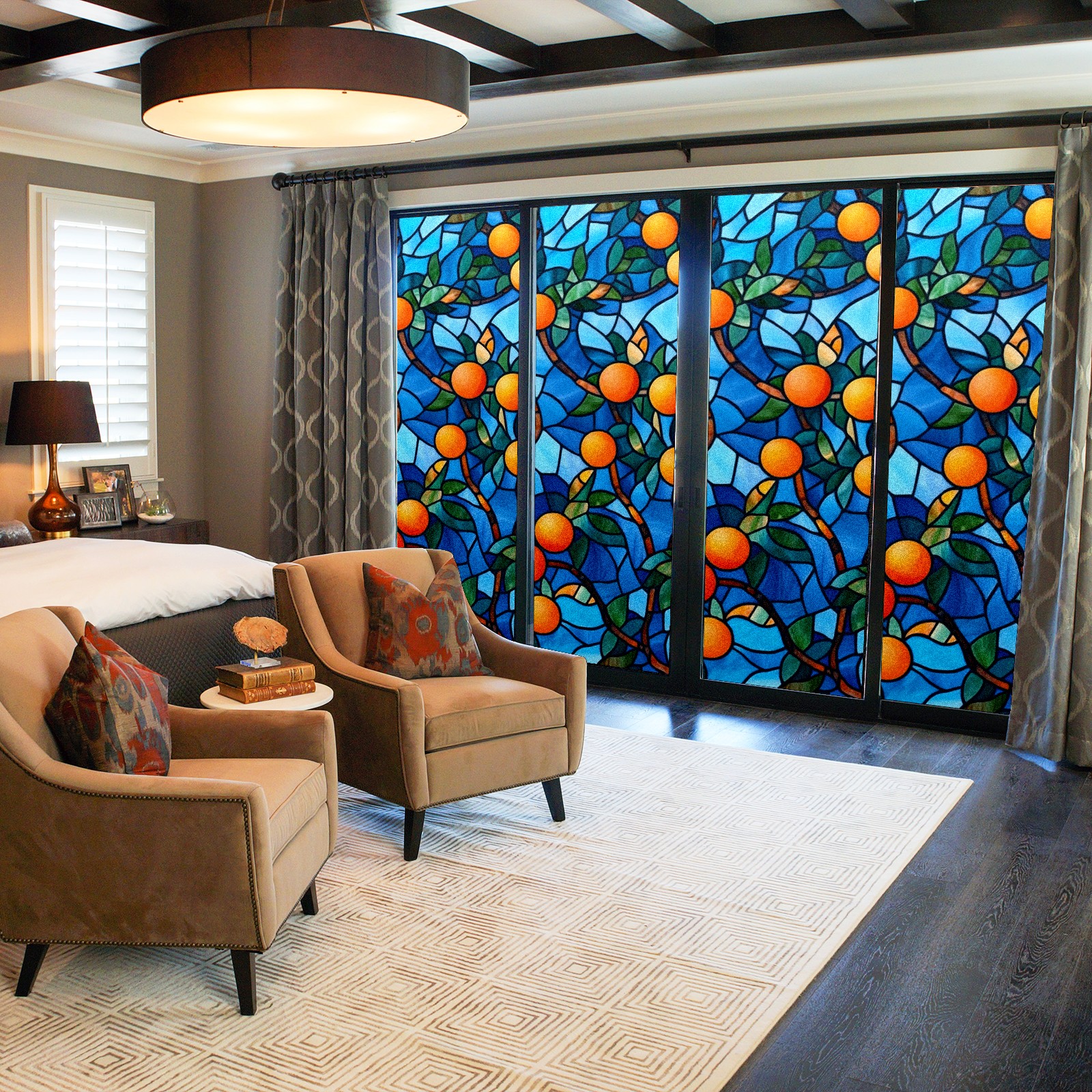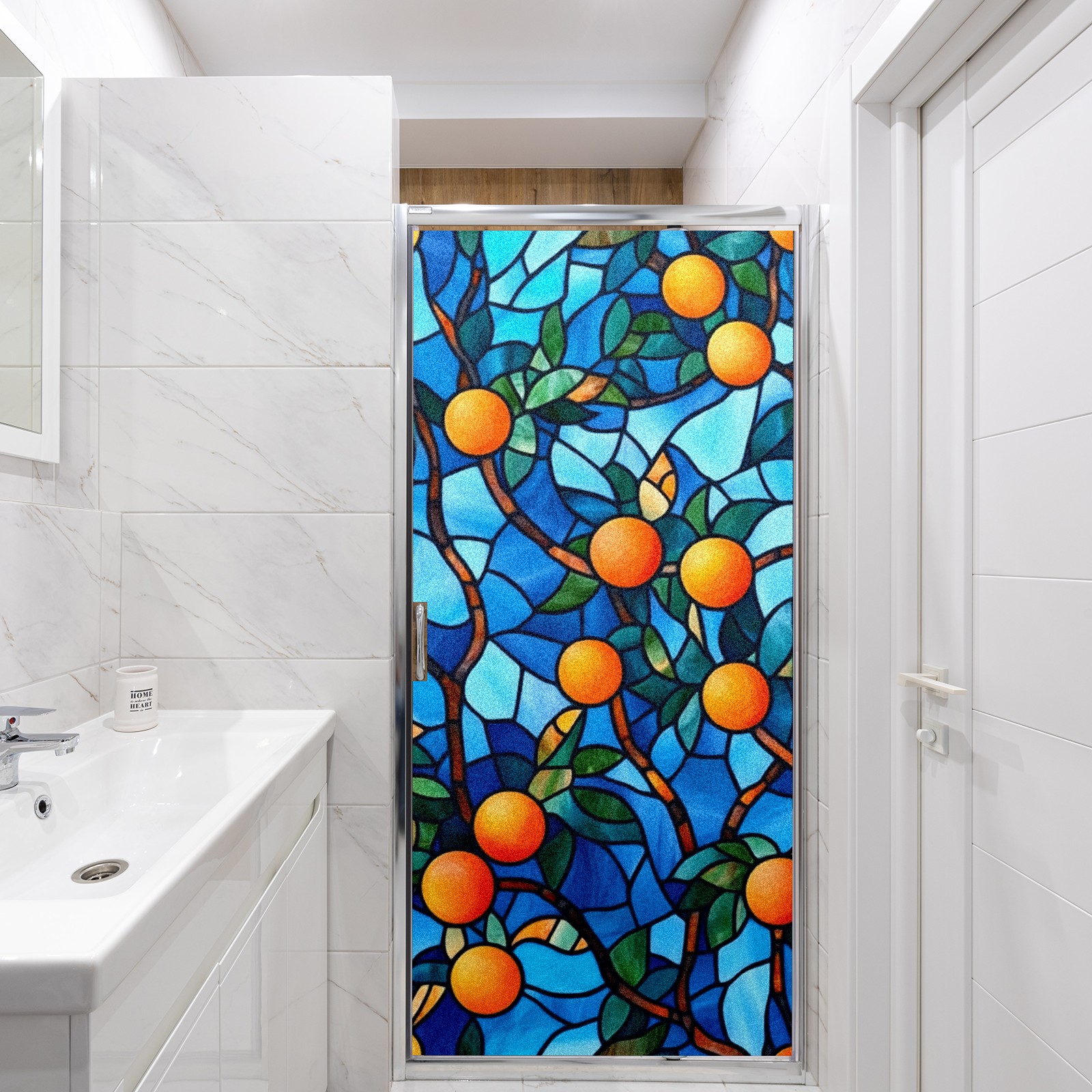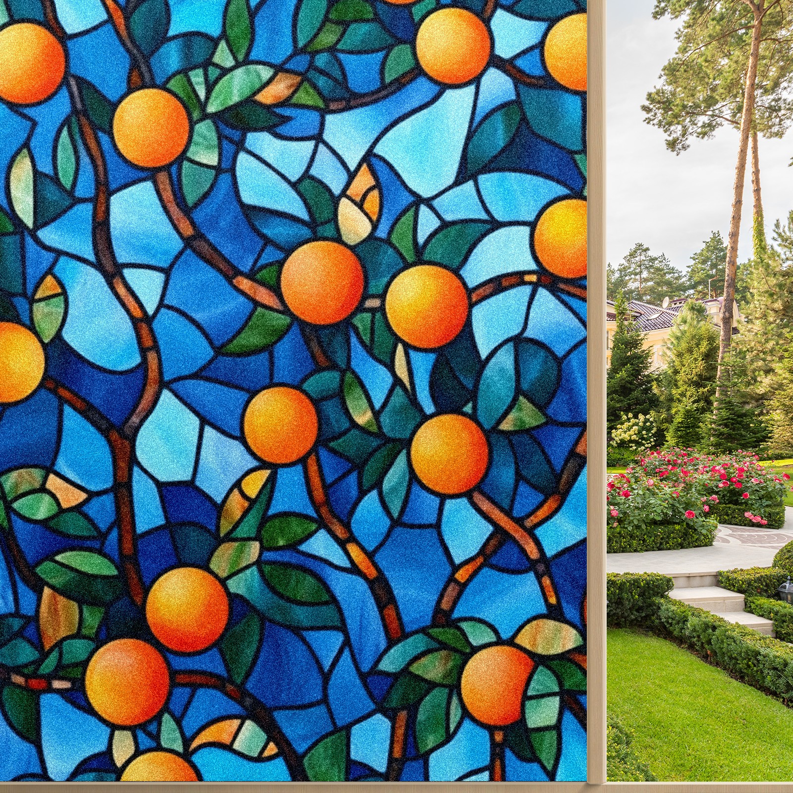 Window Privacy Film Decorative Window Decal Film Removable Static Cling Window Tint for Home Bedroom Sun Blocking Stickers 17.7 x 23.6 Inches Orange Tree