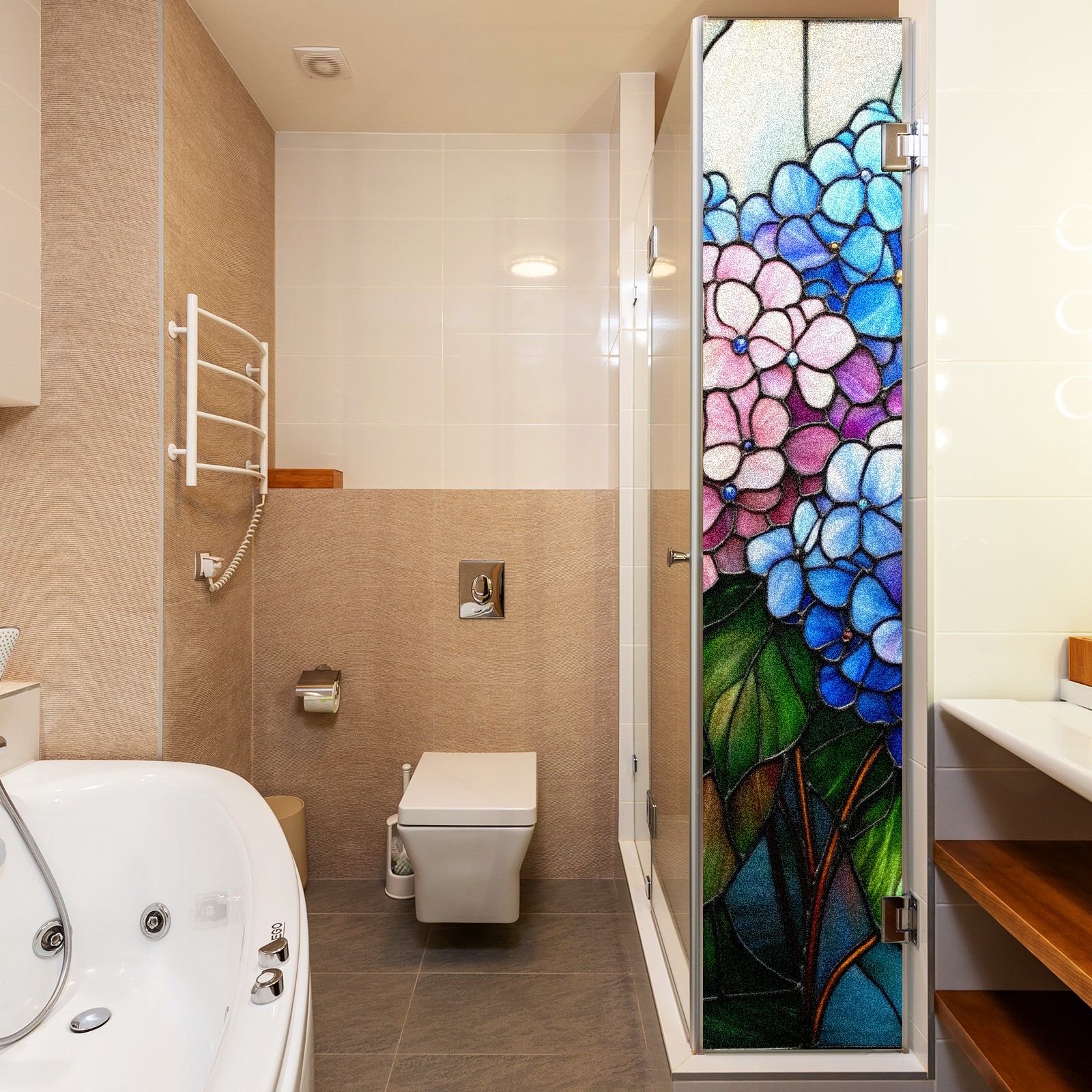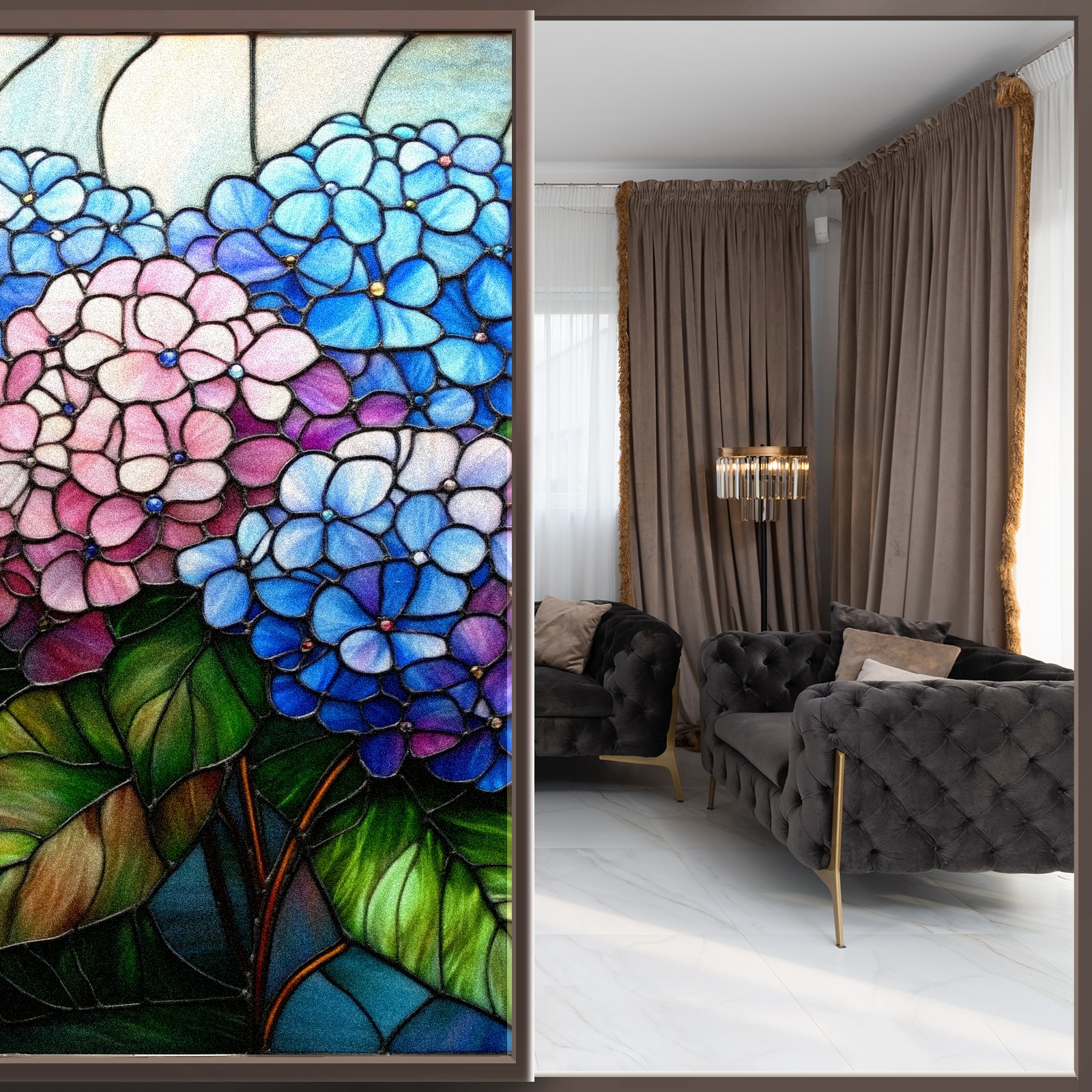 Window Privacy Film Decorative Window Decal Film Removable Static Cling Window Tint for Home Bedroom Sun Blocking Stickers 17.7 x 23.6 Inches Hydrangea Flowers