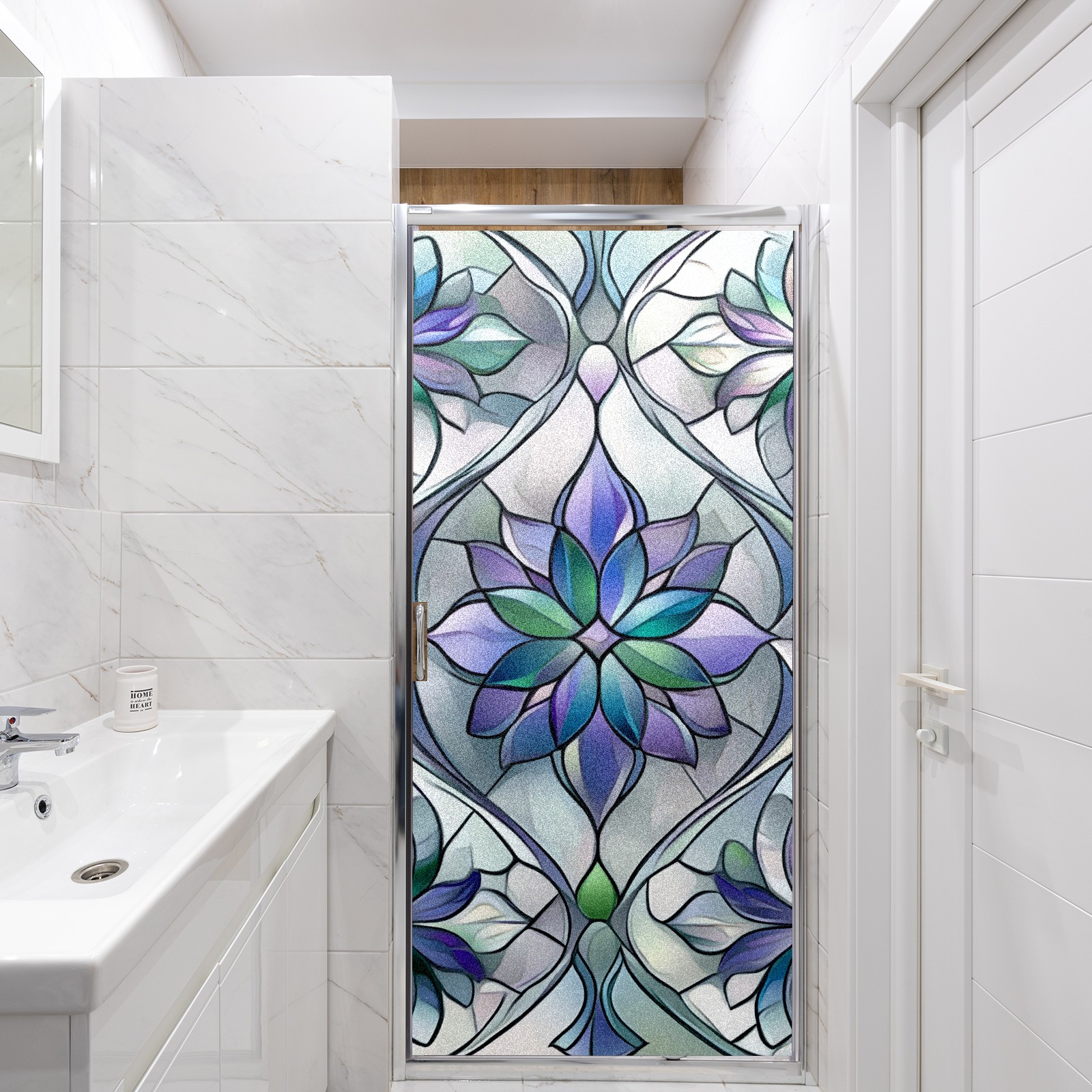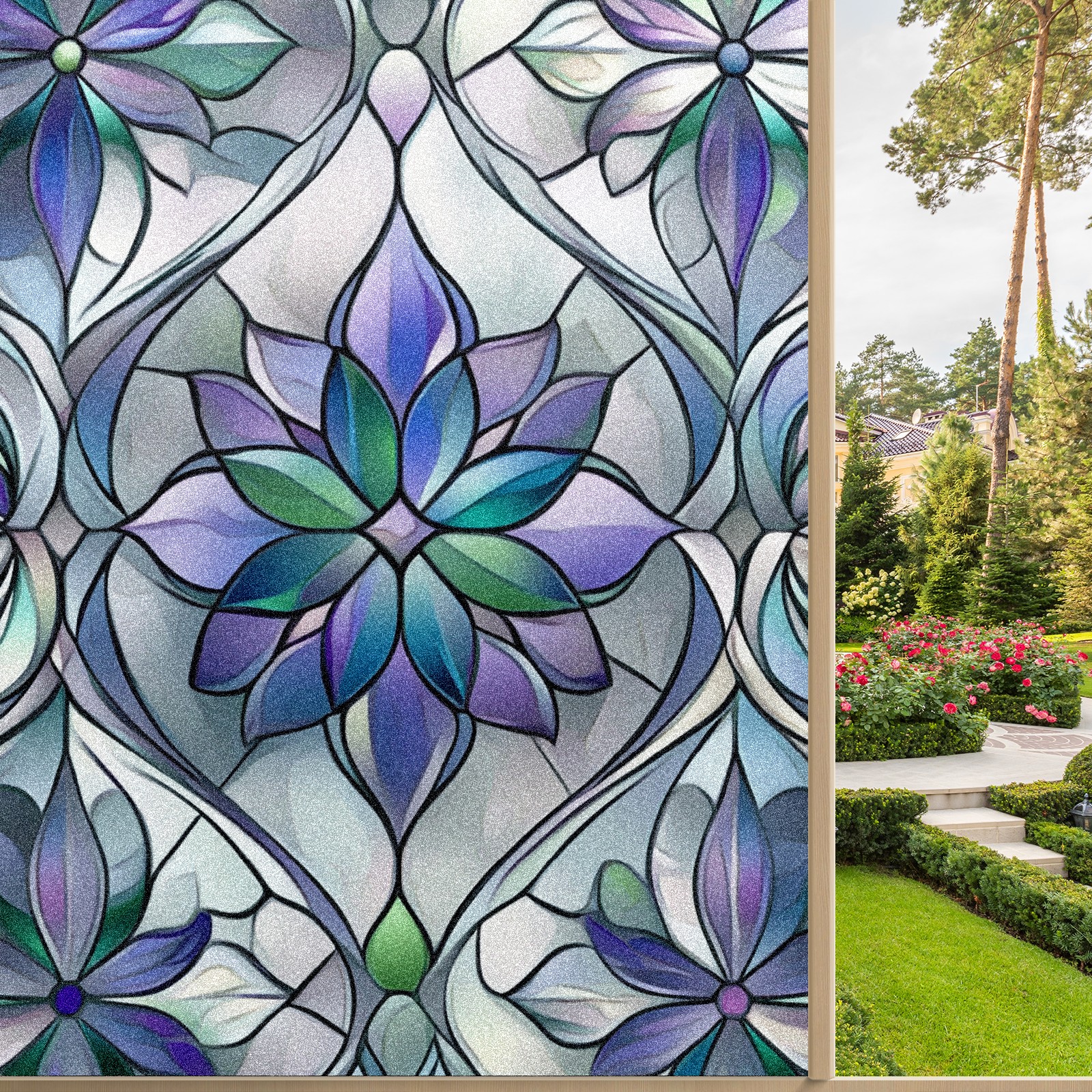 Window Privacy Film Decorative Window Decal Film Removable Static Cling Window Tint for Home Bedroom Sun Blocking Stickers 17.7 x 23.6 Inches Flower