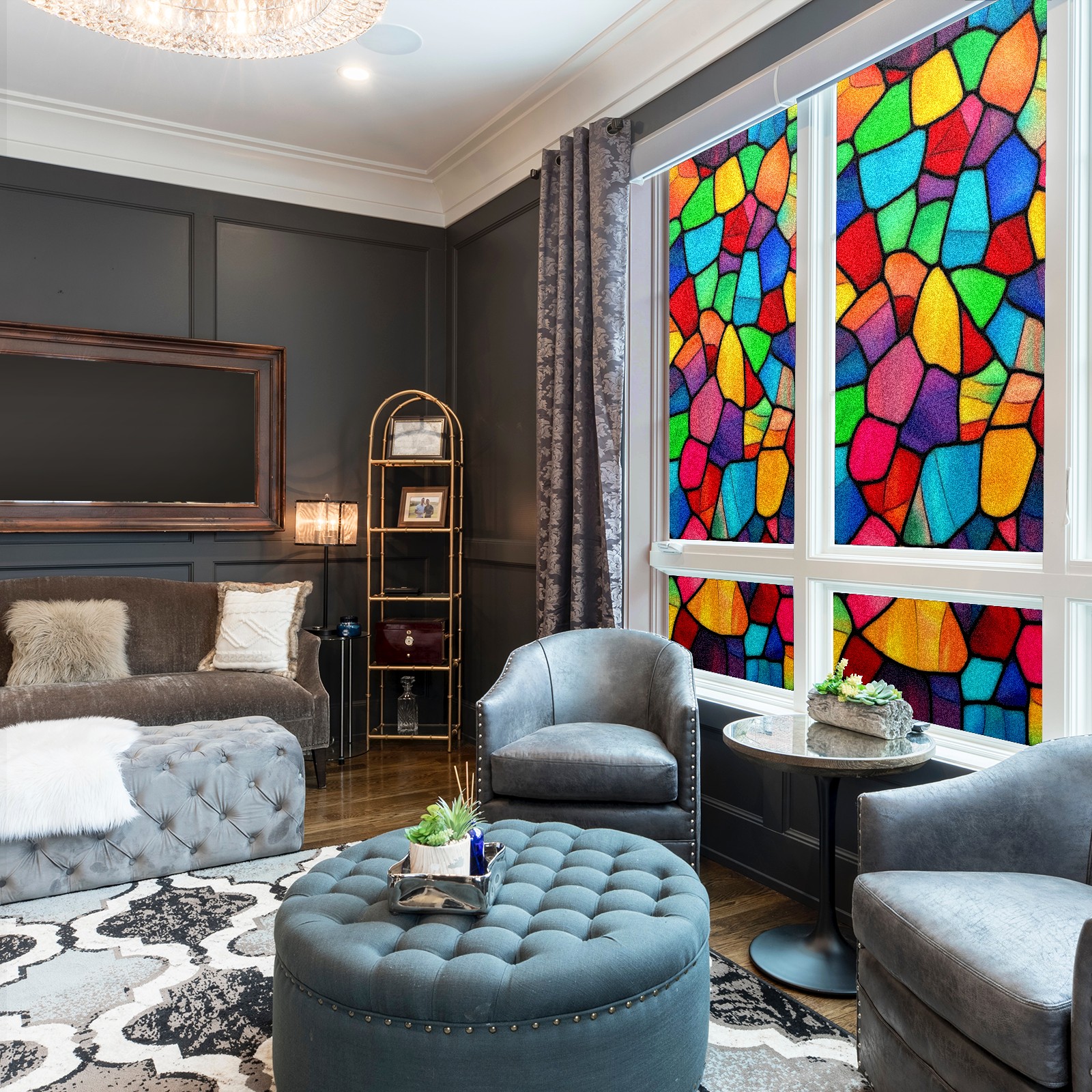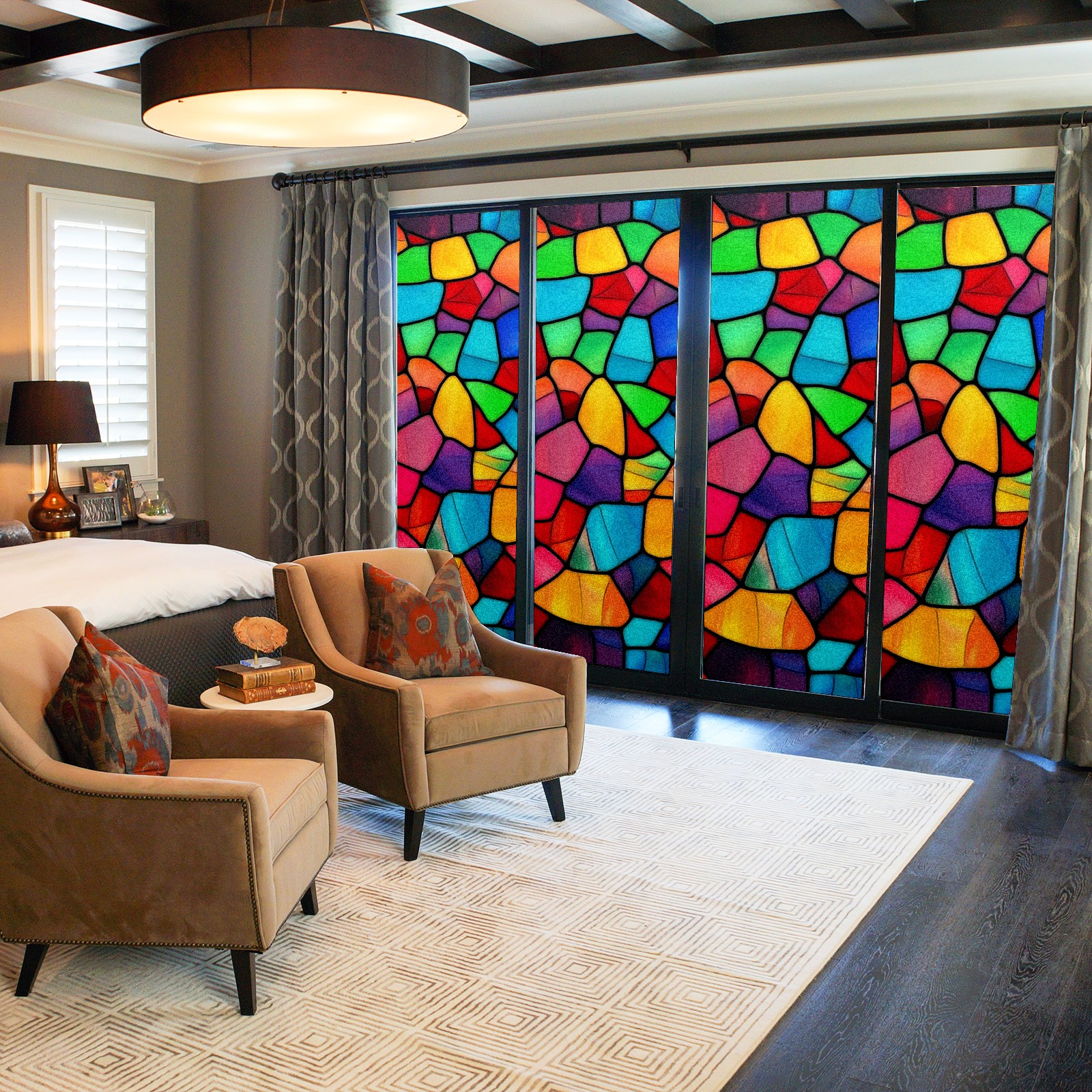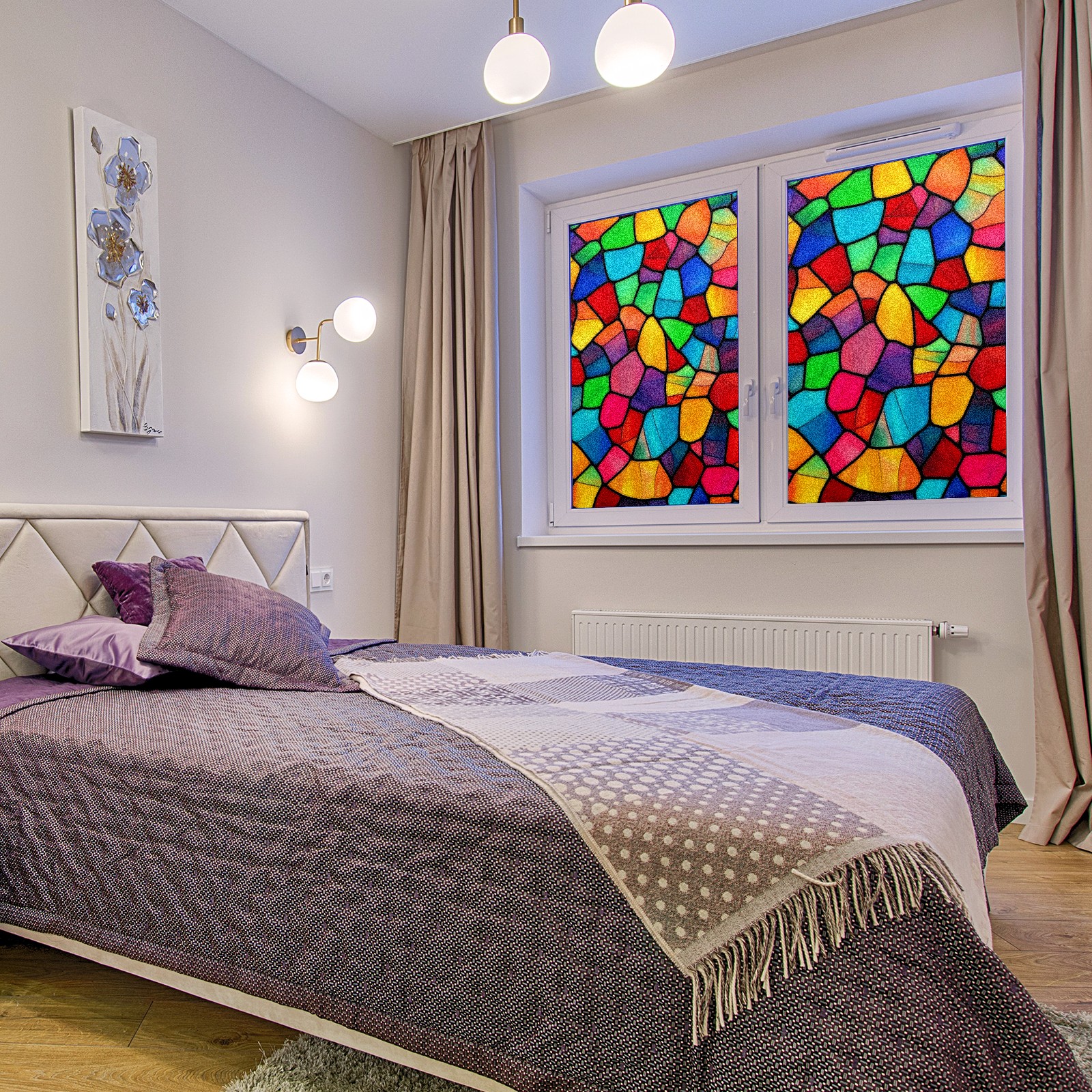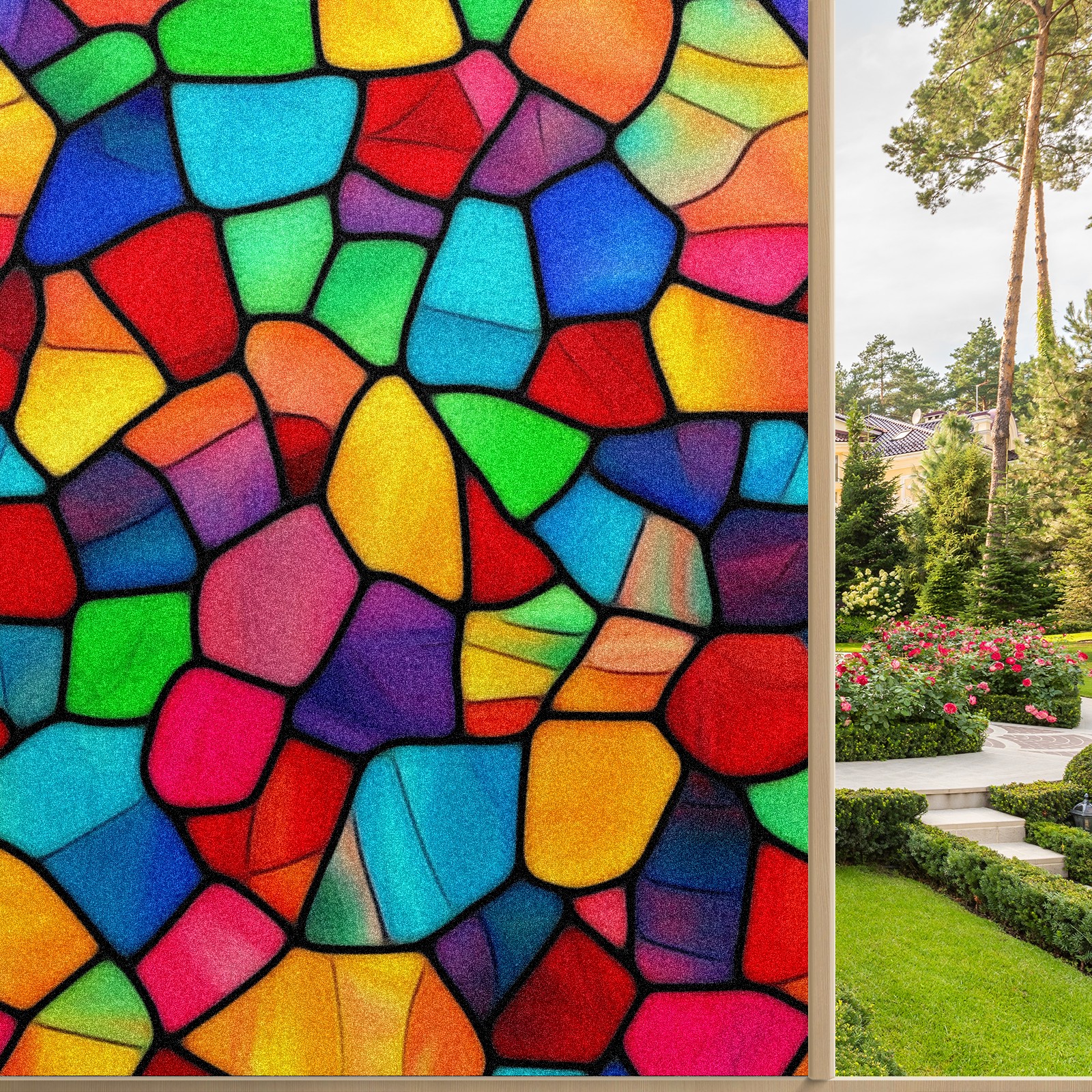 Window Privacy Film Decorative Window Decal Film Removable Static Cling Window Tint for Home Bedroom Sun Blocking Stickers 17.7 x 23.6 Inches Colorful Stained Glass