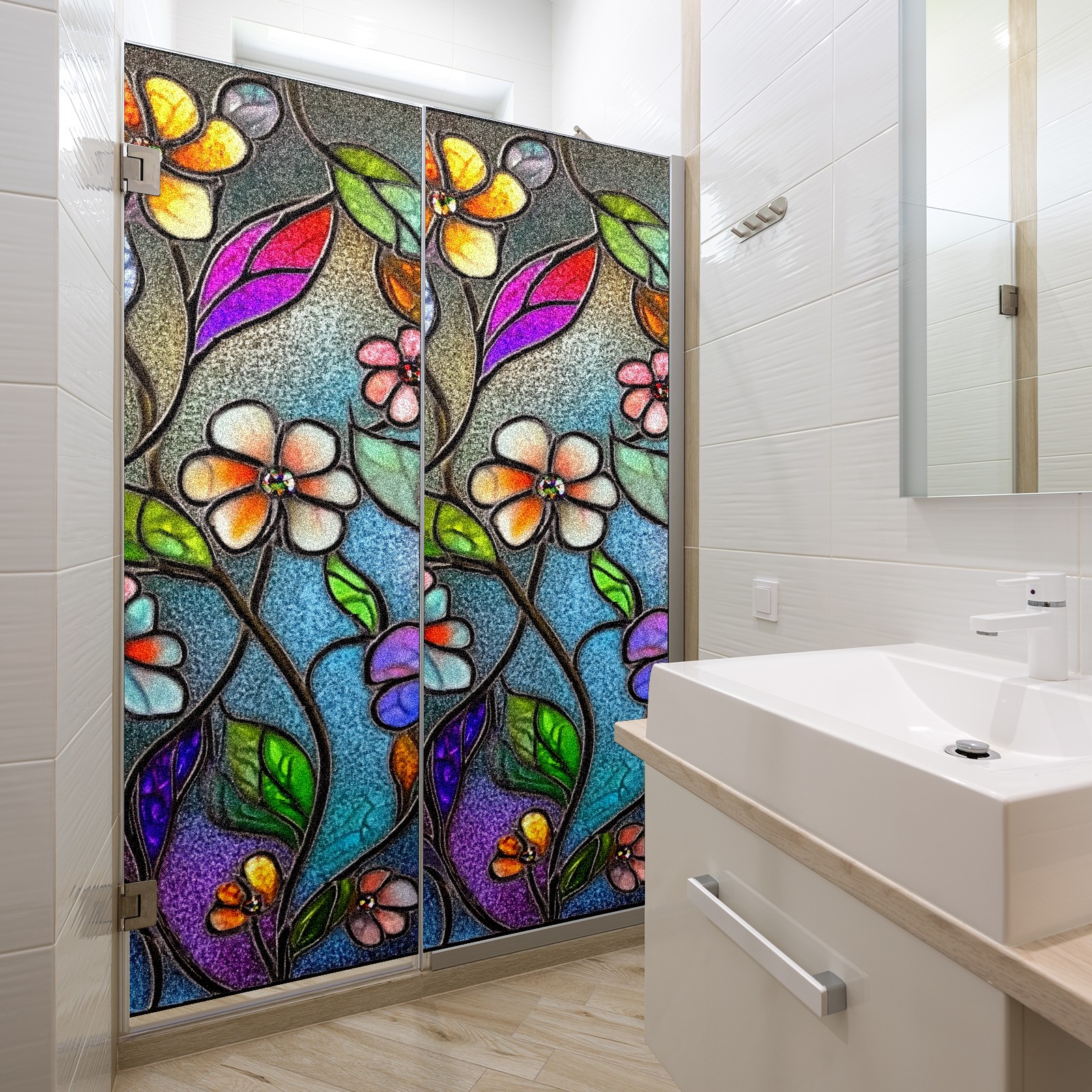 Window Privacy Film Decorative Window Decal Film Removable Static Cling Window Tint for Home Bedroom Sun Blocking Stickers 17.7 x 23.6 Inches Flowers And Leaves (2)